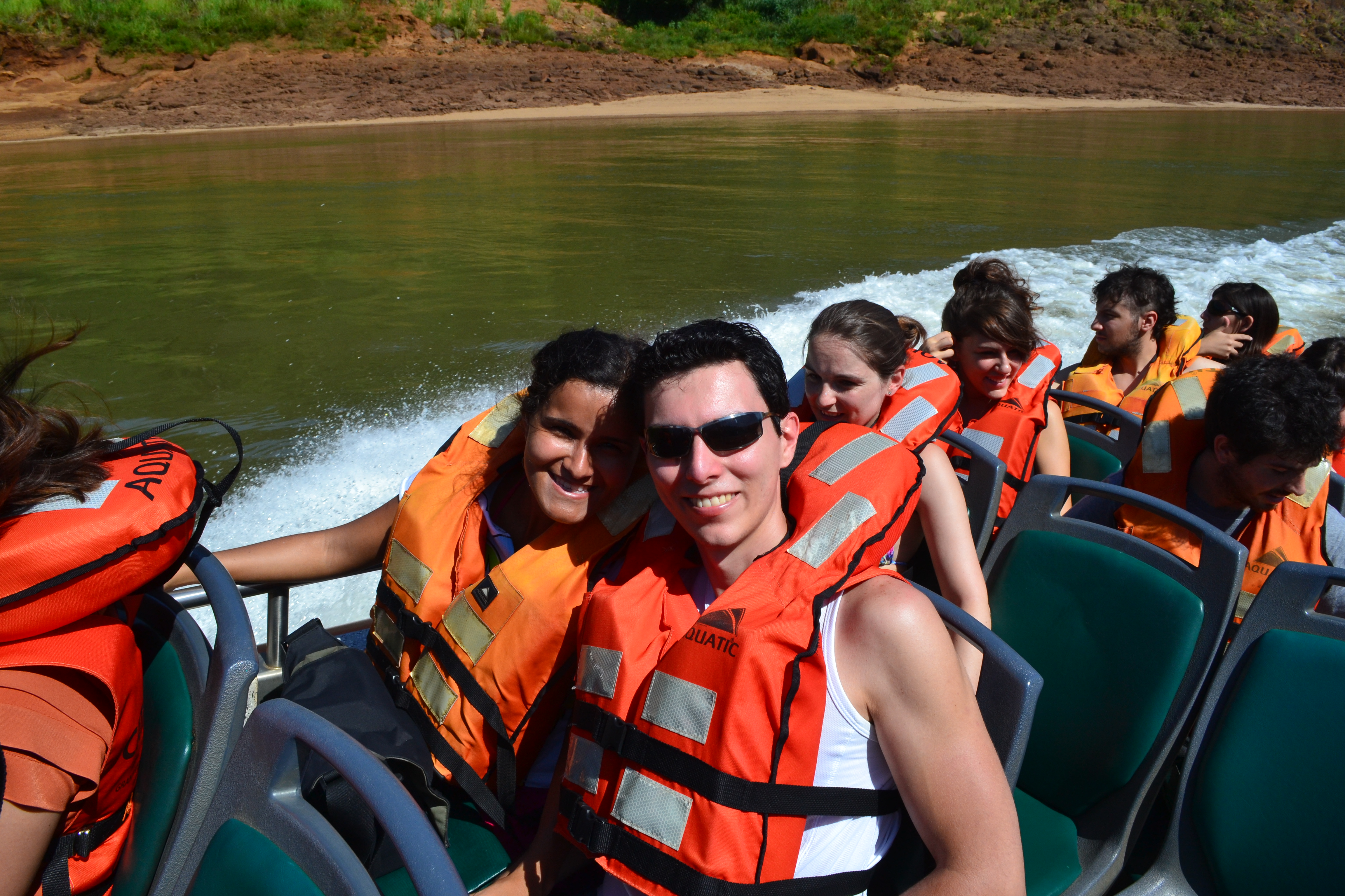 Assim, iniciamos a subida do rio iguaçu por cerca de 15 minutos, onde encontramos as gigantescas quedas d’água, nas quais entraremos com o barco e tudo, tomando literalmente um banho!!!