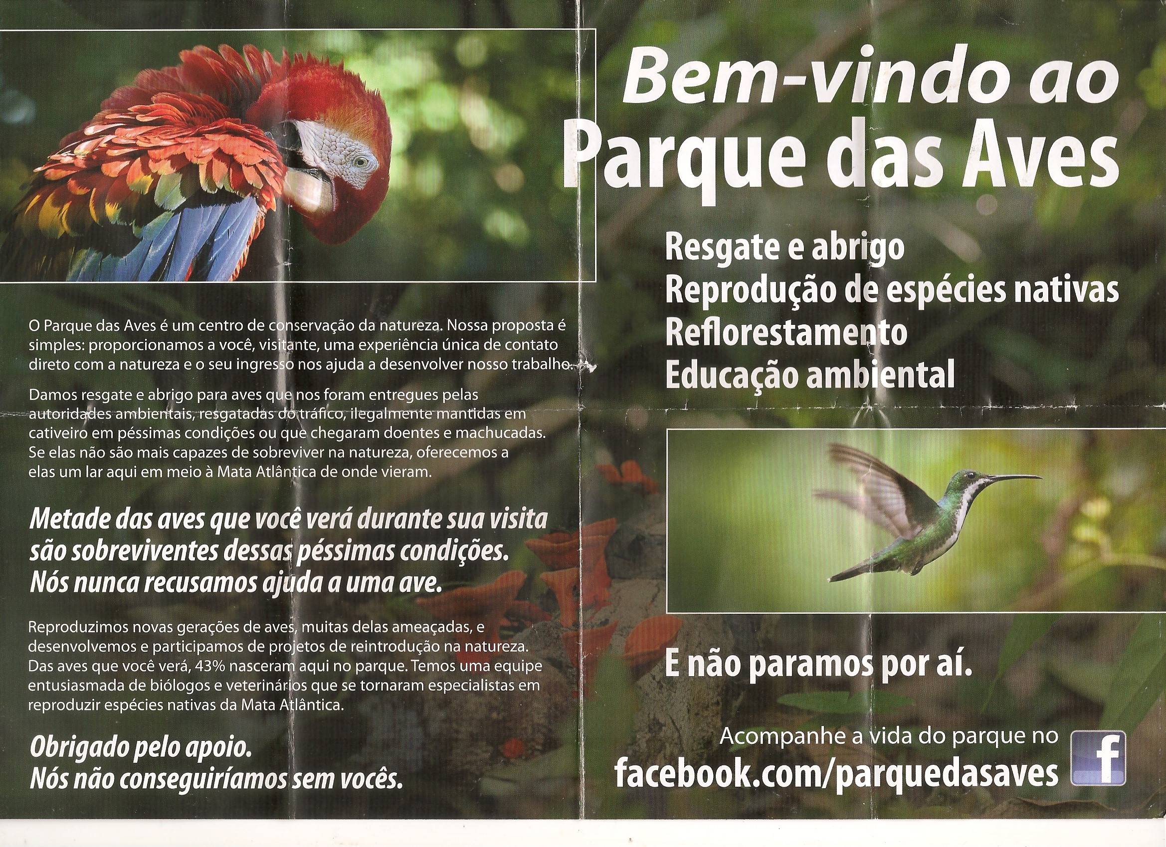 A entrada do Parque das Aves tem um custo de R$ 20,00 por pessoa. Av. das Cataratas, KM 17.1