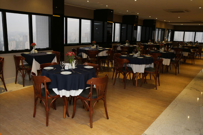A luz baixa é convidativa para que se tenha uma refeição cheia de amor, tornando o ambiente muito romântico e prazeroso para um jantar a dois.