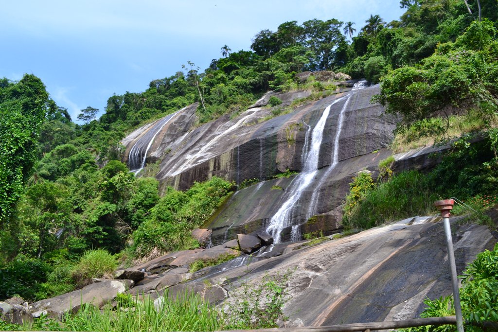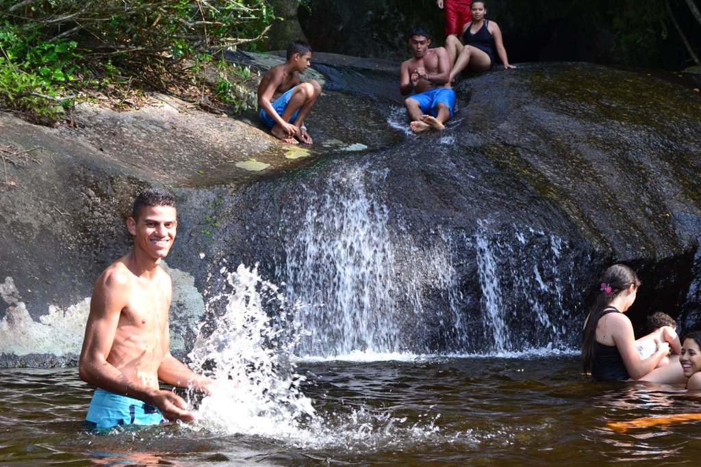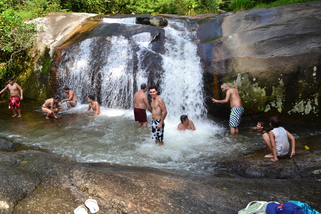 Histórias a parte está cachoeira é a mais famosa de Ilhabela. Ela é muito boa e tranquila para banhos e aventuras – a ducha forte despenca de uma altura de três metros e as diversas quedas formam longos tobogãs com cerca de 50mts. Não tem perigo nenhum de se cortar, se estiver de shorts é bem emocionante, pois desliza muito rápido e a queda se dá em uma área de água represada BEM FRIA mas também funda, garantindo que não haverá acidentes na queda.