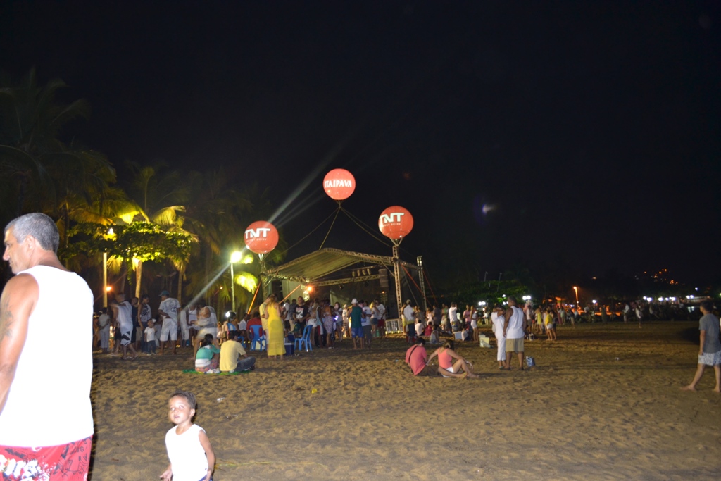 É muito bacana que da ilha conseguimos também ver a queima de fogos em Caraguatatuba e praias do entorno que ficam na margem da costa brasileira.