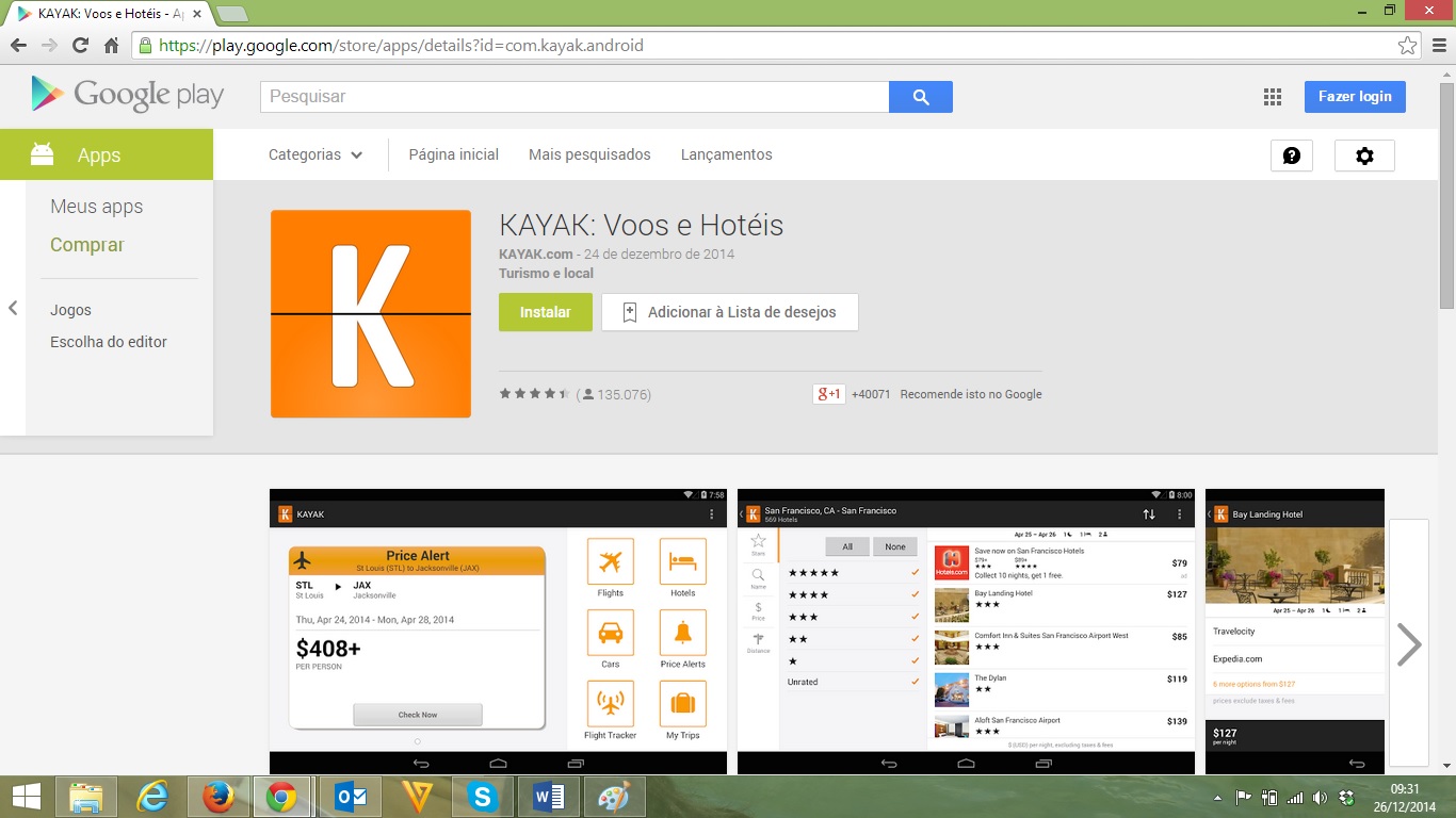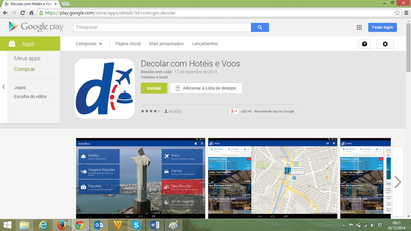 Este aplicativo lhe ajuda no encontro de passagens e hotéis. Costumo utilizá-lo como fonte de consulta de passagens. Normalmente as compras eu faço pelo próprio site da companhia área acompanhando as promoções que surgem.