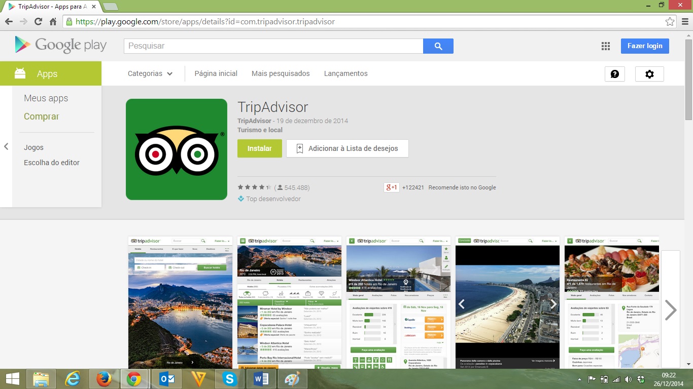 Creio que a grande maioria das pessoas conhecem este aplicativo. Nele você consegue buscar informações de hotéis, pousadas e pontos turísticos, checando as avaliações que os usuários forneceram dos respectivos locais.