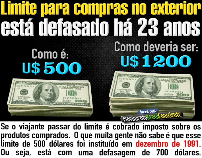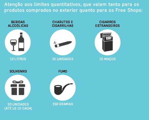 Cada passageiro tem direito a uma cota de US$ 500 a cada viagem, num espaço de um mês, e a US$ 500 para produtos comprados nos free shops brasileiros, no desembarque.
