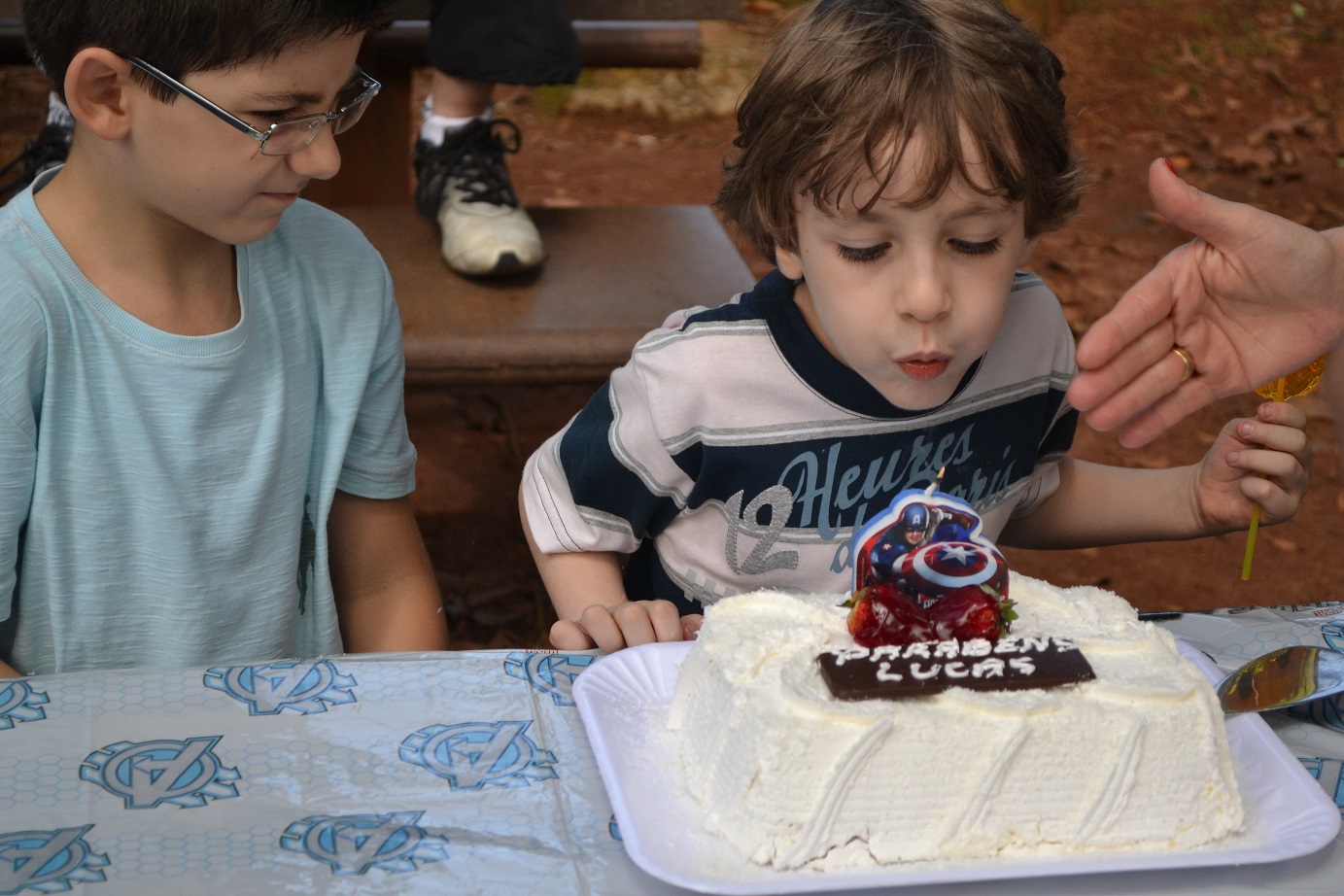 Nós cantamos parabéns e comemos nas mesas! Foi super bacana pois fica bem embaixo do teleférico e todos ficam olhando a festa que estávamos fazendo, rss.