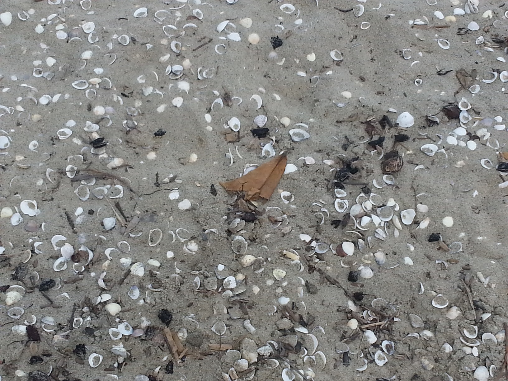 As areias da praia também são completamente tomadas por conchas, se tornando bem difícil andar pela praia. Ou seja, na areia além do odor tinham as conchas, e nas águas o lodo dos mangues.