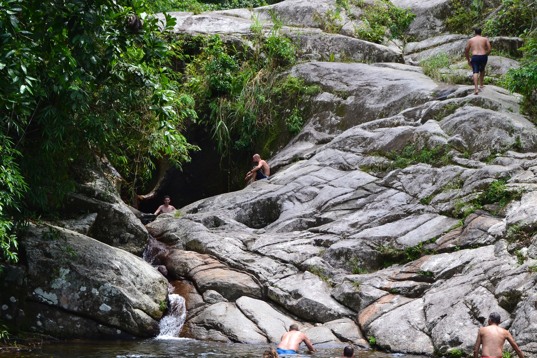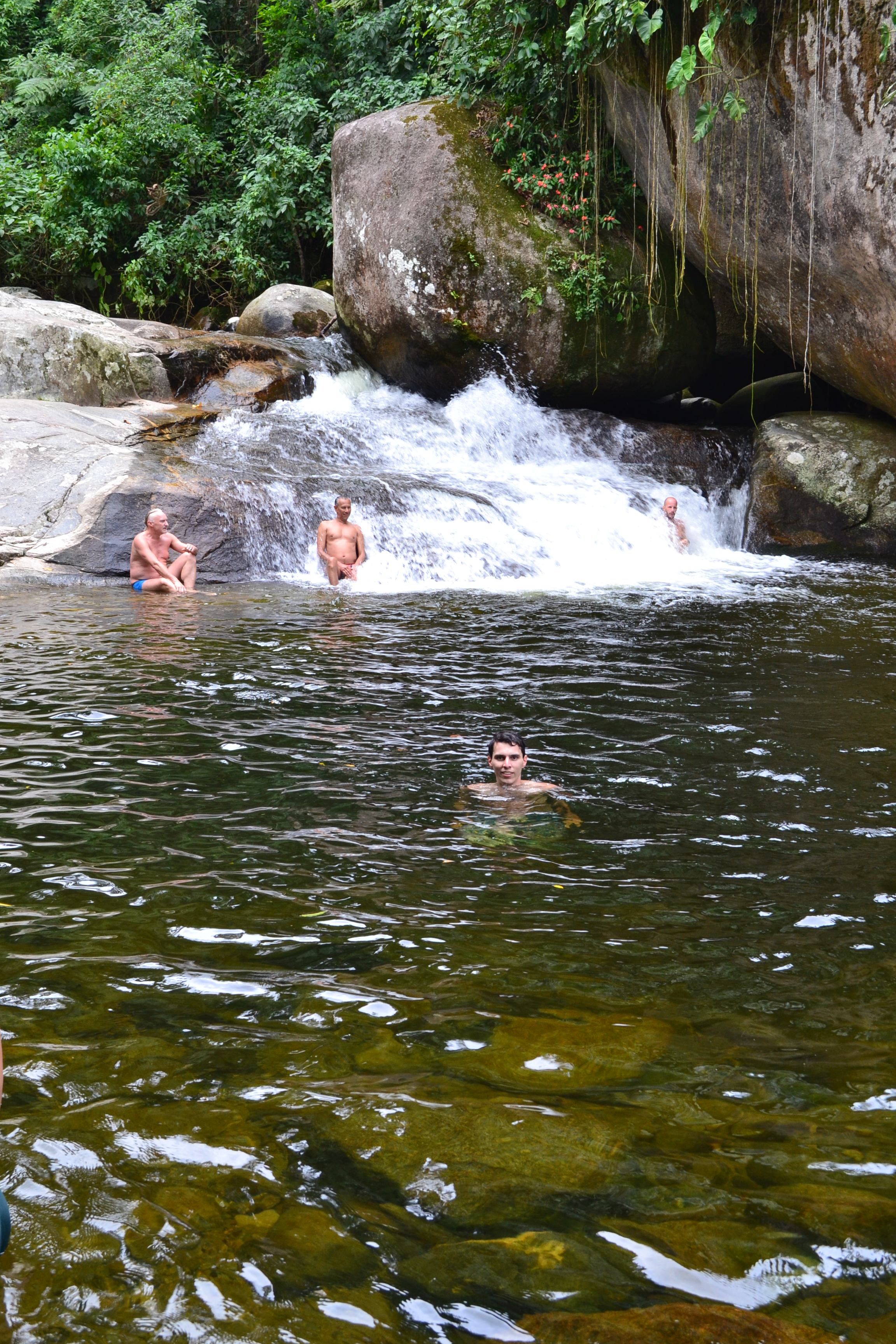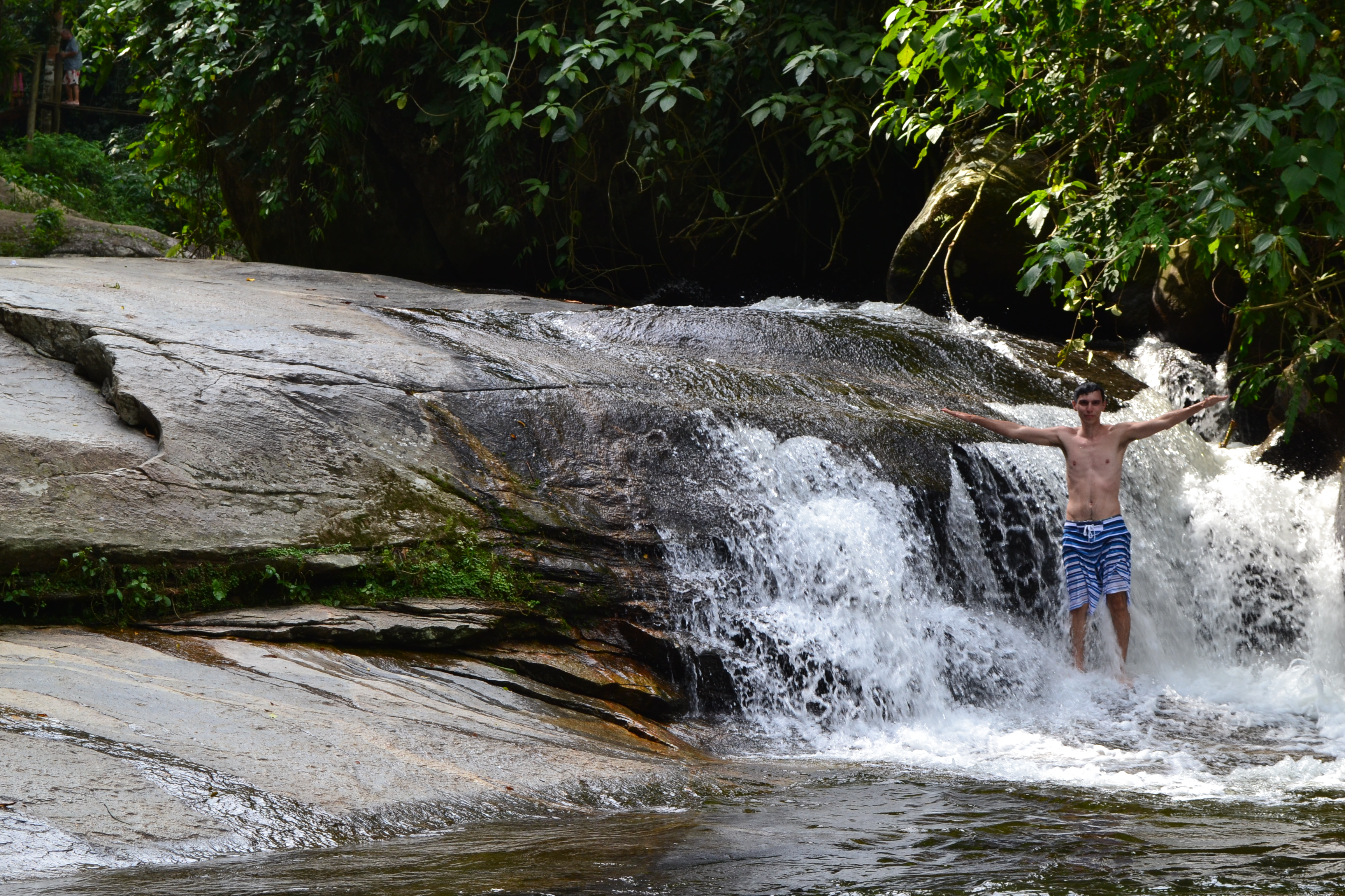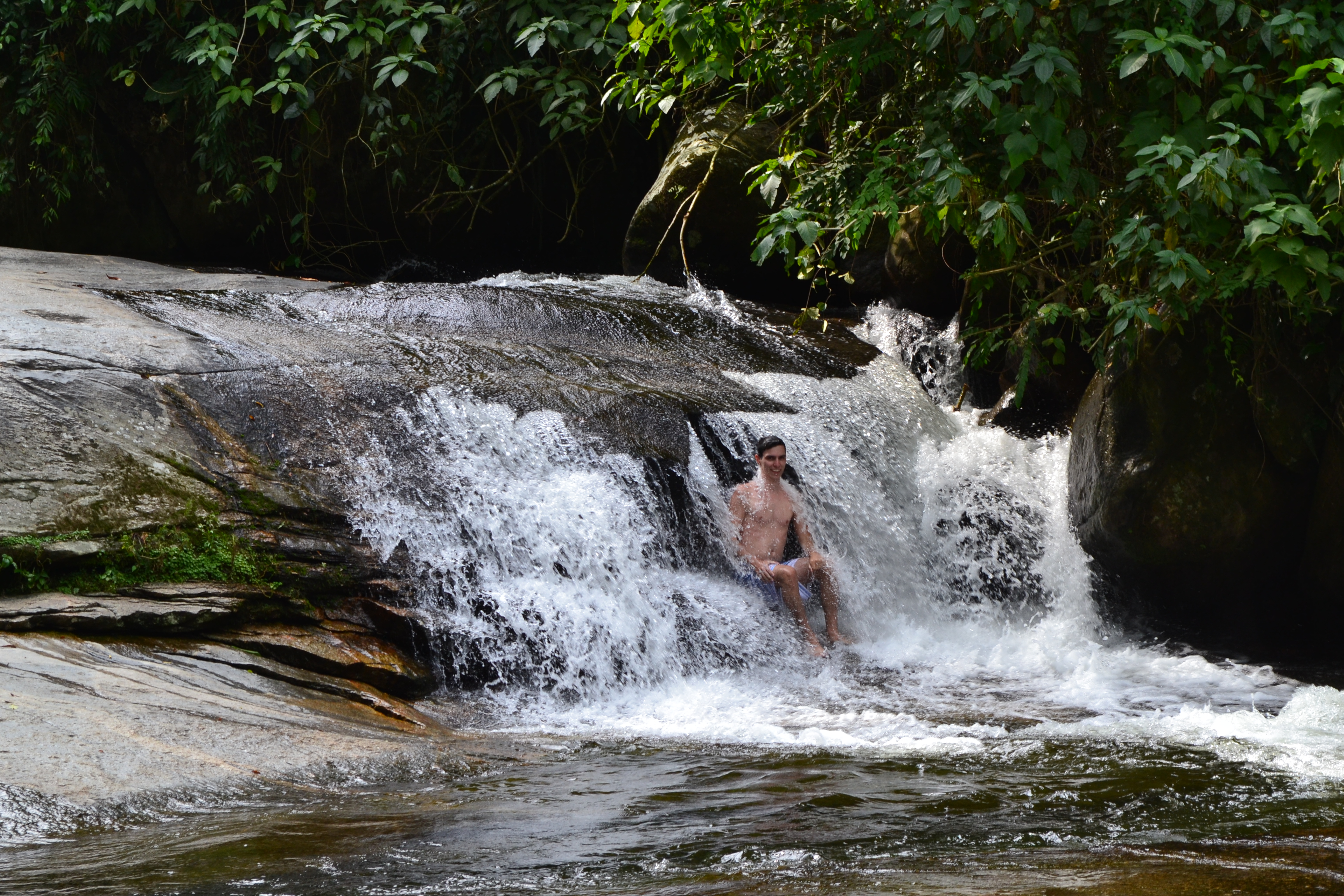 Continuando a trilha um pouco mais acima da Cachoeira do Tobogã, chegamos a Cachoeira do Tarzan.