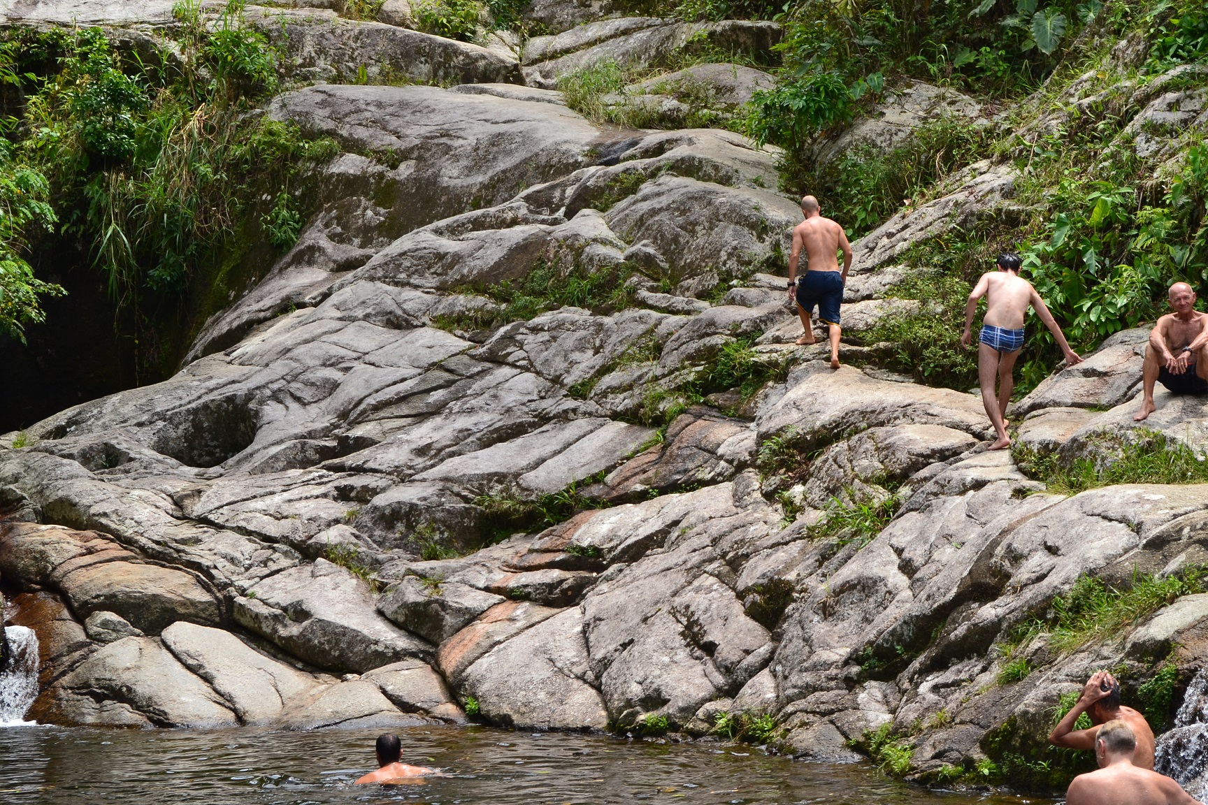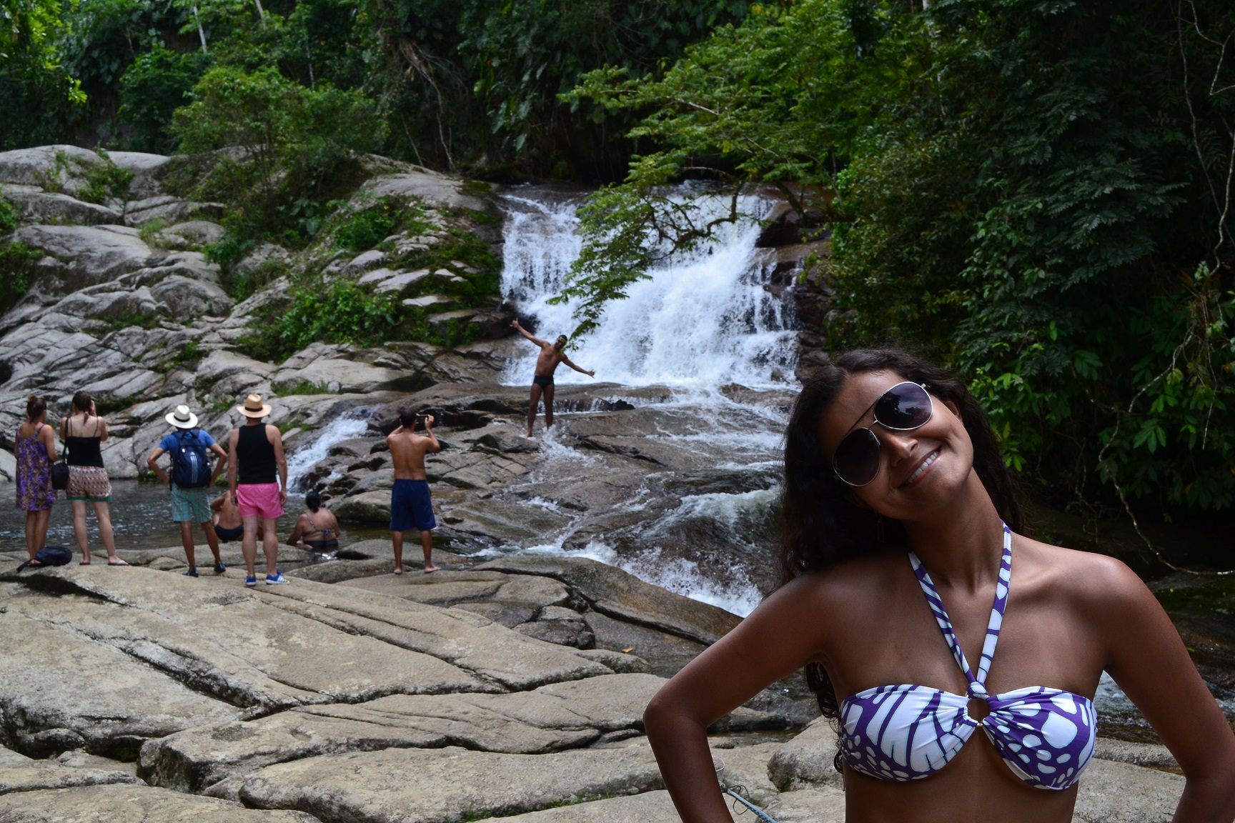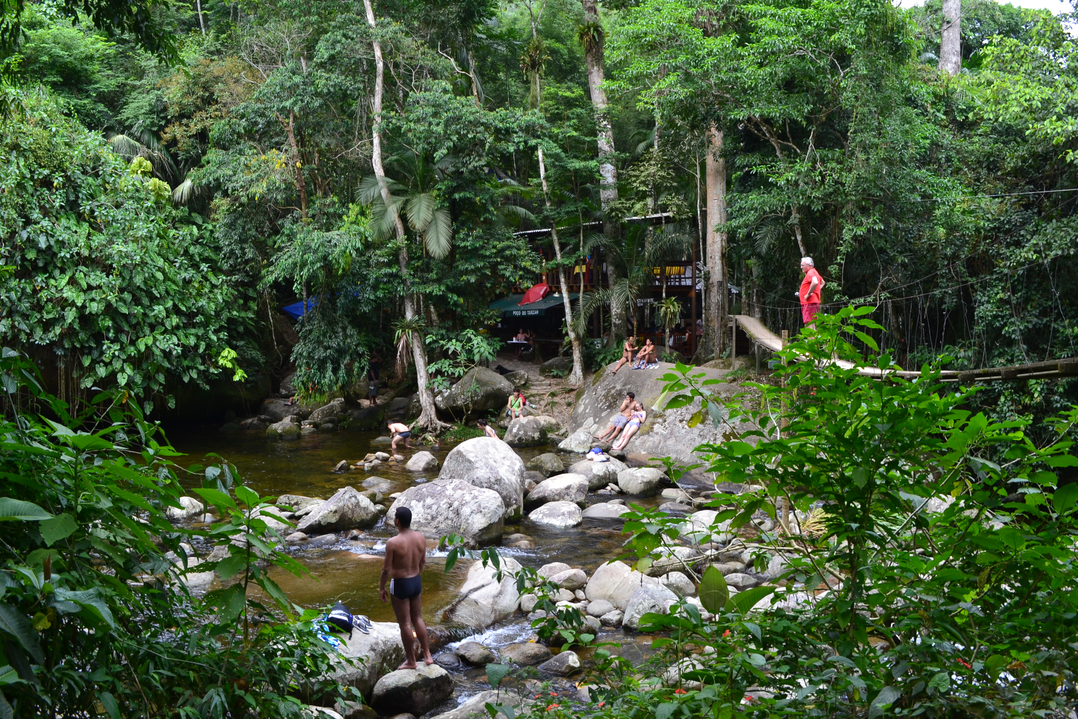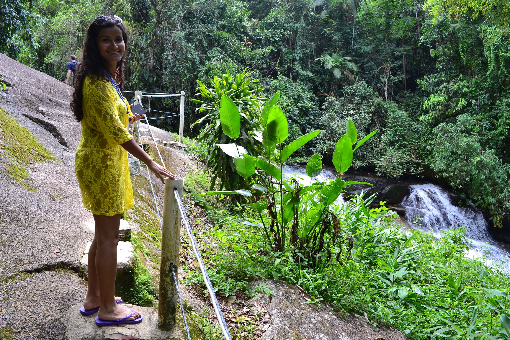 Continuando a trilha um pouco mais acima da Cachoeira do Tobogã, chegamos a Cachoeira do Tarzan.