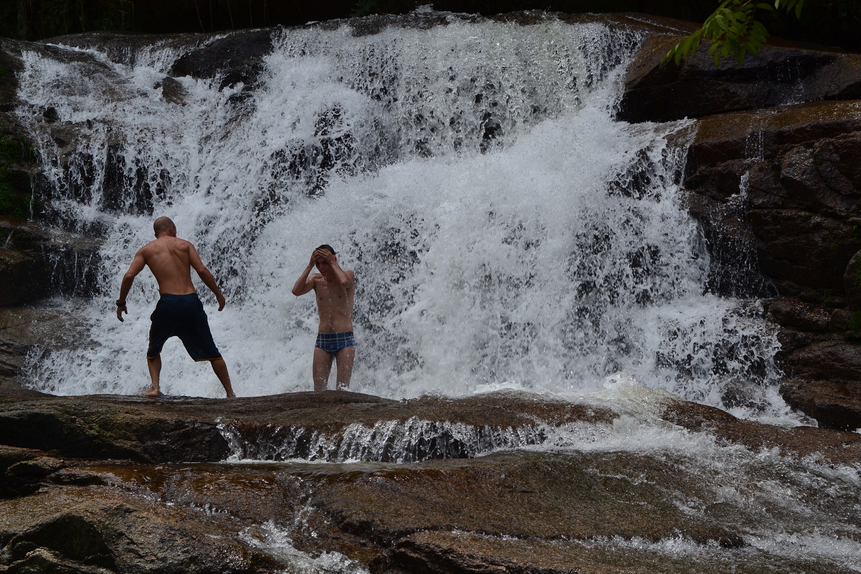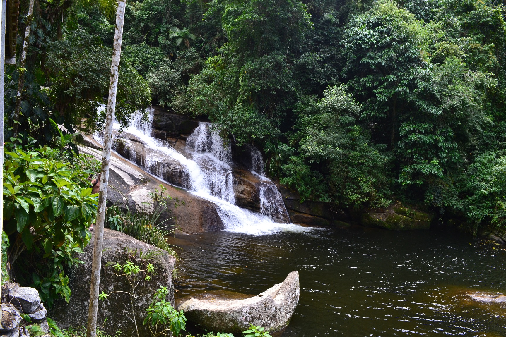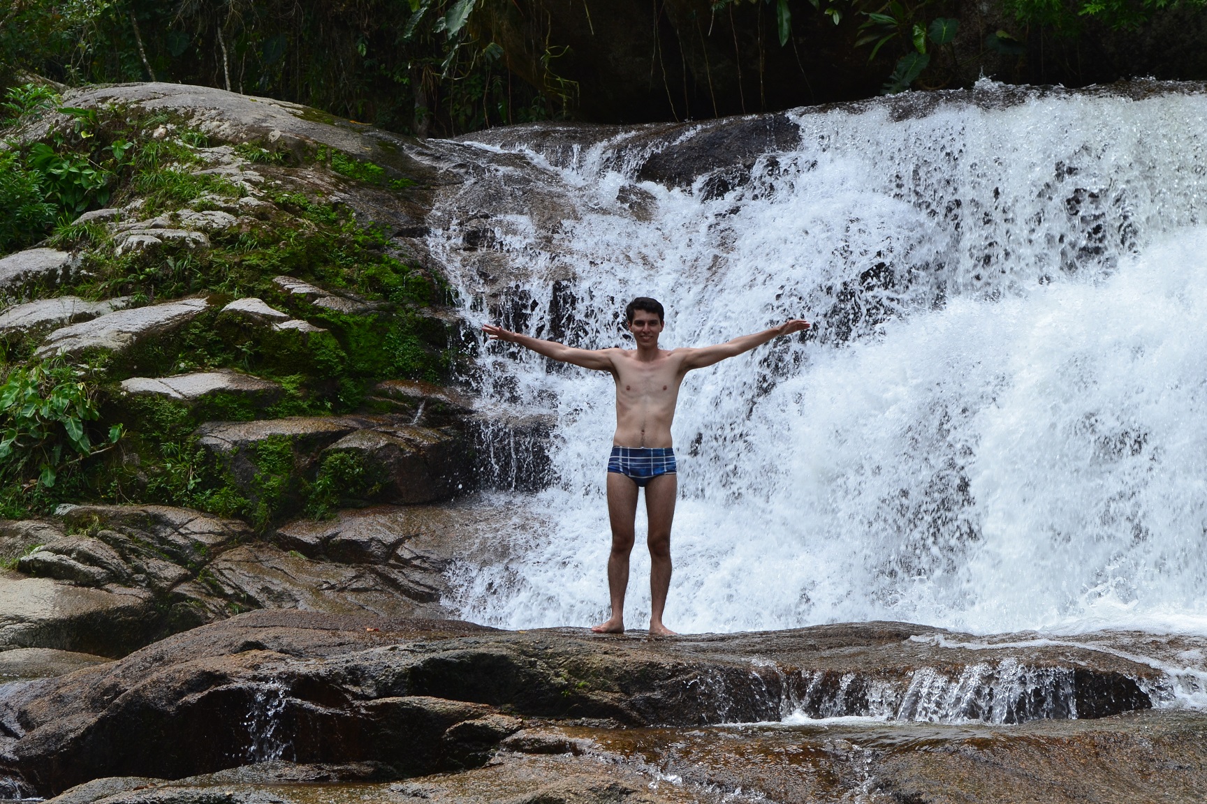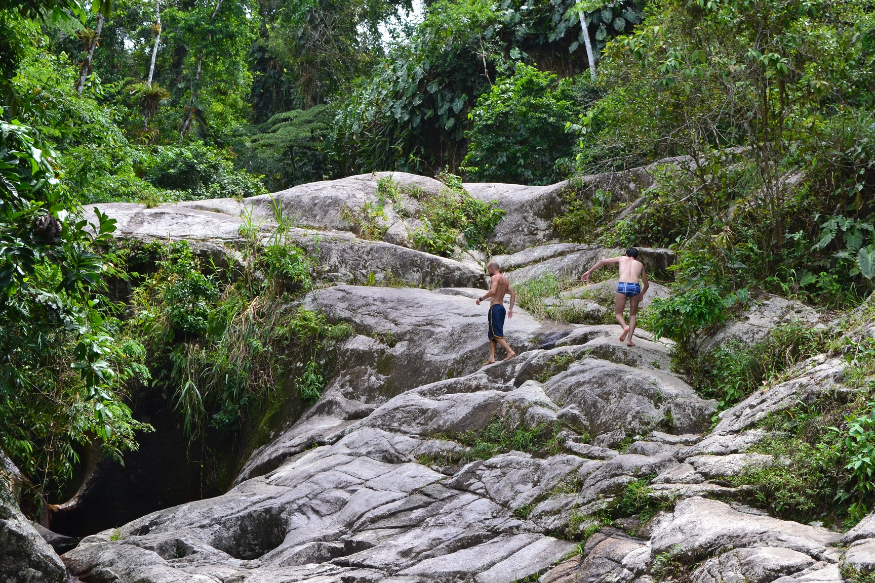 Continuando a trilha um pouco mais acima da Cachoeira do Tobogã, chegamos a Cachoeira do Tarzan.