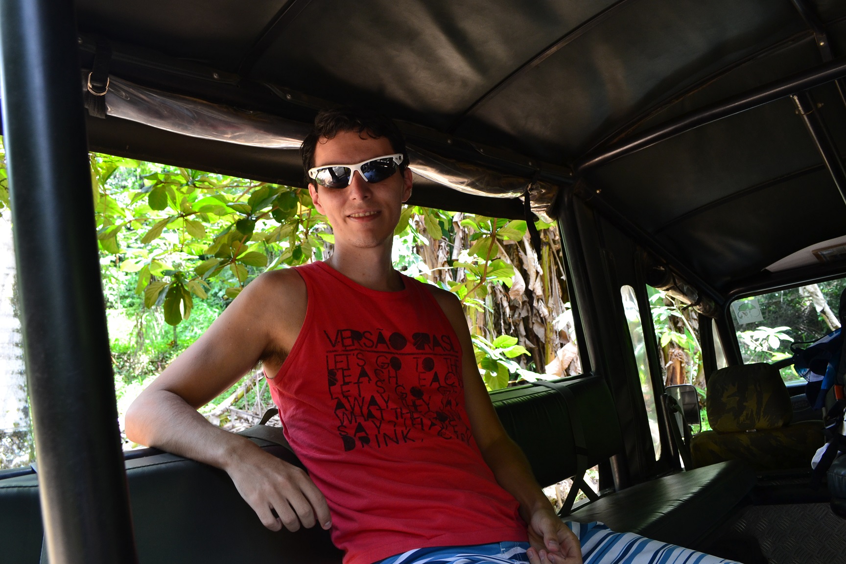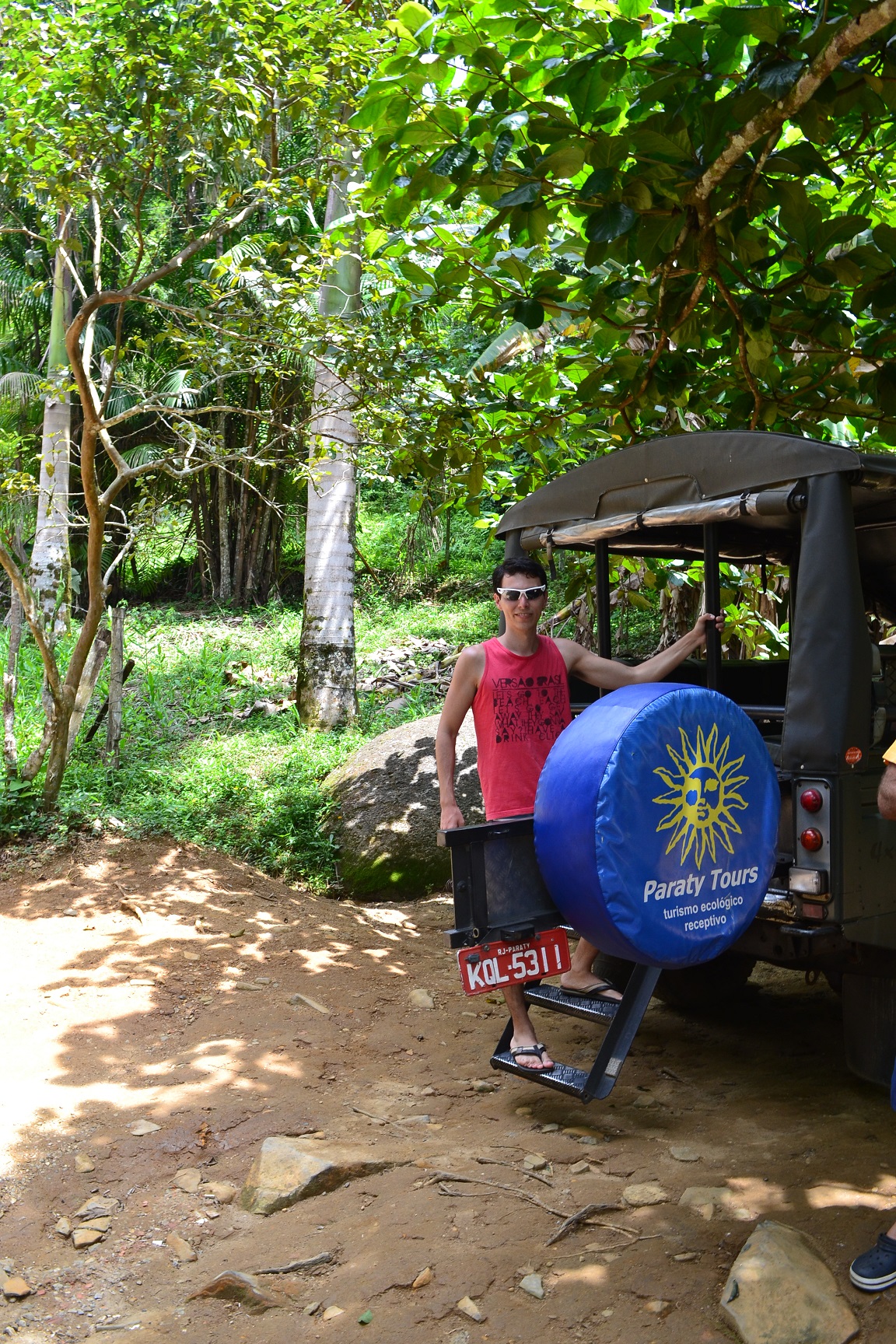 O motorista Ivan do Jeep, nos pegou no Hostel em direção a loja da Paraty Tours no centro novo. Aguardamos mais algumas pessoas chegarem para iniciar o passeio.