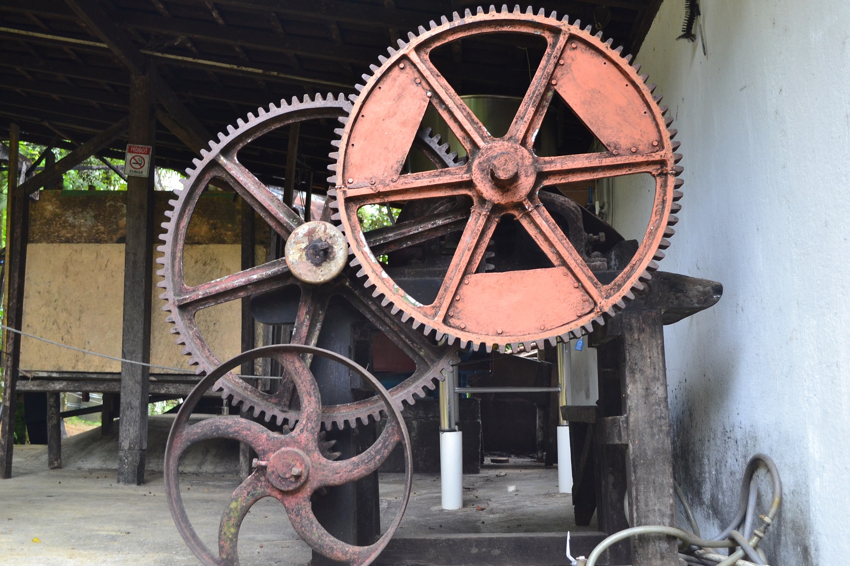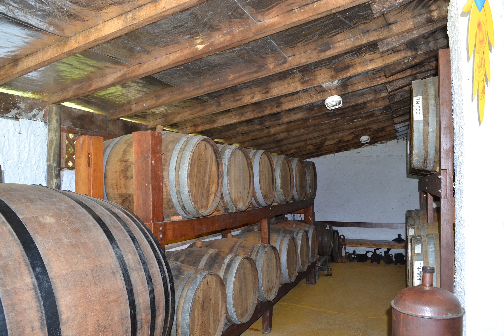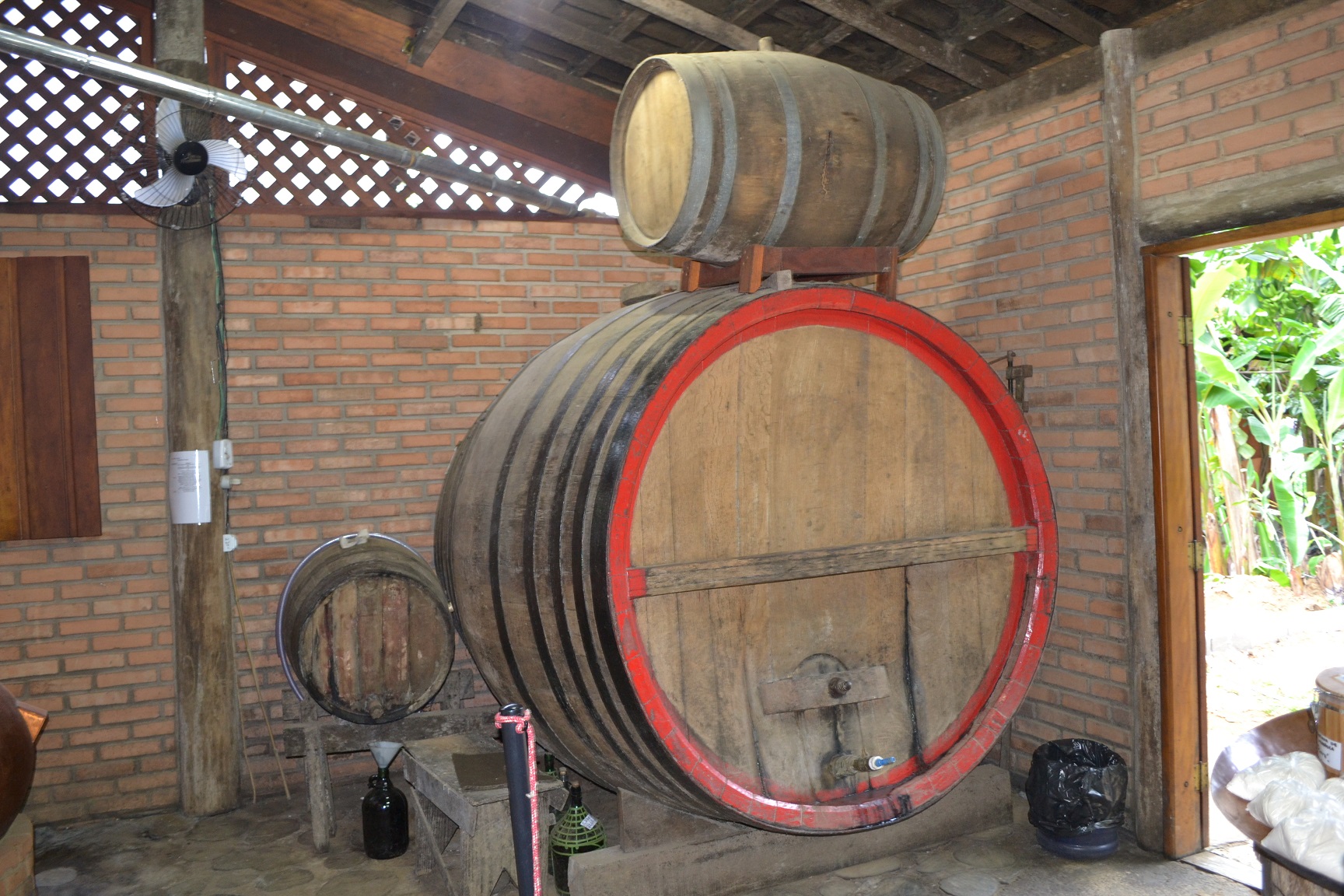Quando chegamos, o guia que estava conosco nos contou a história do alambique e das bebidas produzidas na região, tanto em português como em inglês.