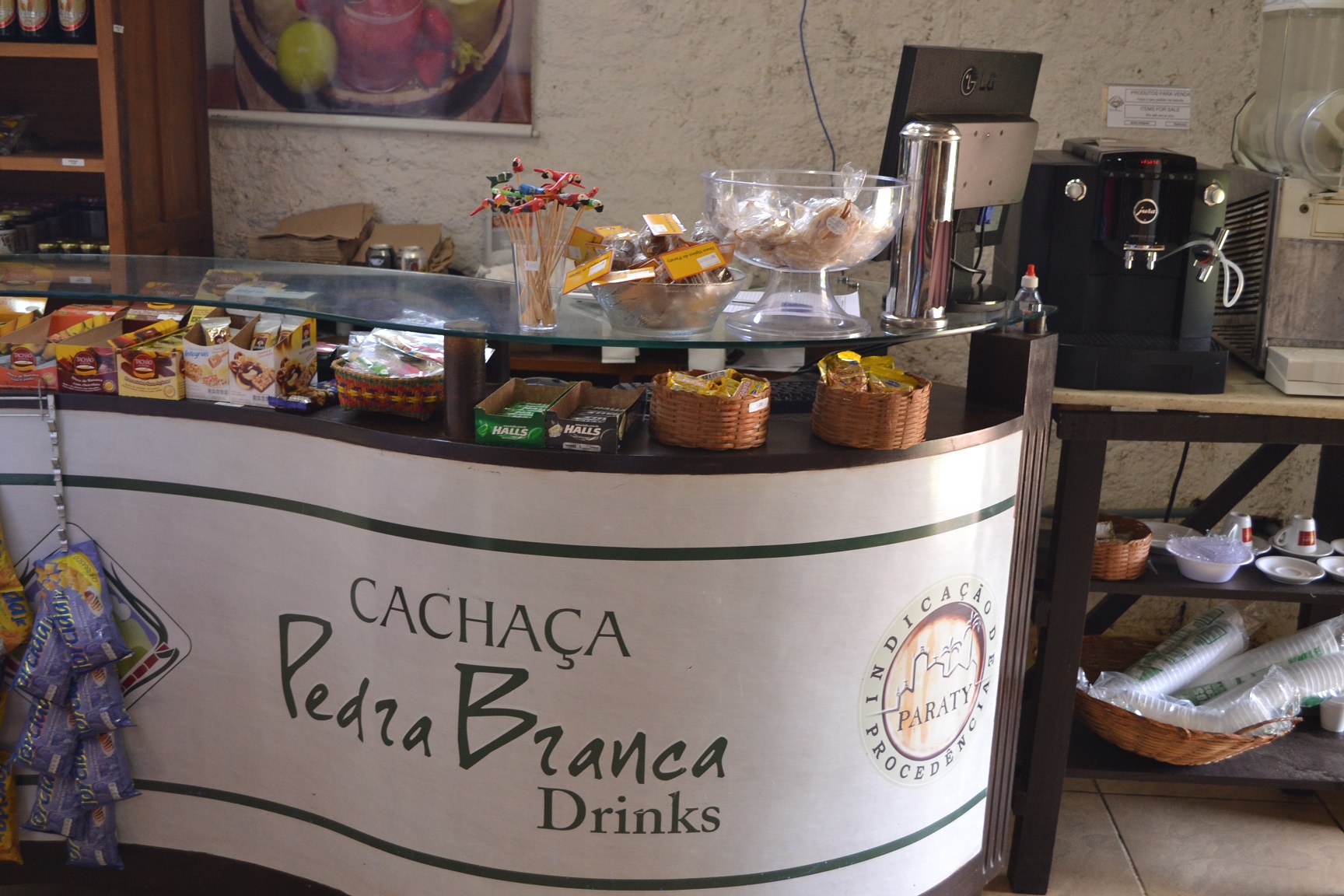 Após as explicações, fomos direcionados para o local onde poderíamos provar as cachaças e outros itens produzidos no alambique e posteriormente havendo interesse, adquirir algumas unidades.