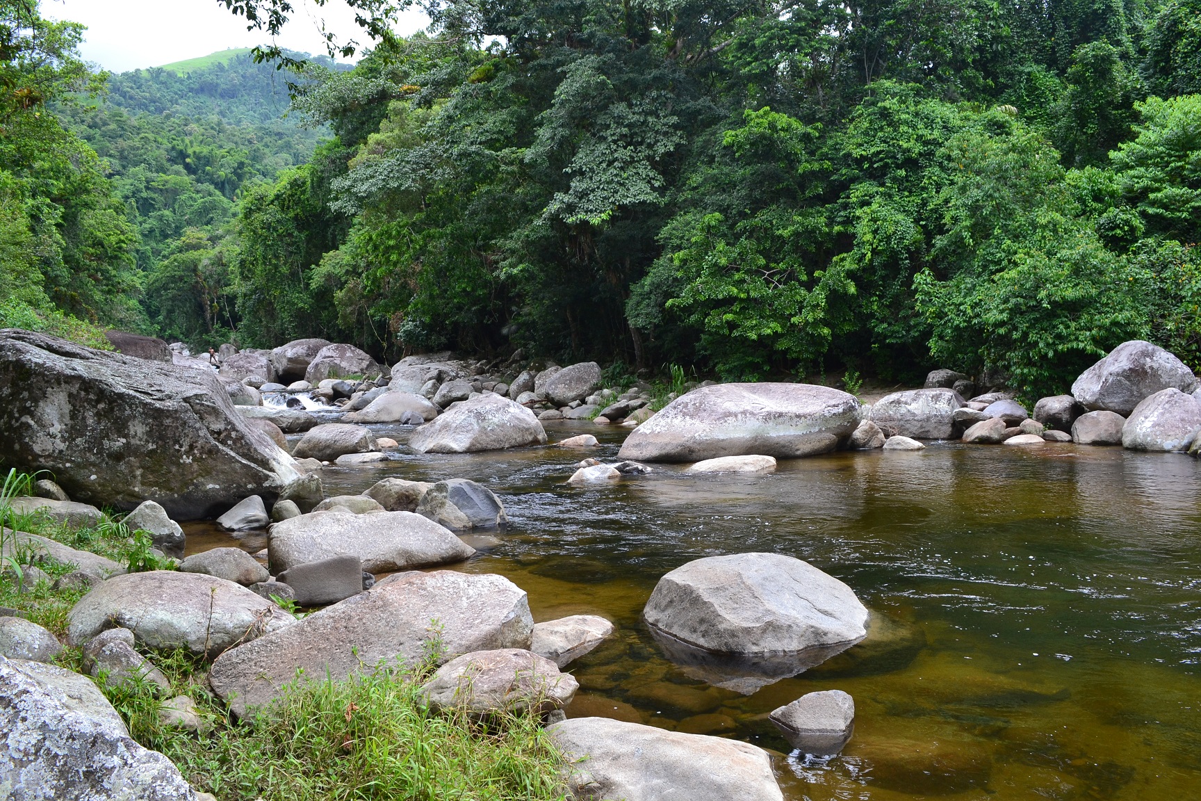 Ali é possível ver o fim das quedas da Cachoeira da Pedra Branca. Não entramos neste espaço pois parecia perigoso e cheio de pedras.