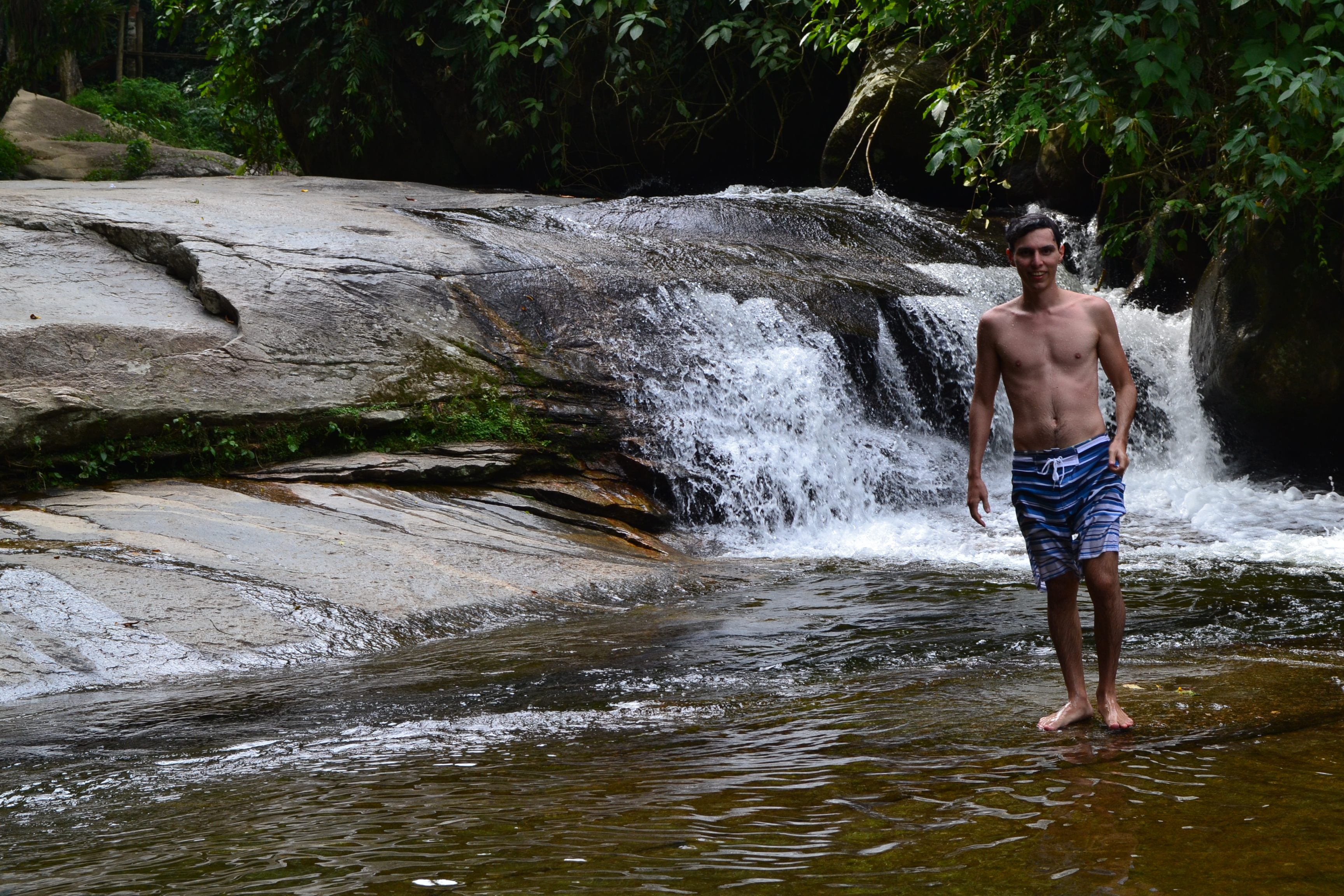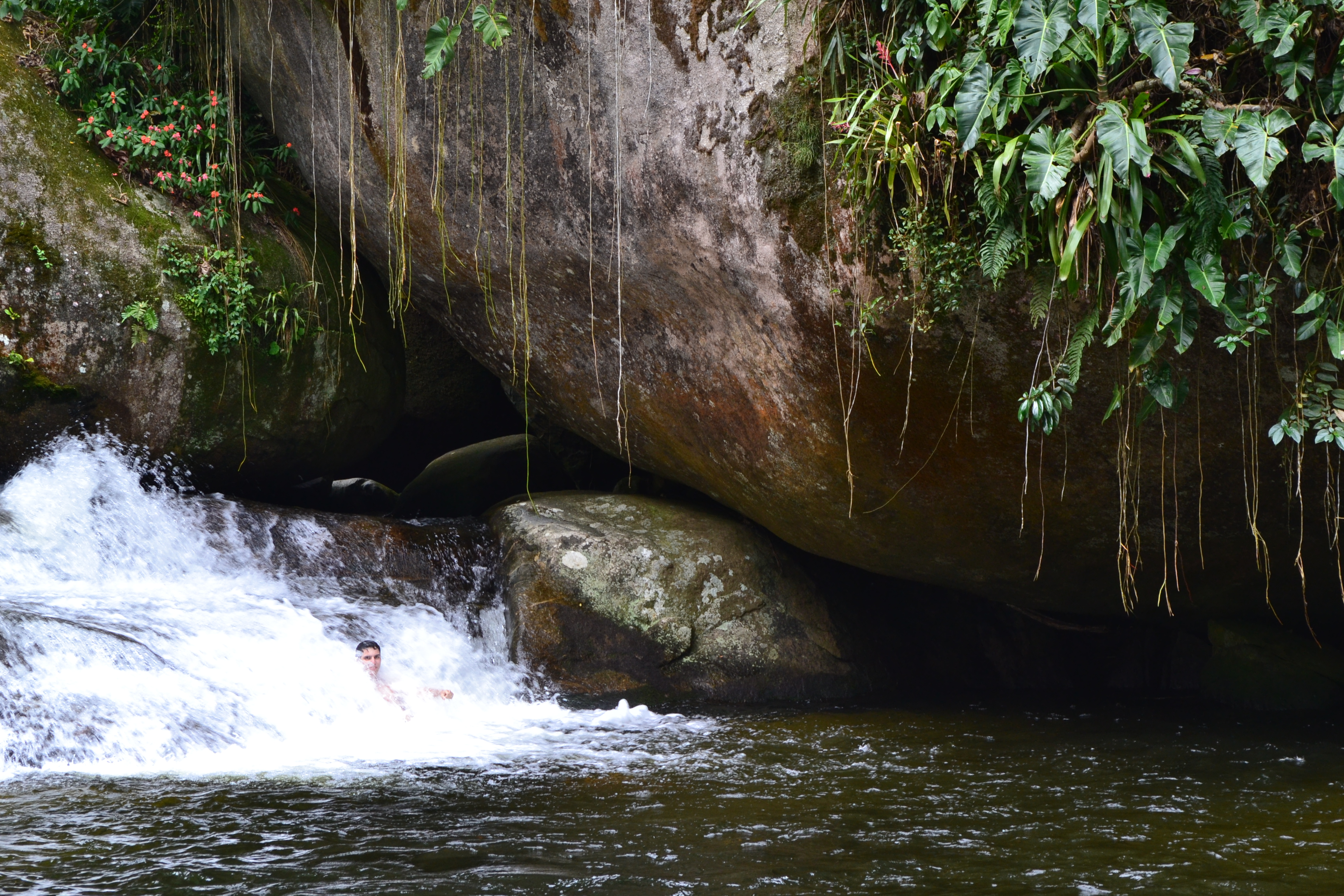 Entrando na Cachoeira do Tobogã