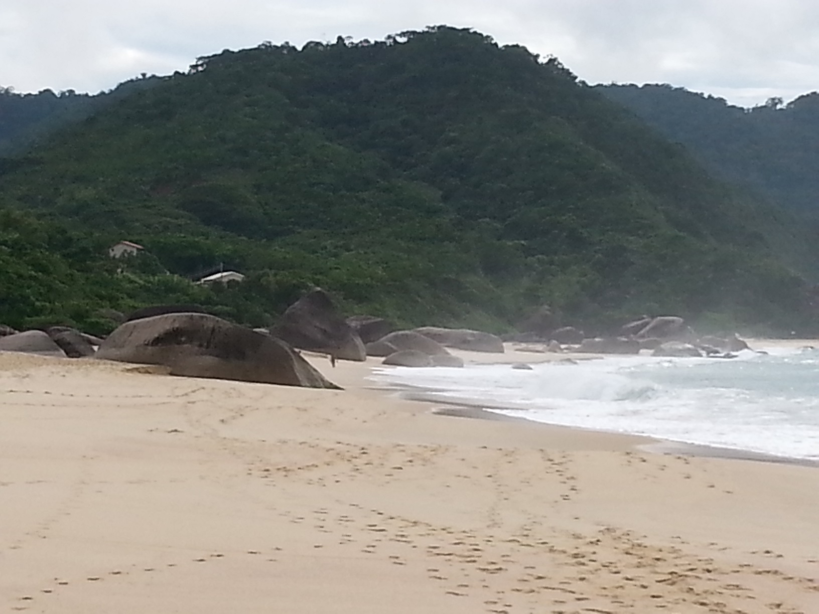 Nesta praia nós resolvemos entrar na água, mas estava muito violenta as ondas. No raso quebrava uma atrás da outra.