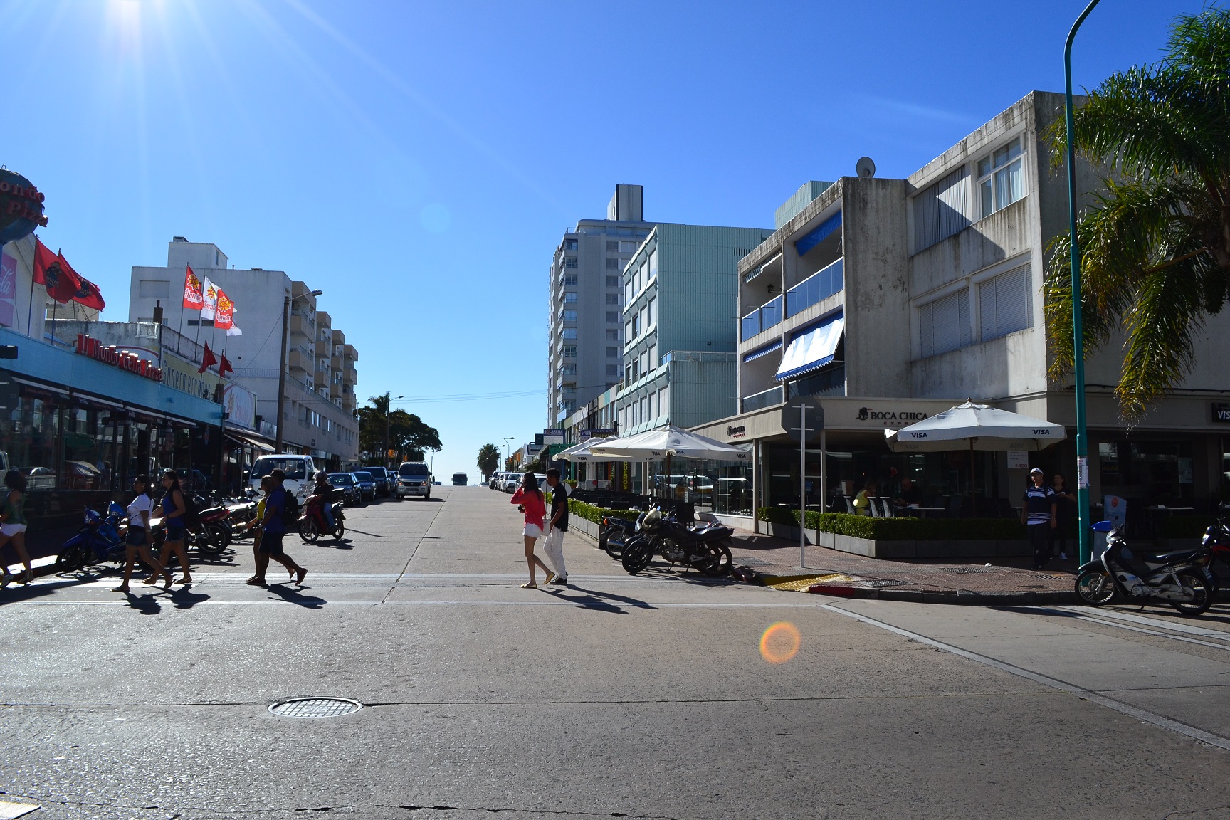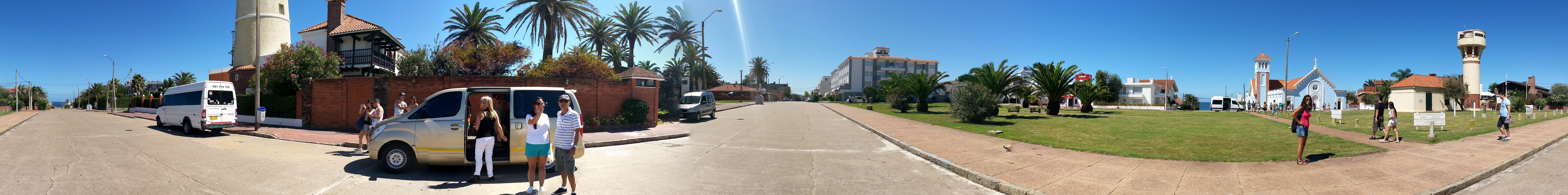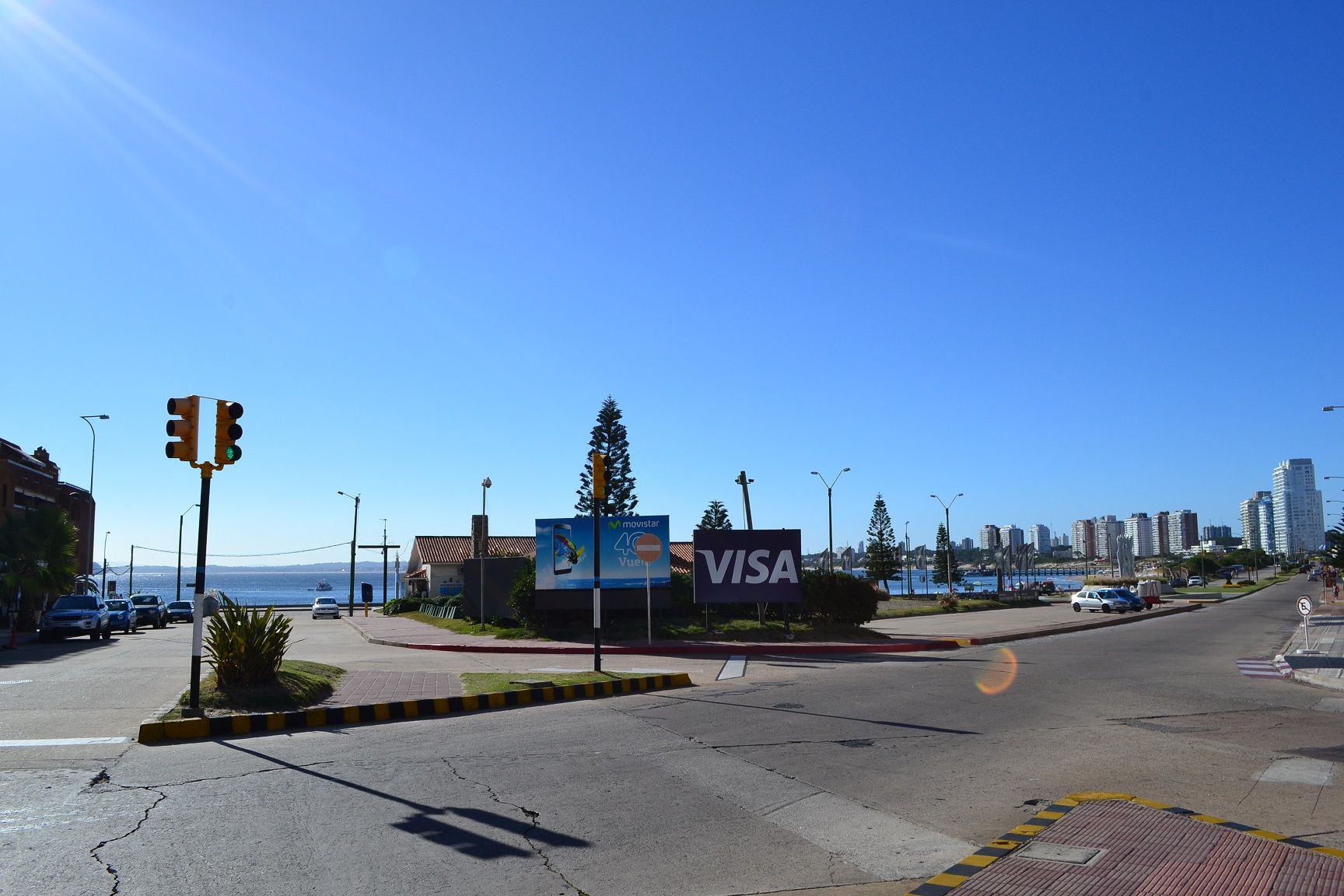 Começamos nosso City Tour, saindo pela direita sentido a Playa Mansa. Andamos por cerca de 10 minutos até chegarmos a ESQUINA DOS 4 MARES, ponto este que para as 4 direções que olhar poderá visualizar o mar ao fundo! Isso acontece devido à curta extensão de terra. A esquina se localiza no cruzamento das calles 8 e 7, próximo ao farol.
