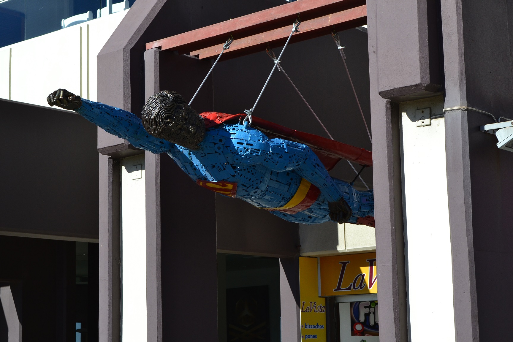 A obra é criação do artista chileno Mario Irarrázabal e representa o último gesto de uma pessoa se afogando no mar.