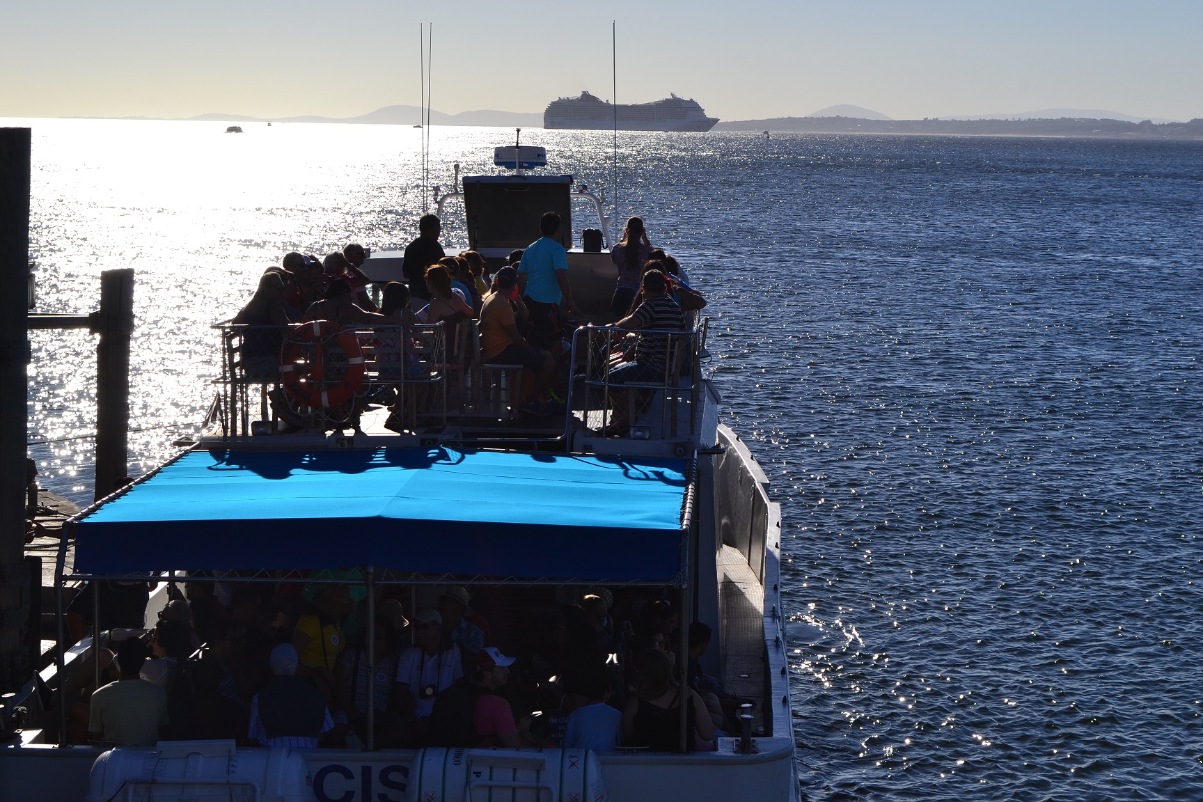 Os passeios com a MSC ficavam em volta de U$$ 50 por pessoa. Quando chegamos na praia, saímos da região de embarque/desembarque, que situava-se em frente ao Cassino e Hotel Conrad na Praia Mansa e nos dirigimos para a rua em frente. Neste ponto encontramos dezenas de táxis e vans ofertando passeios de City Tour.