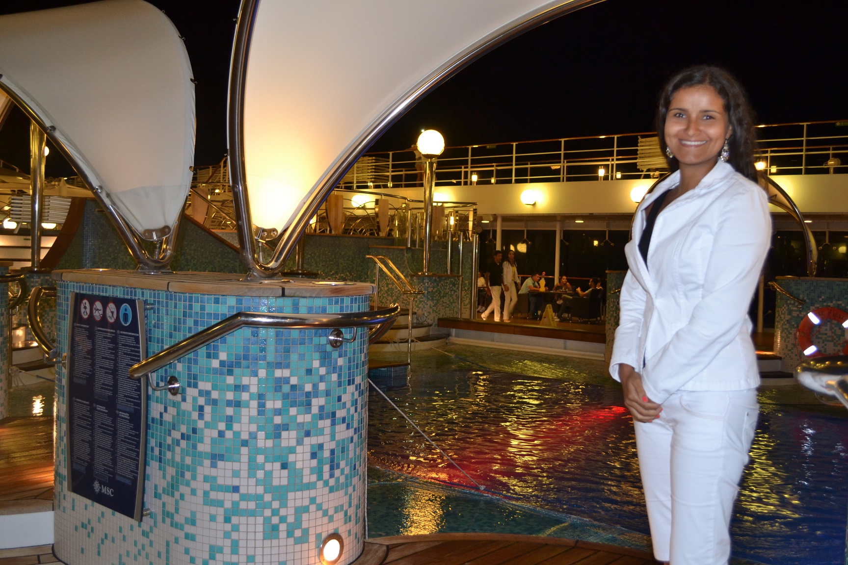 Após o Show de Mágica, nós descemos para o Deck Central para ouvir as músicas tocando MPB. Boa parte das noites, após a apresentação no teatro, nos dirigíramos para a recepção ouvir esses músicos tocando, enquanto não dava a hora do nosso jantar no 2º turno.