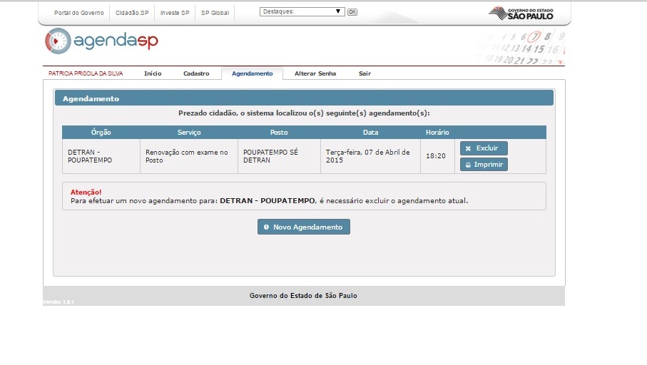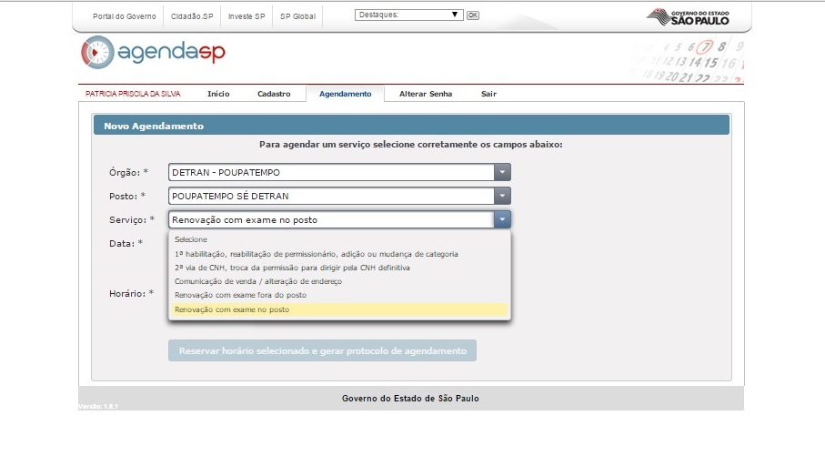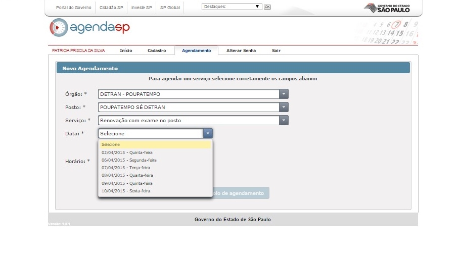 Você vai clicar em “agendamento” e será direcionado à seguinte tela: