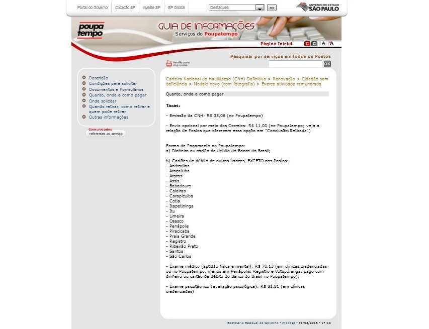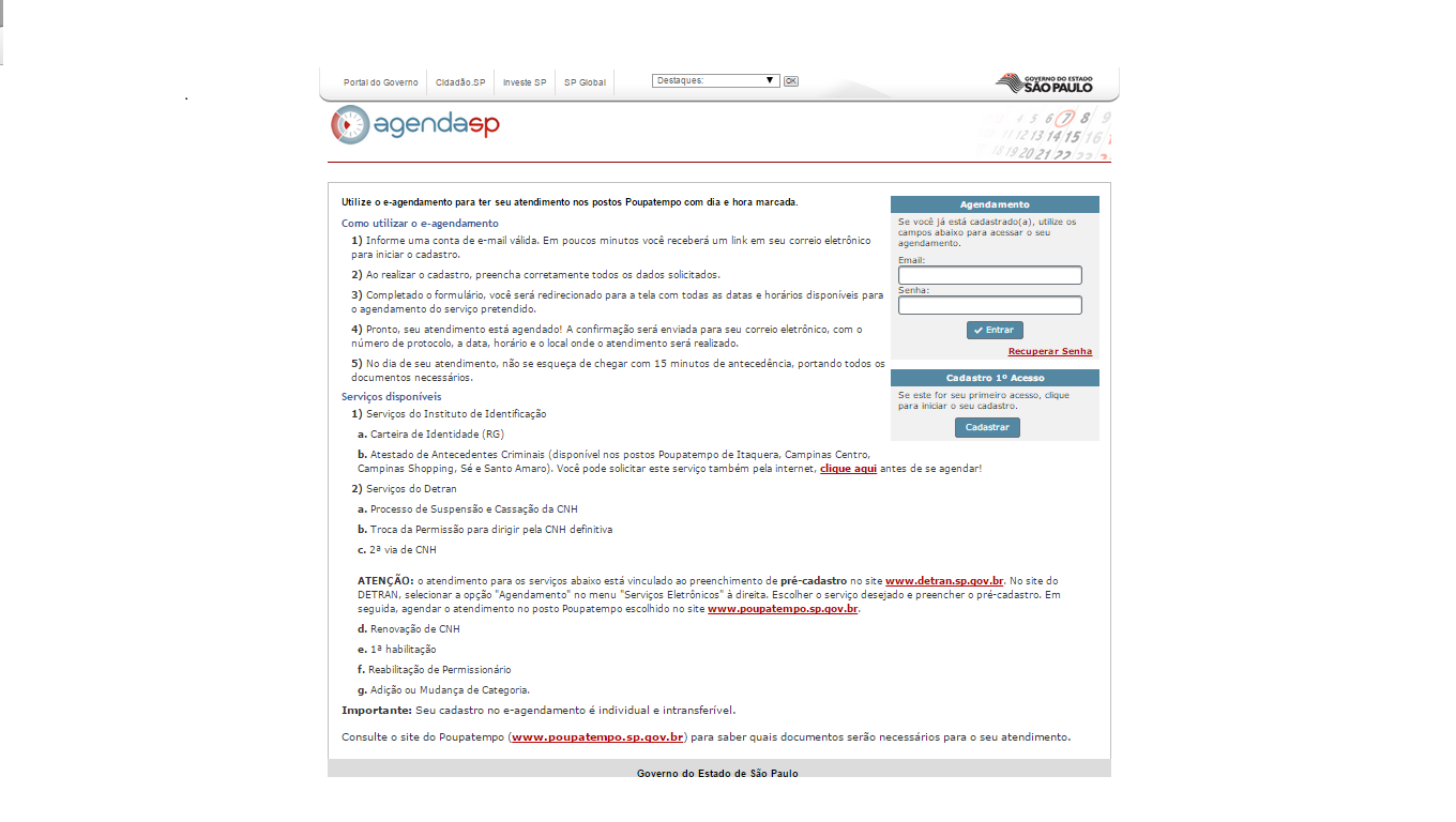 Mas, para usufruir de tudo isso que mencionei, é necessário que, antes de comparecer ao Poupatempo mais perto da sua casa, você se certifique de fazer o seu pré-cadastro no site do Detran http://www.detran.sp.gov.br/, através do qual também é possível fazer a renovação da sua CNH, caso você queira!