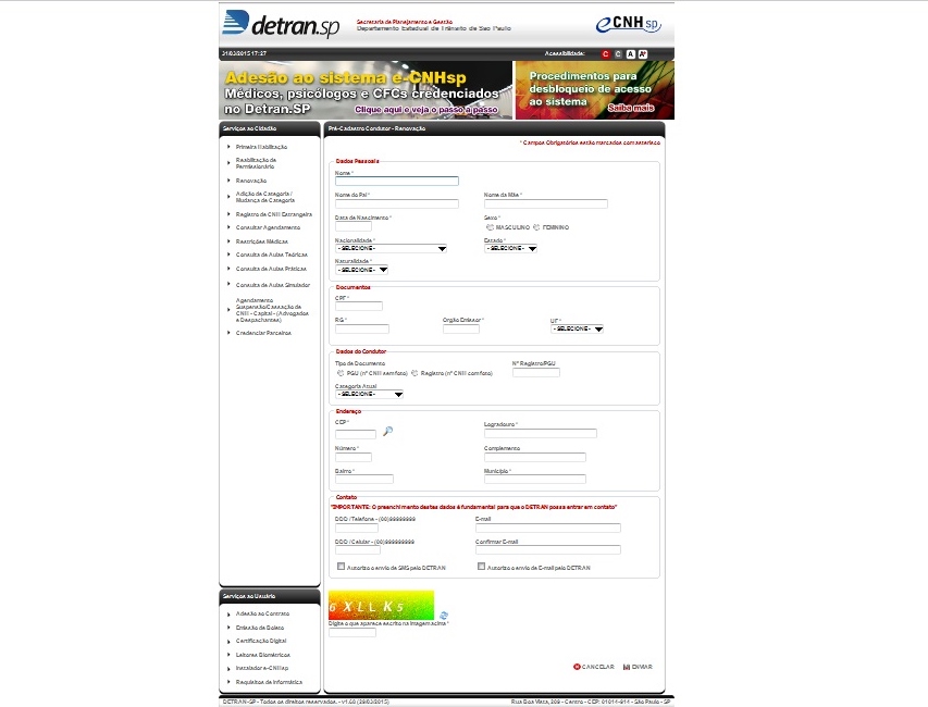 Aí você vai clicar em “Renovação da CNH” e preencher os seguintes campos: