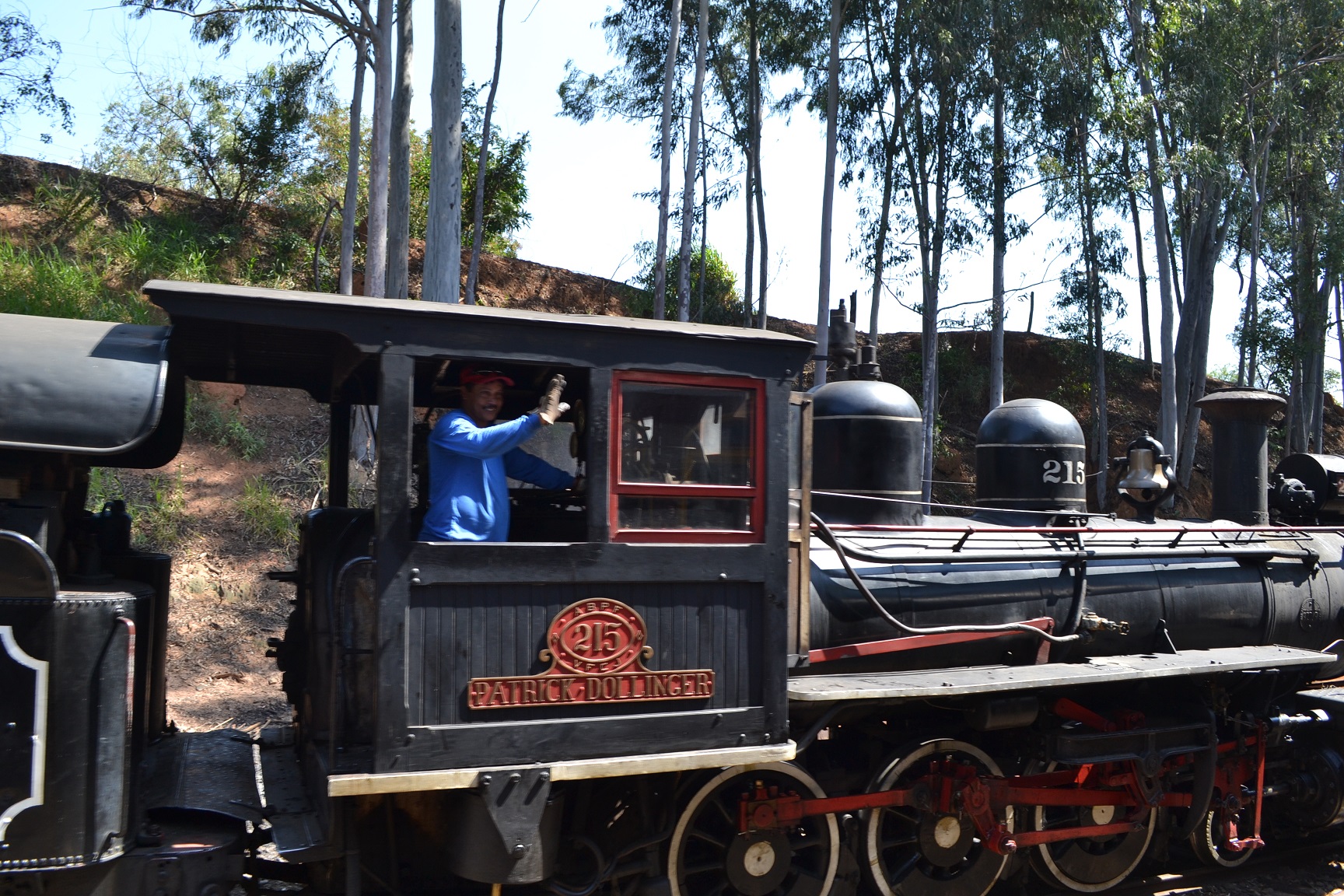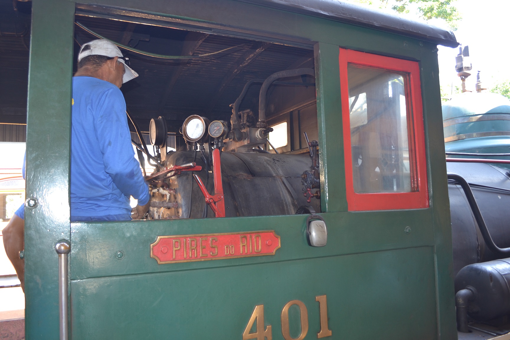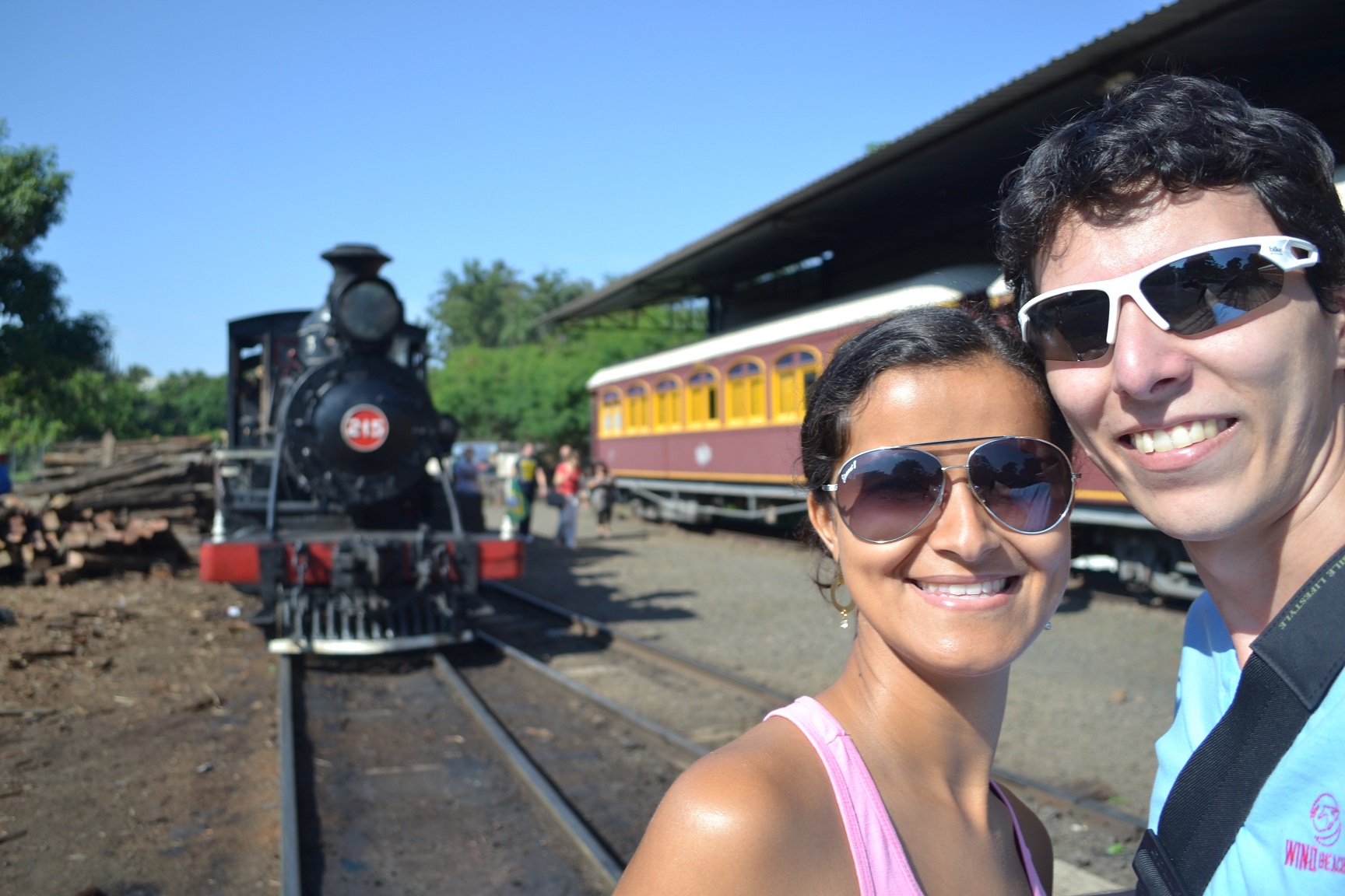 Na saída do museu, encontramos parada a locomotiva que nos levaria de volta. Subimos no maquinário e tiramos algumas fotos!
