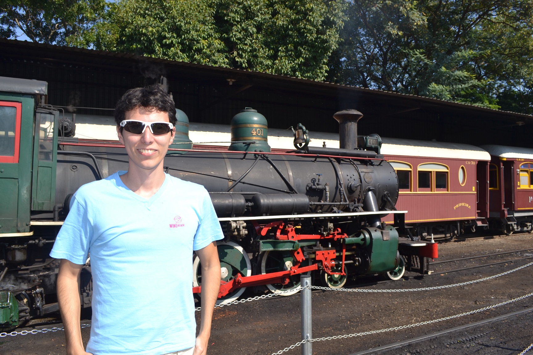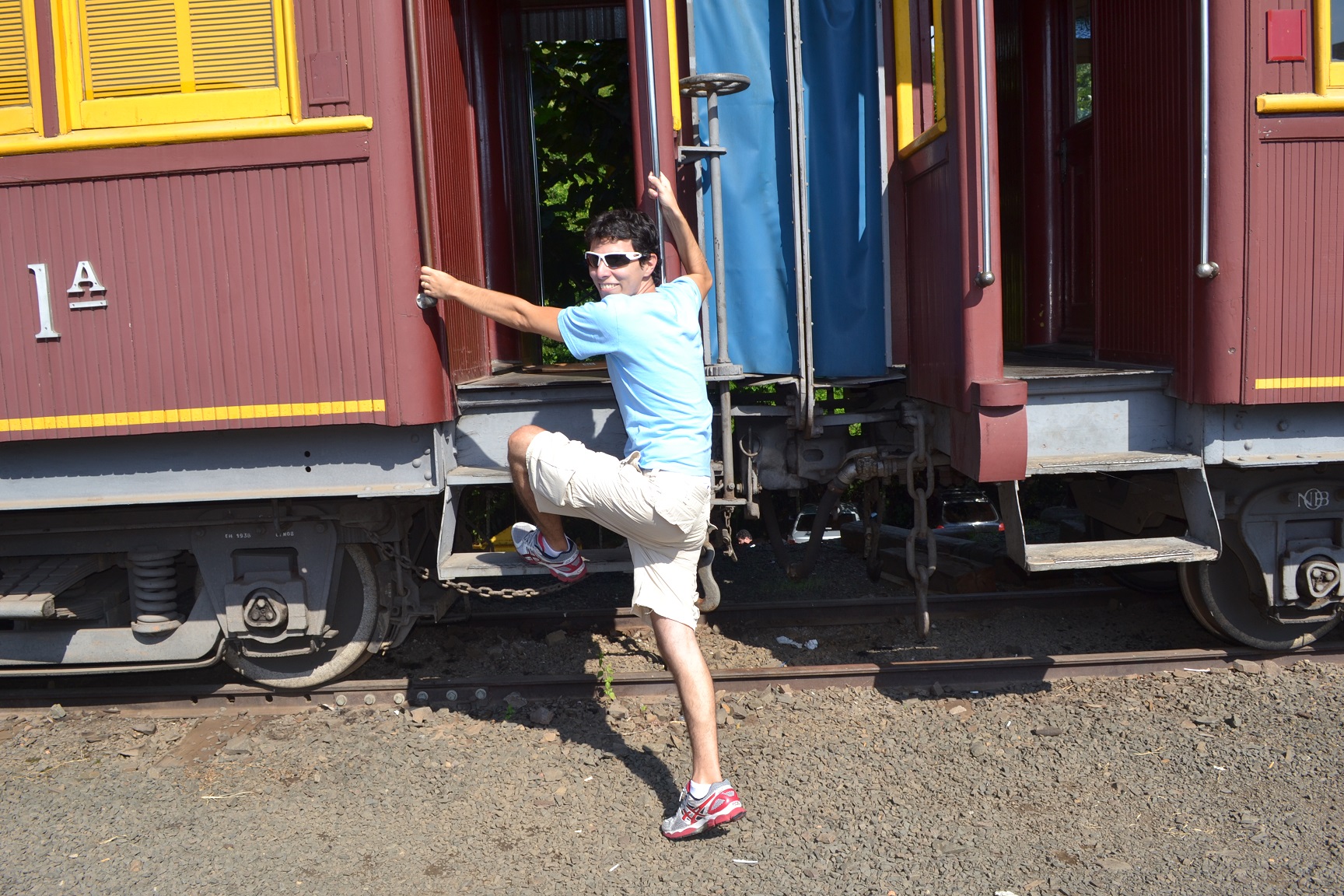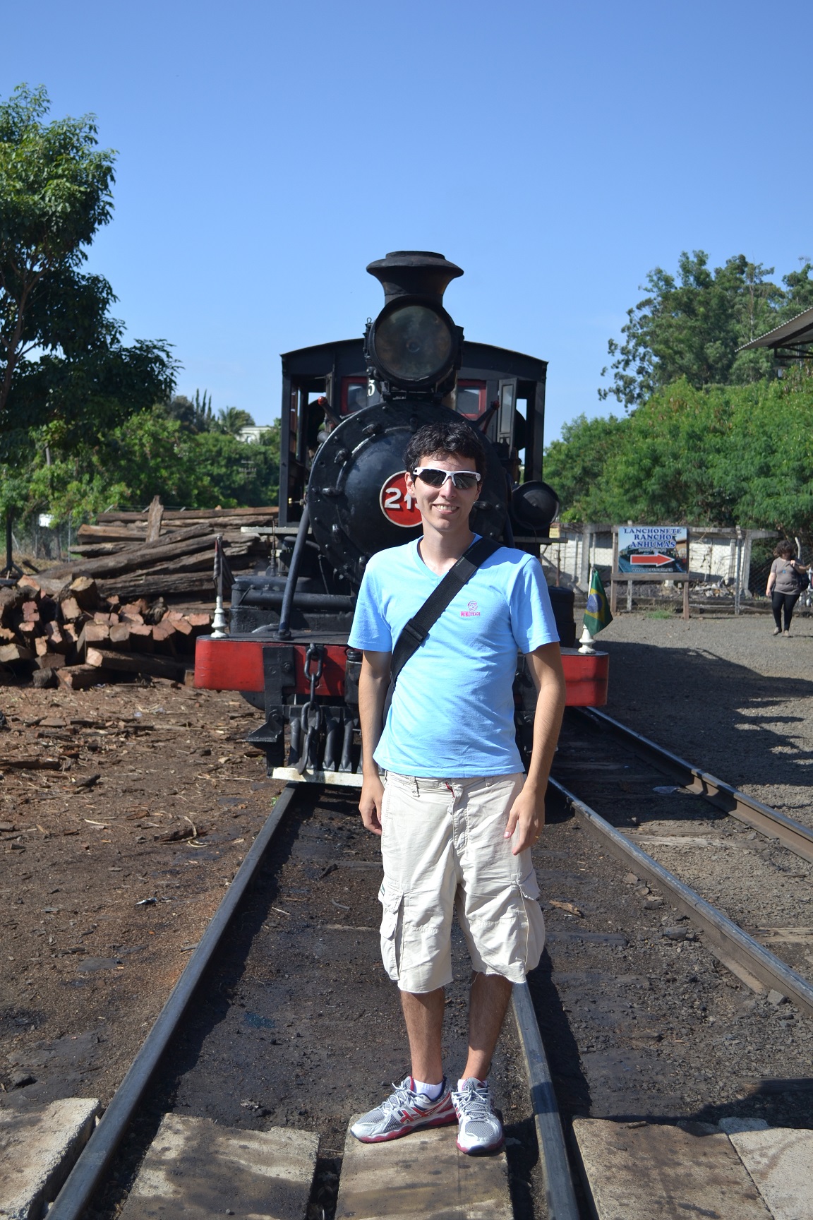 Na saída do museu, encontramos parada a locomotiva que nos levaria de volta. Subimos no maquinário e tiramos algumas fotos!