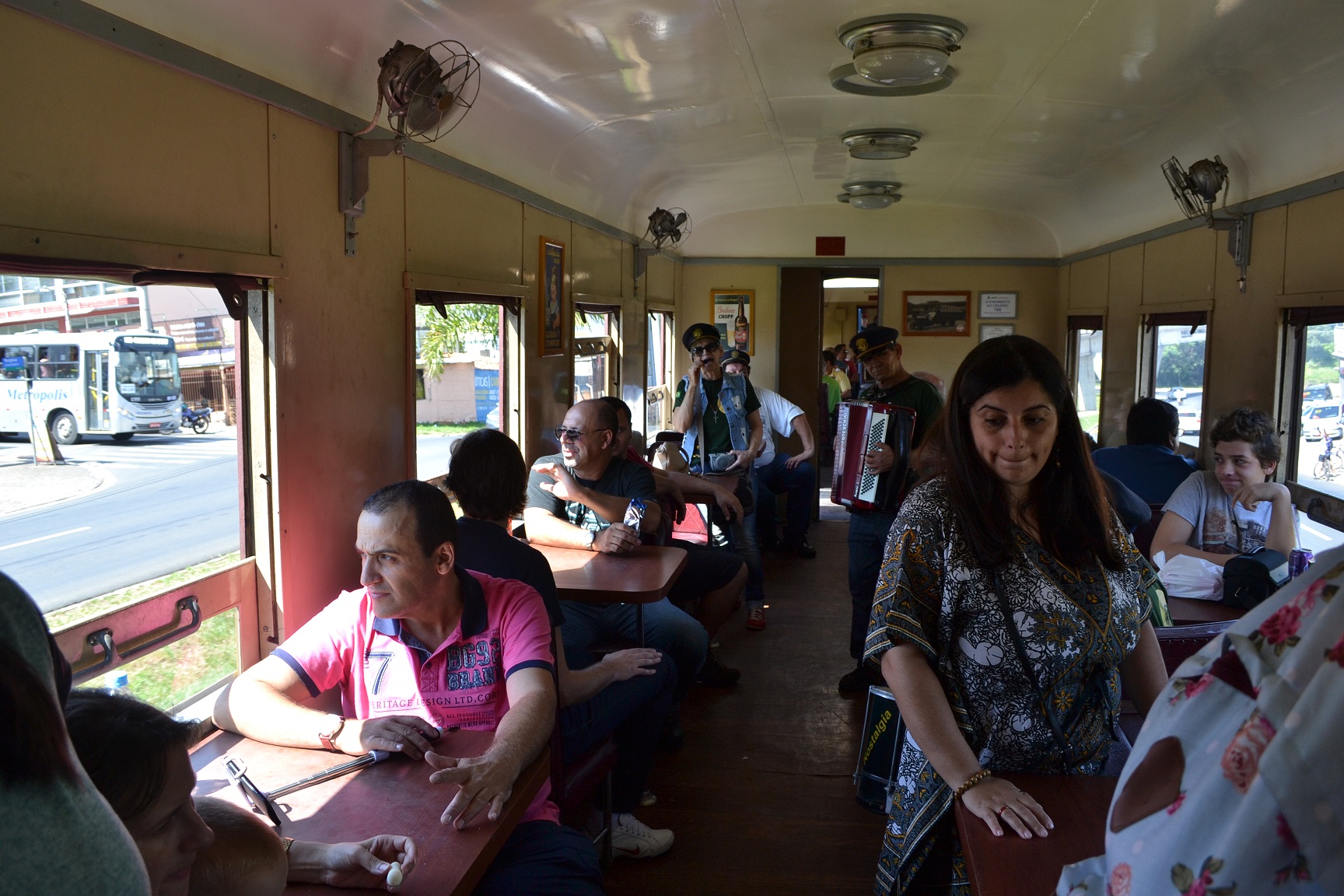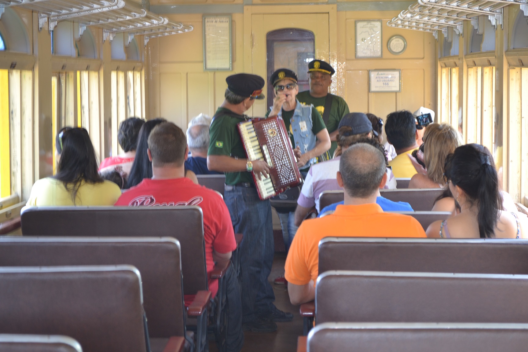 Algo muito interessante é que ao longo do passeio o Grupo Nostalgia Musical percorre os vagões tocando músicas brasileiras e levando muita animação. Tanto os adultos quanto as crianças que estavam em nosso vagão adoraram!