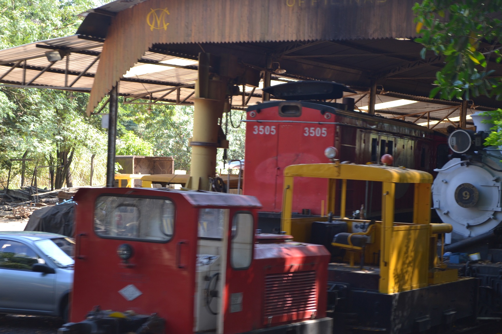 Também passamos por um “cemitério” de locomotivas, onde é realizado a restauração das locomotivas antigas e manutenção das que estão em operação.