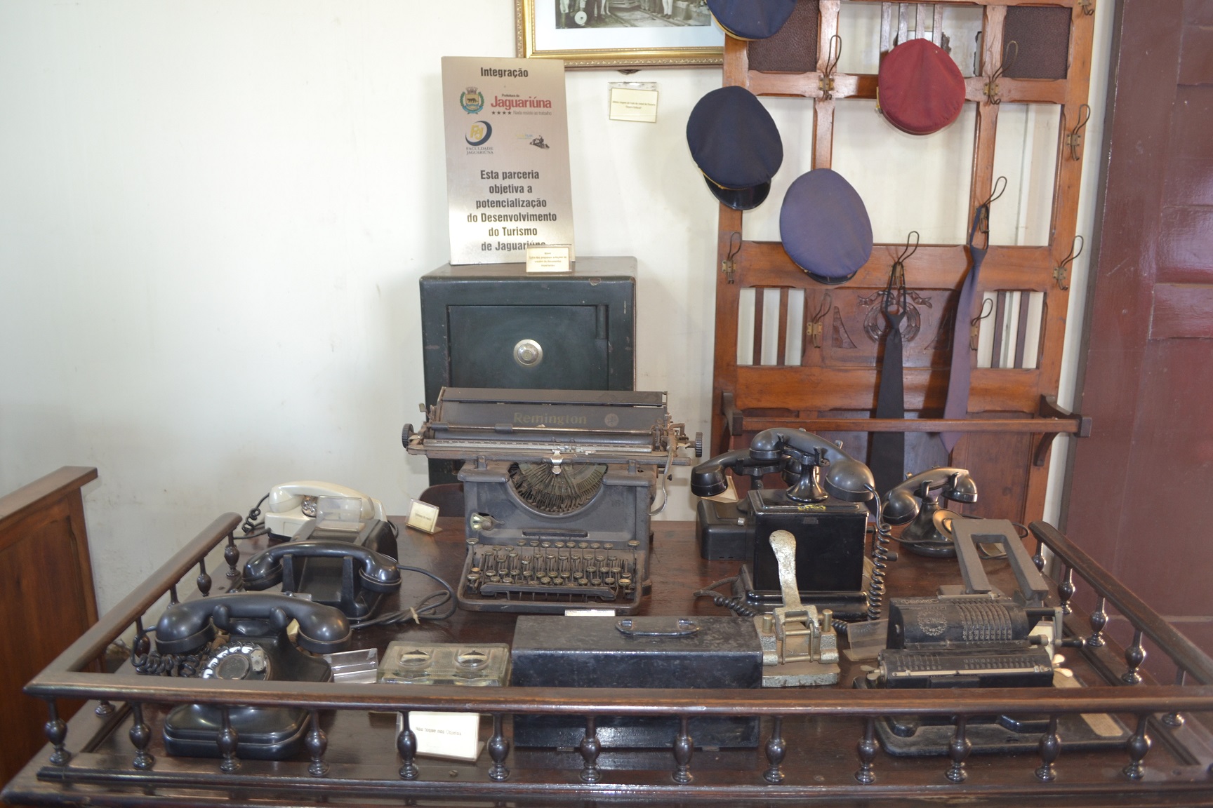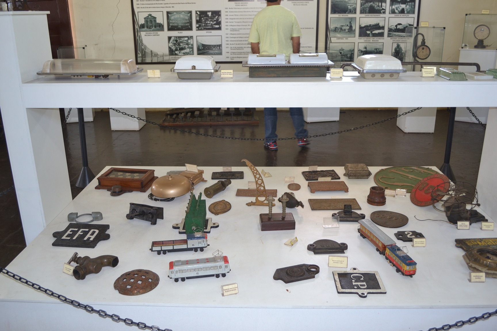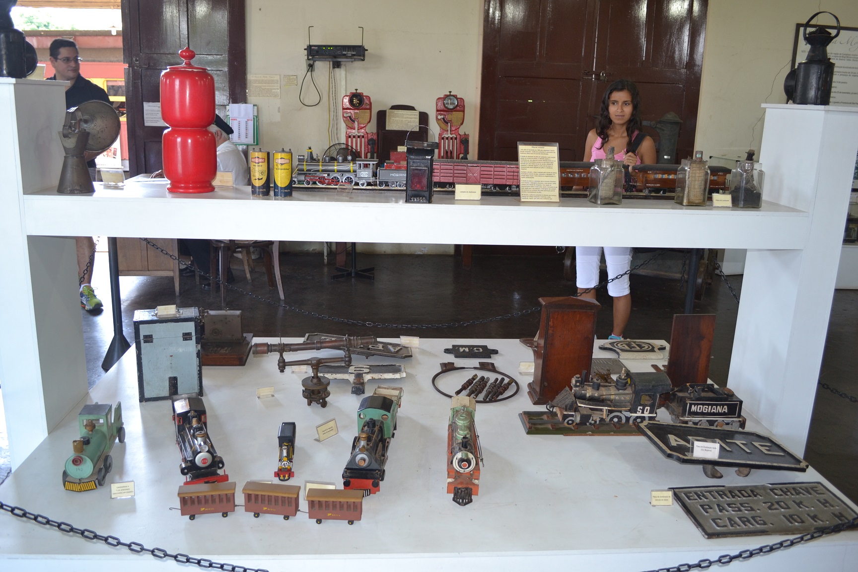 Logo no desembarque visitamos o Museu Ferroviário. Há muitas coisas antigas, desde de telefones, máquinas de escrever até peças que faziam parte dos trilhos antigos e também das locomotivas.