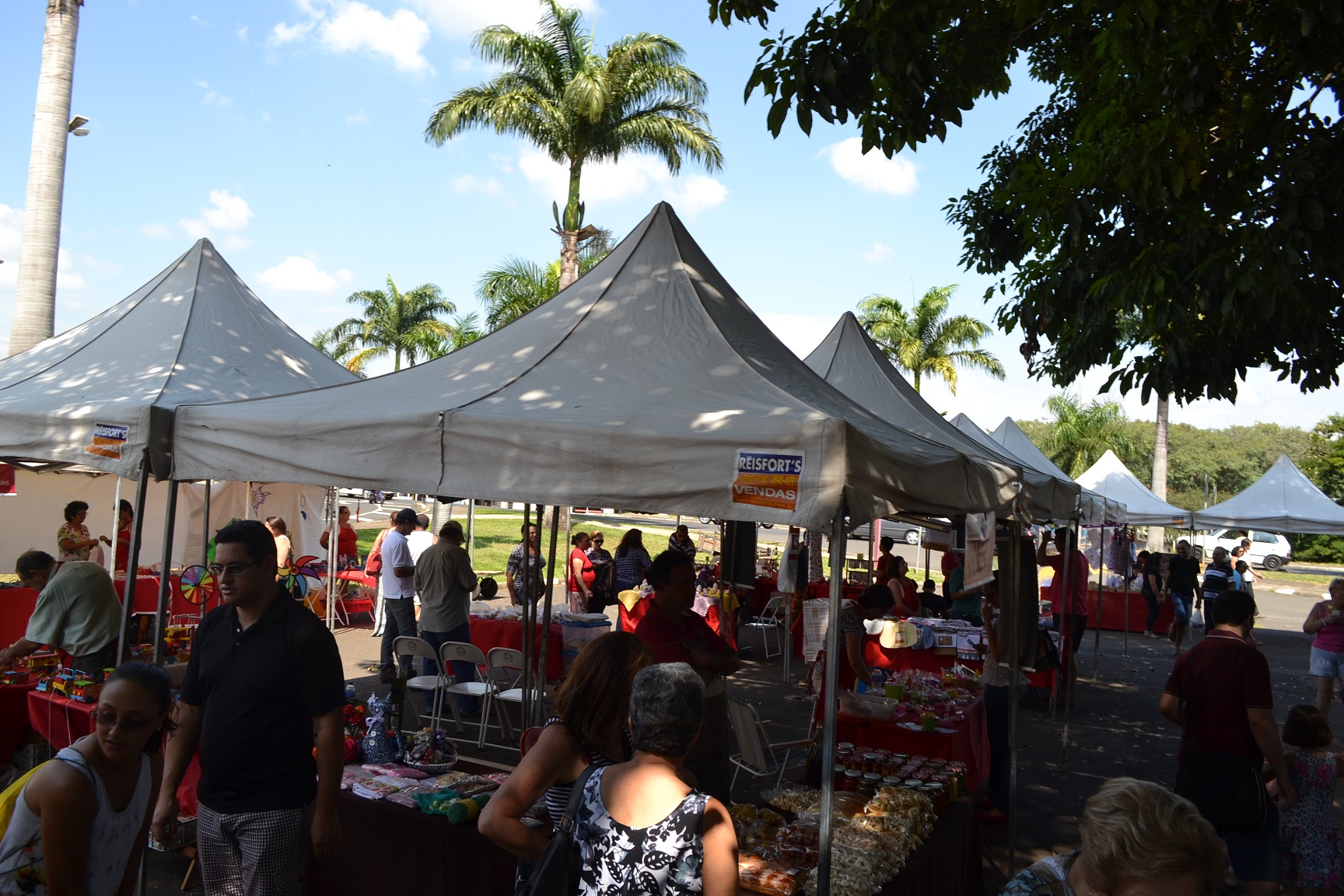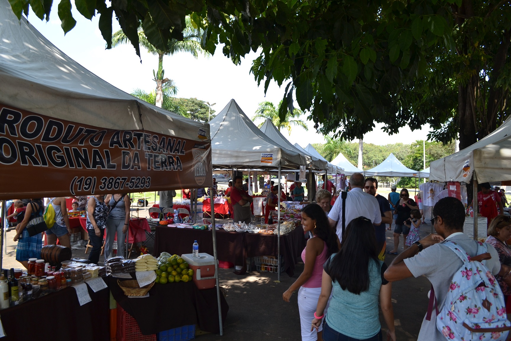 Durante a parada em Jaguariúna fomos conhecer a feira de artesanato. Havia várias barracas de artesanato com peças lindas. Também havia algumas barracas de alimentação.