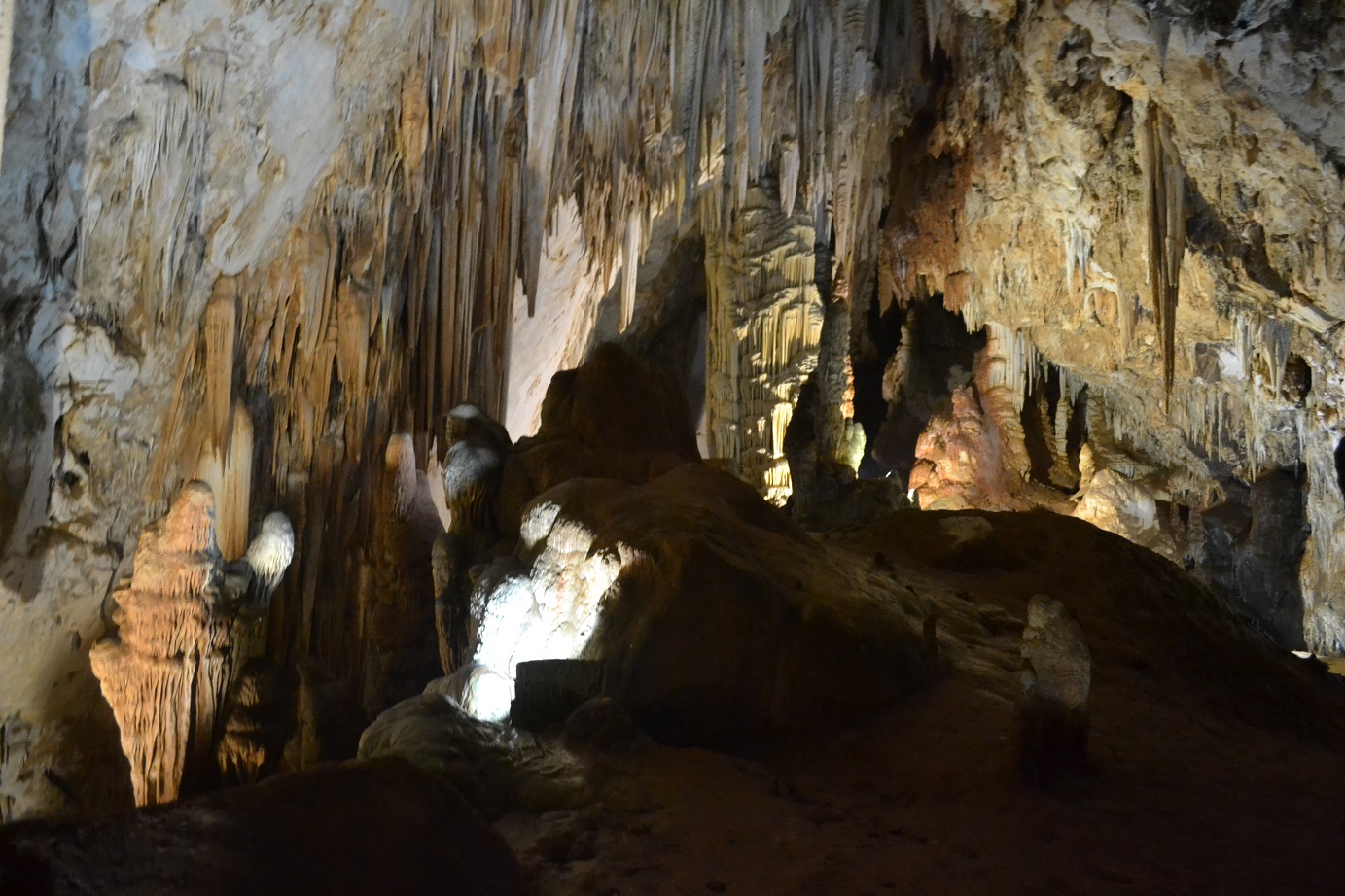 Além dessas diferentes formações rochosas, o que mais me chamou a atenção foram os grandes salões que compõem as cavidades internas da caverna. Eles se formam devido ao rebaixamento do nível das águas, que faz com que as fendas sequem. Com isso, ocorrem os desmoronamentos e a formação dos salões!