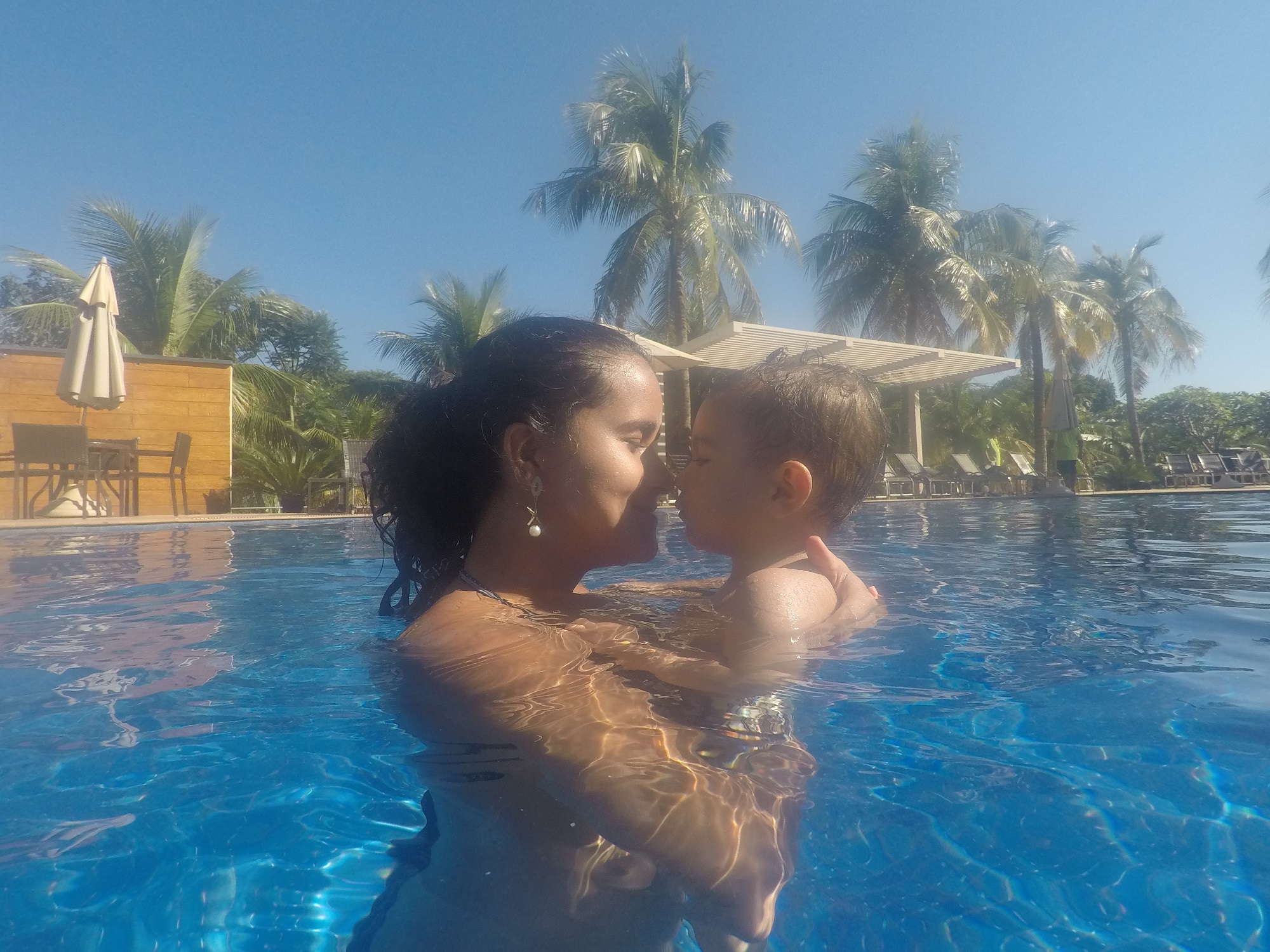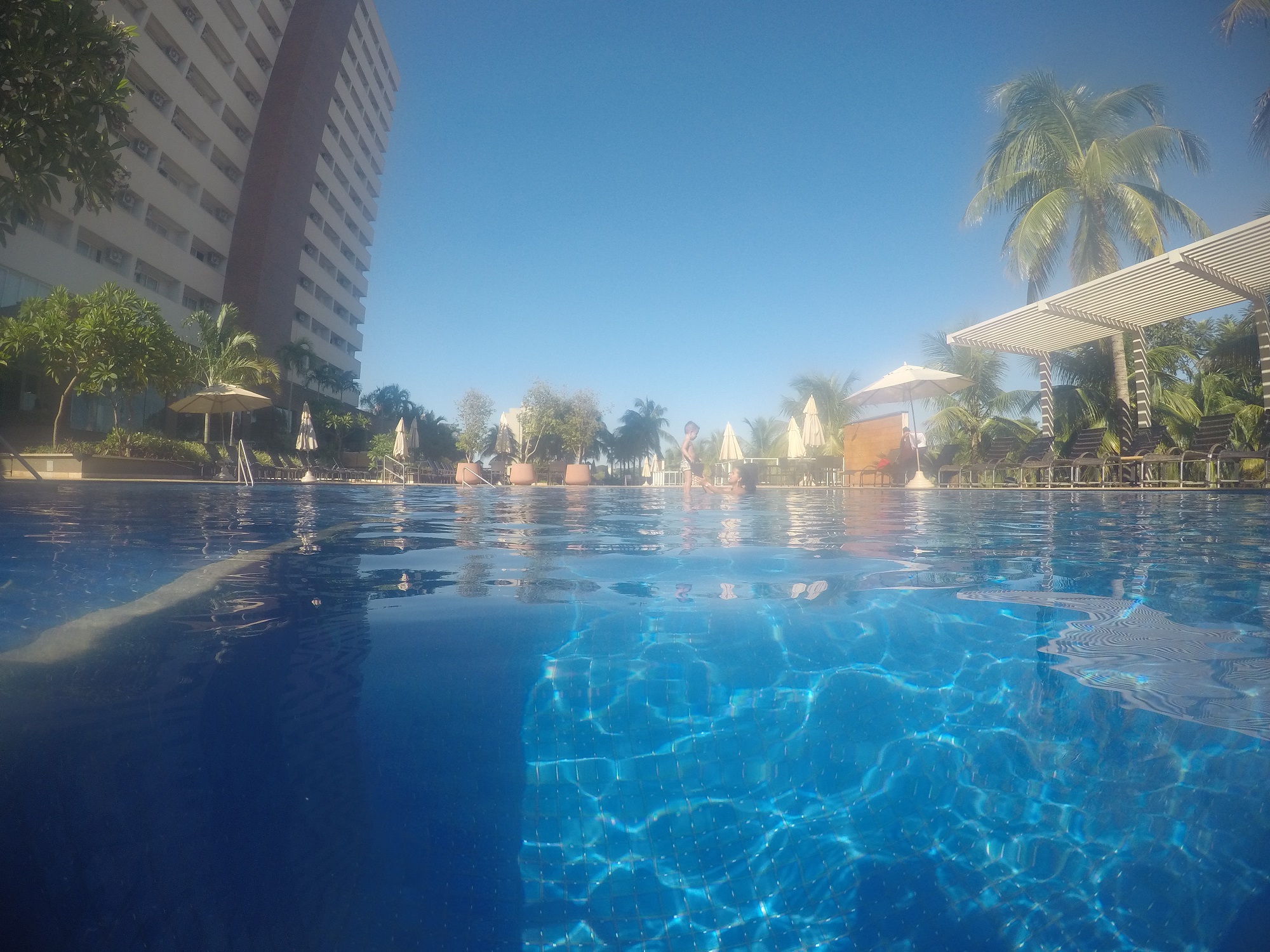 As piscinas variam em sua profundidade entre 0,30cm e 1,40m. A piscina mais rasa tem águas bem quentinhas, ideal para crianças. Passamos boa parte do tempo nessas piscinas, pois o Arthur podia ficar andando de um lado para o outro, podia sentar quando queria, sem muito perigo.