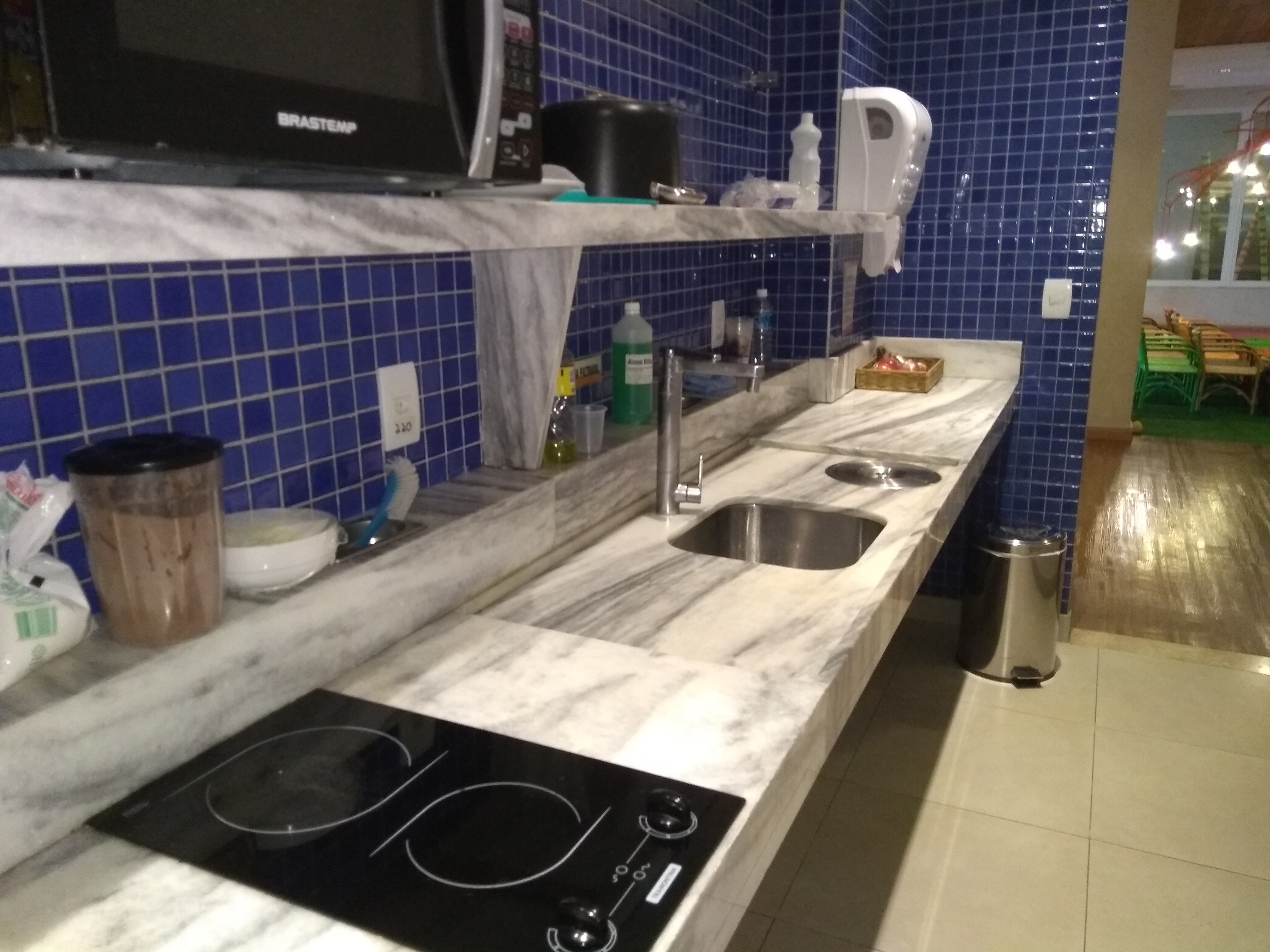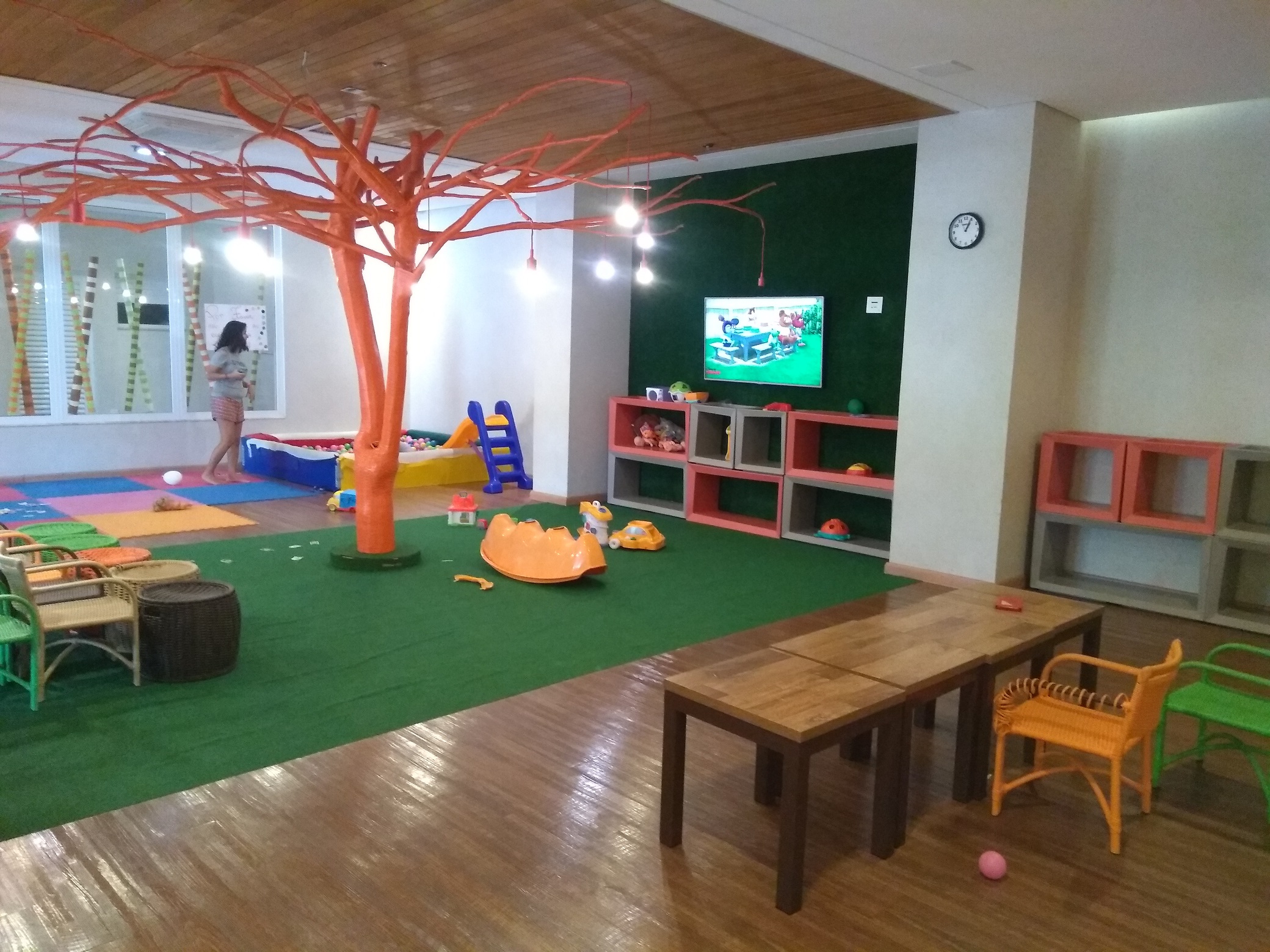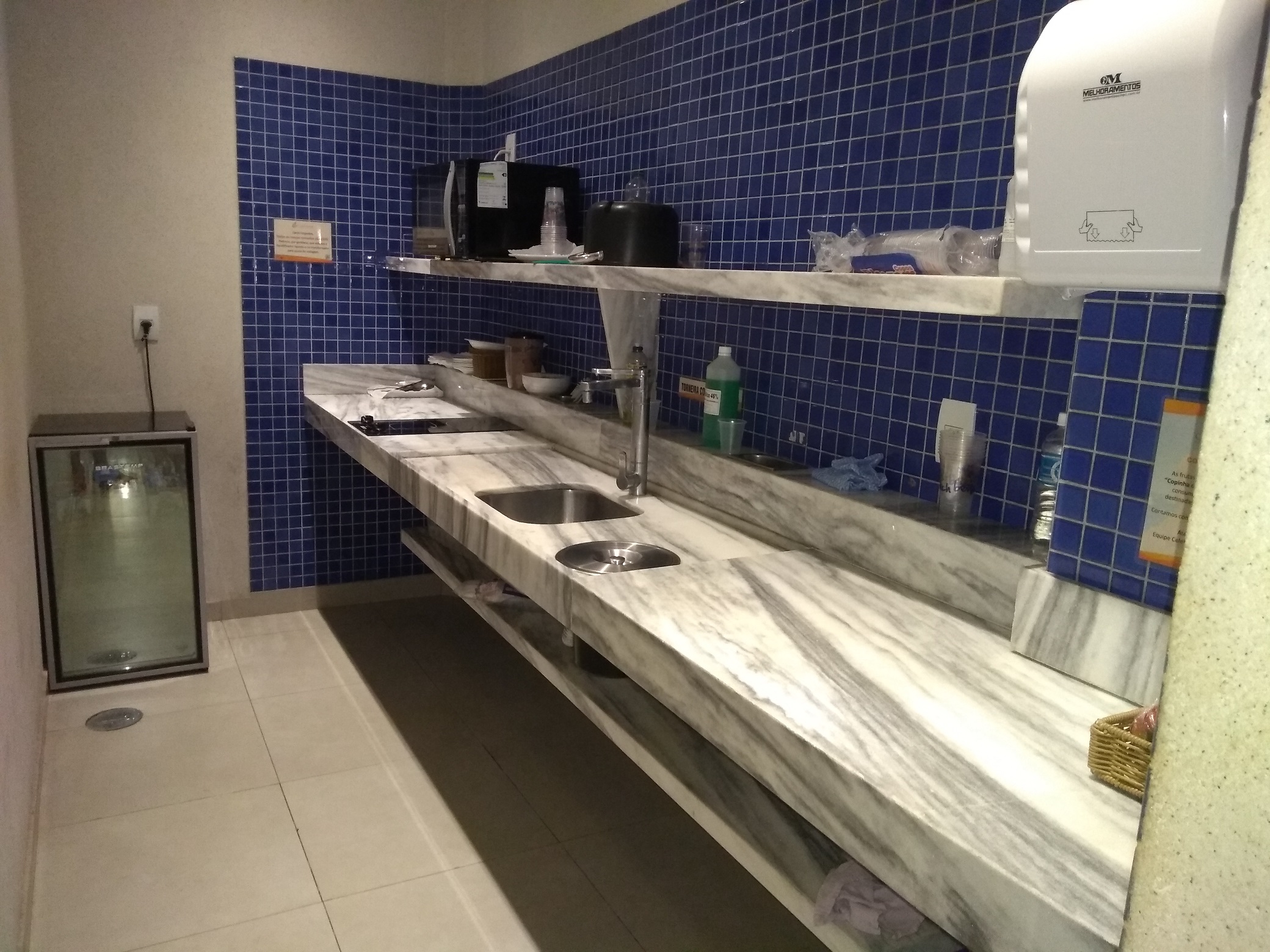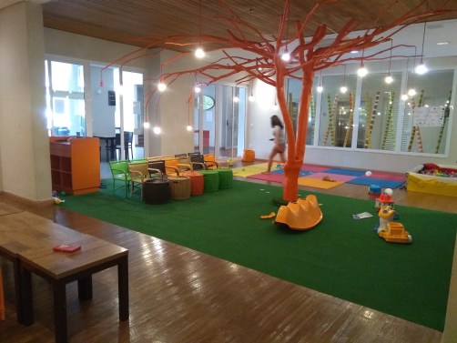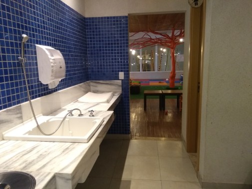 Há um espaço kids bem estruturado e também um espaço família, com copa, fogão, micro-ondas, torneira, com o intuito de facilitar a vida das famílias com crianças pequenas. Utilizamos todos os dias para lavar as mamadeiras do Arthur. Não precisamos esquentar nada pois ele já bate um pratão de arroz e feijão com alguma mistura.