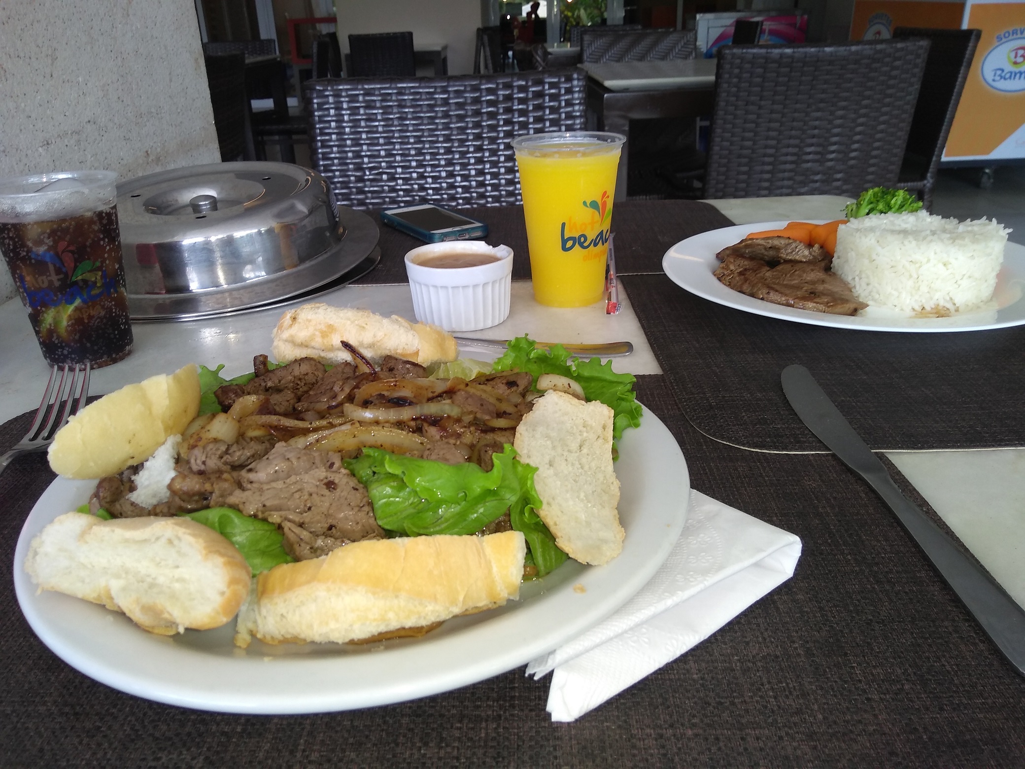 Apenas em 2 dias nós almoçamos no resort. Há pratos infantis, adultos, porções e lanches. Há também como almoçar à parte, pagando R$ 60,00 por pessoa. O almoço nesse formato é a vontade, pagando apenas a bebida.