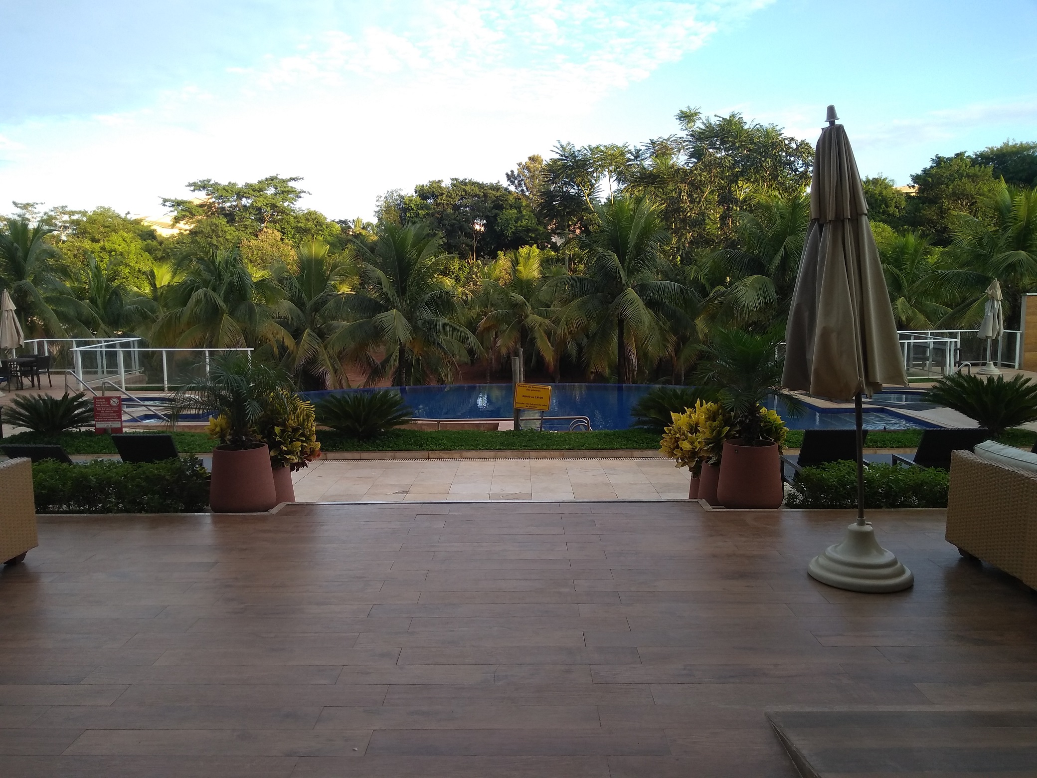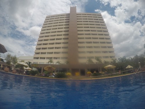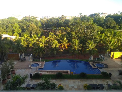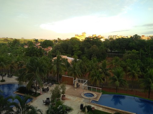 O quarto ficava de frente para as piscinas. Sacada com vista sensacional. Ar condicionado muito bem instalado, frigobar vazio, que podíamos utilizar à vontade. Chuveiro com uma ducha sensacional!