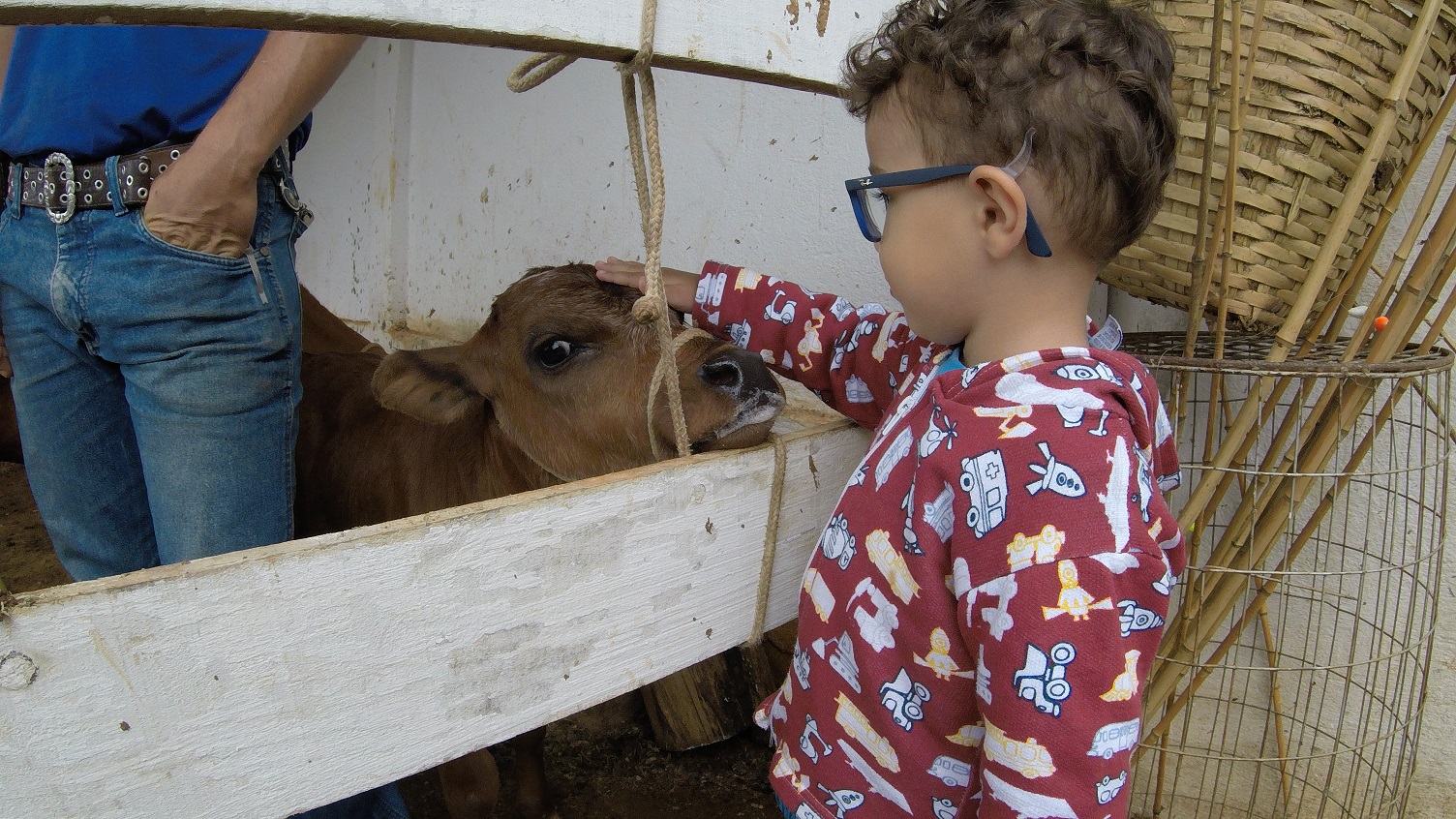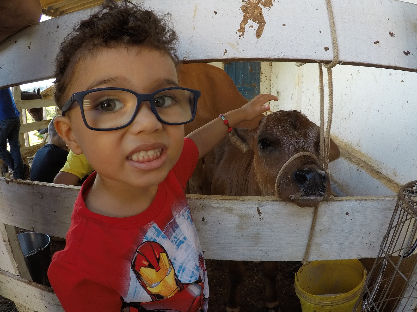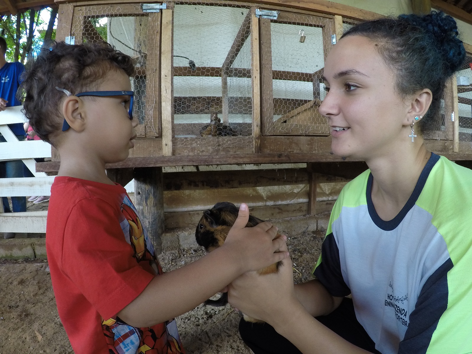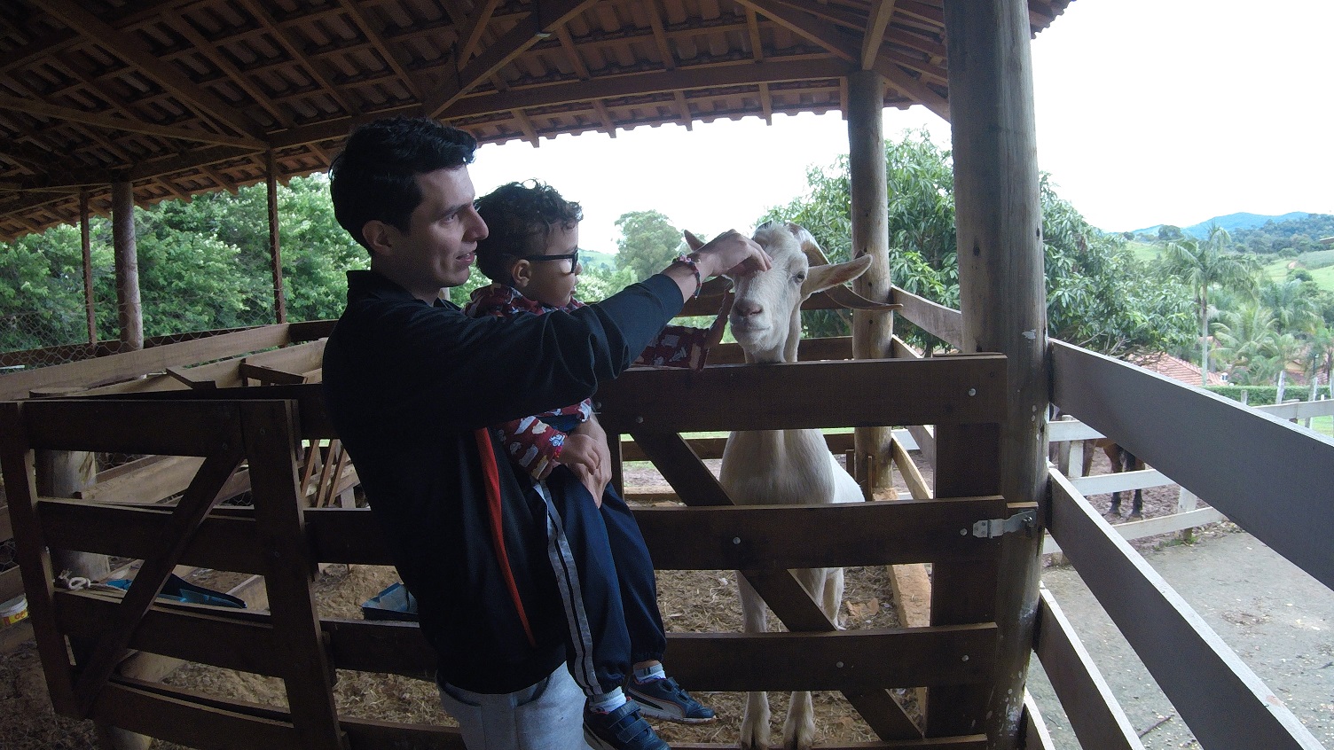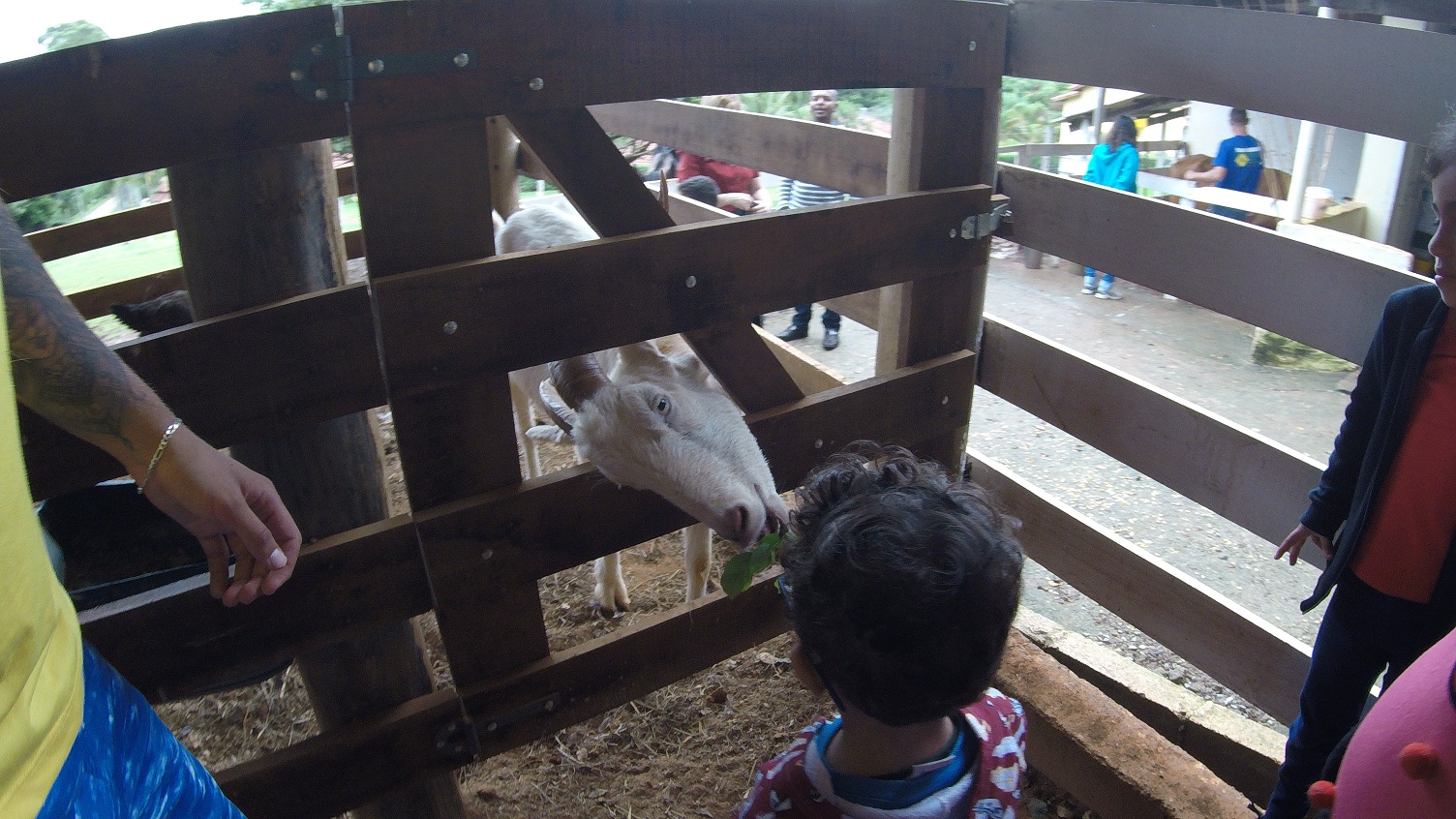 Esse é o auge do Hotel Fazenda da Colina. Eles nos permitem literalmente interagir com os animais.