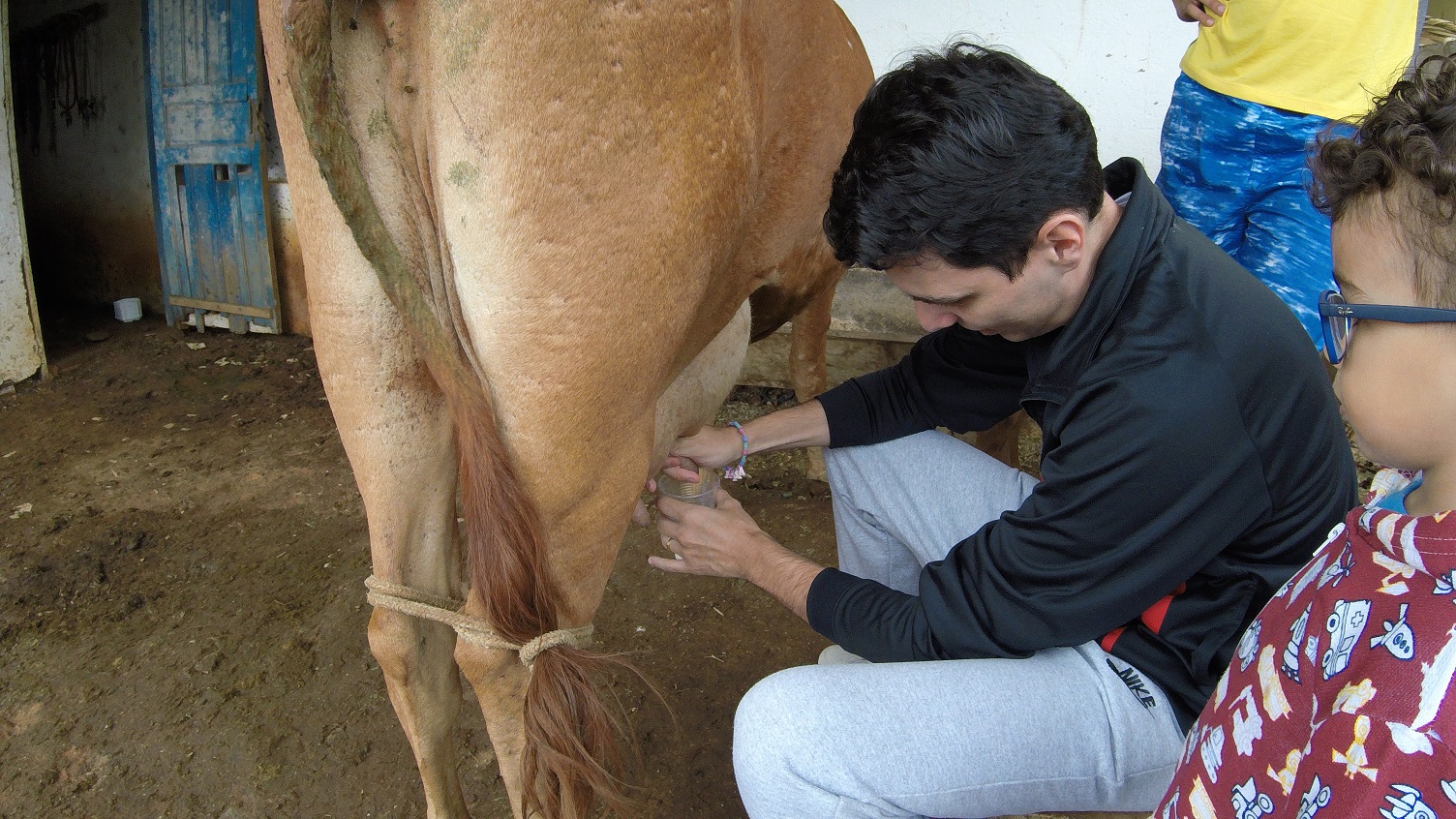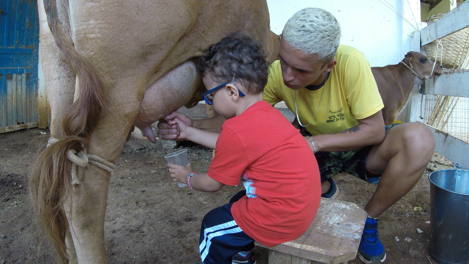 Sempre quis ordenhar uma vaca haha, foi muito interessante!