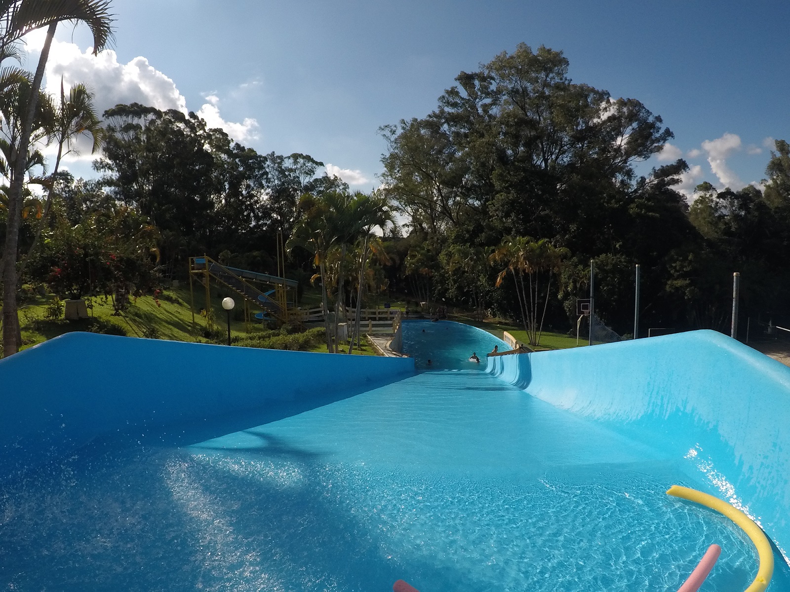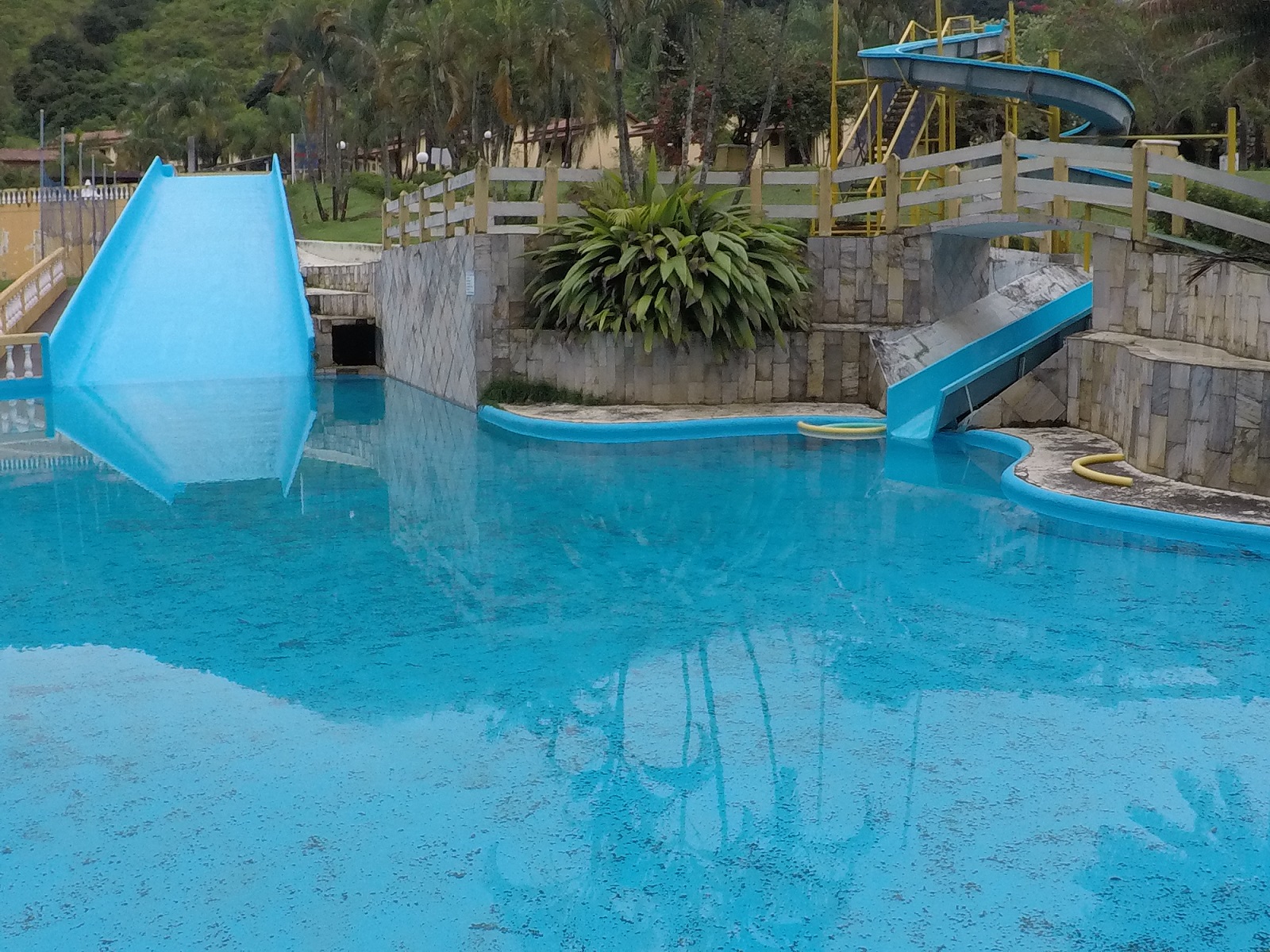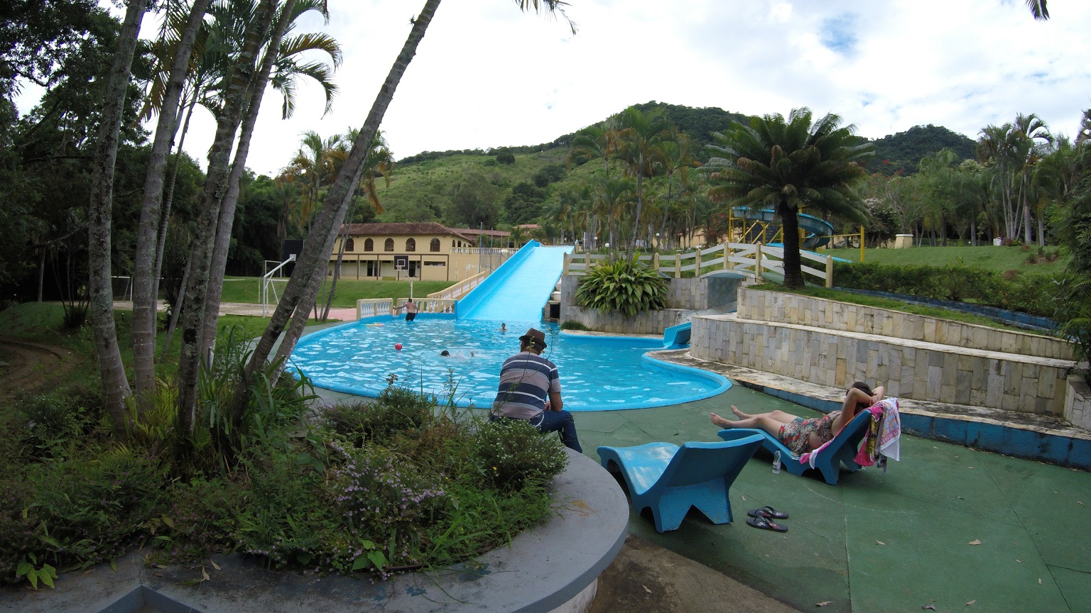 Há uma piscina de adulto e outra infantil na parte superior, próximo ao refeitório e salão de festa. Também há 2 tobogãs, um bem largo para descer escorregando e outro em caracol bem fino mas super rápido. Este super fino eu só tive coragem de ir 1x!