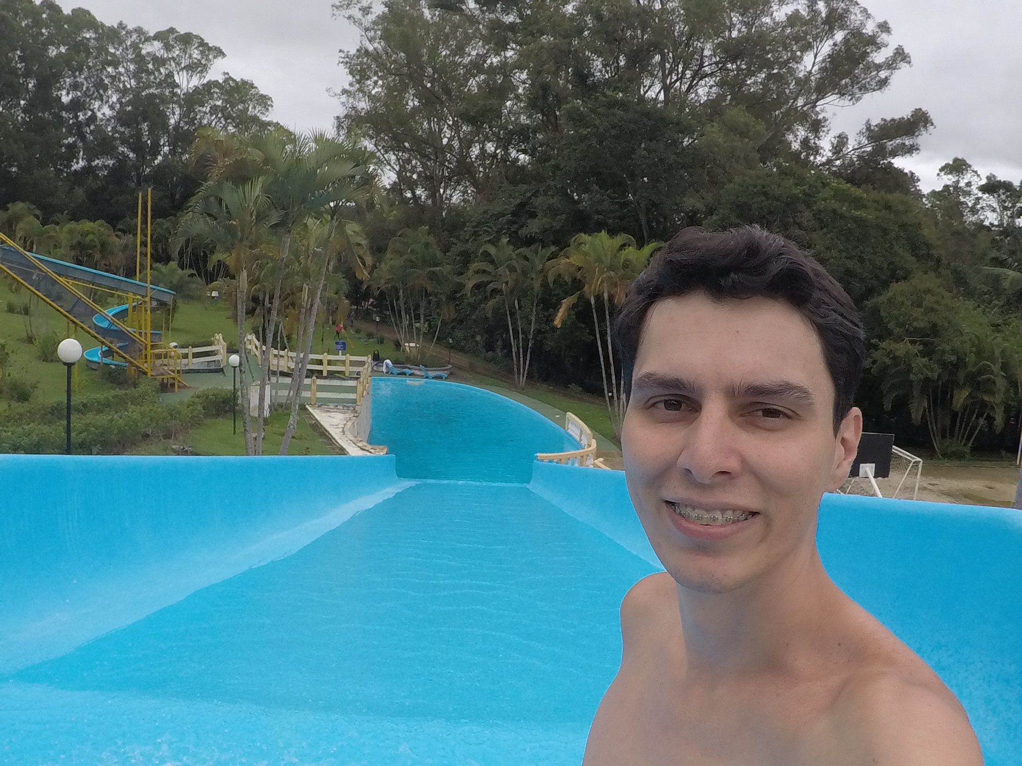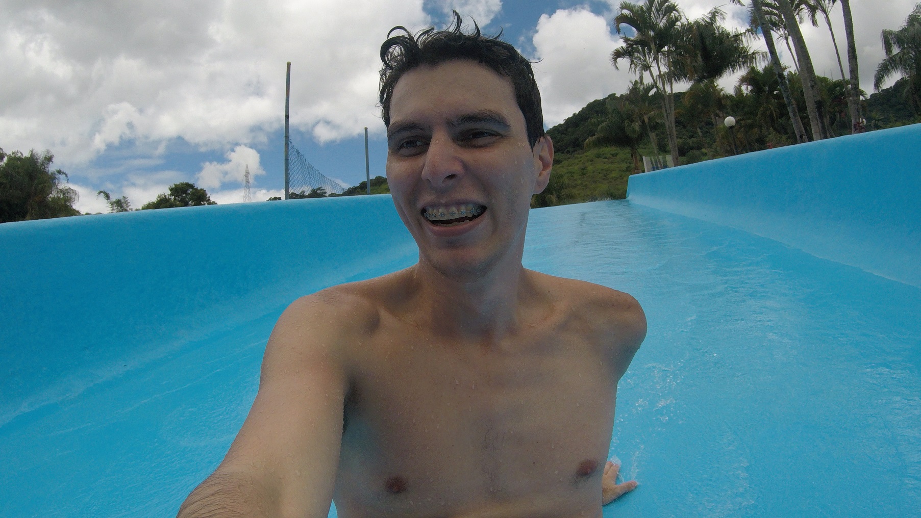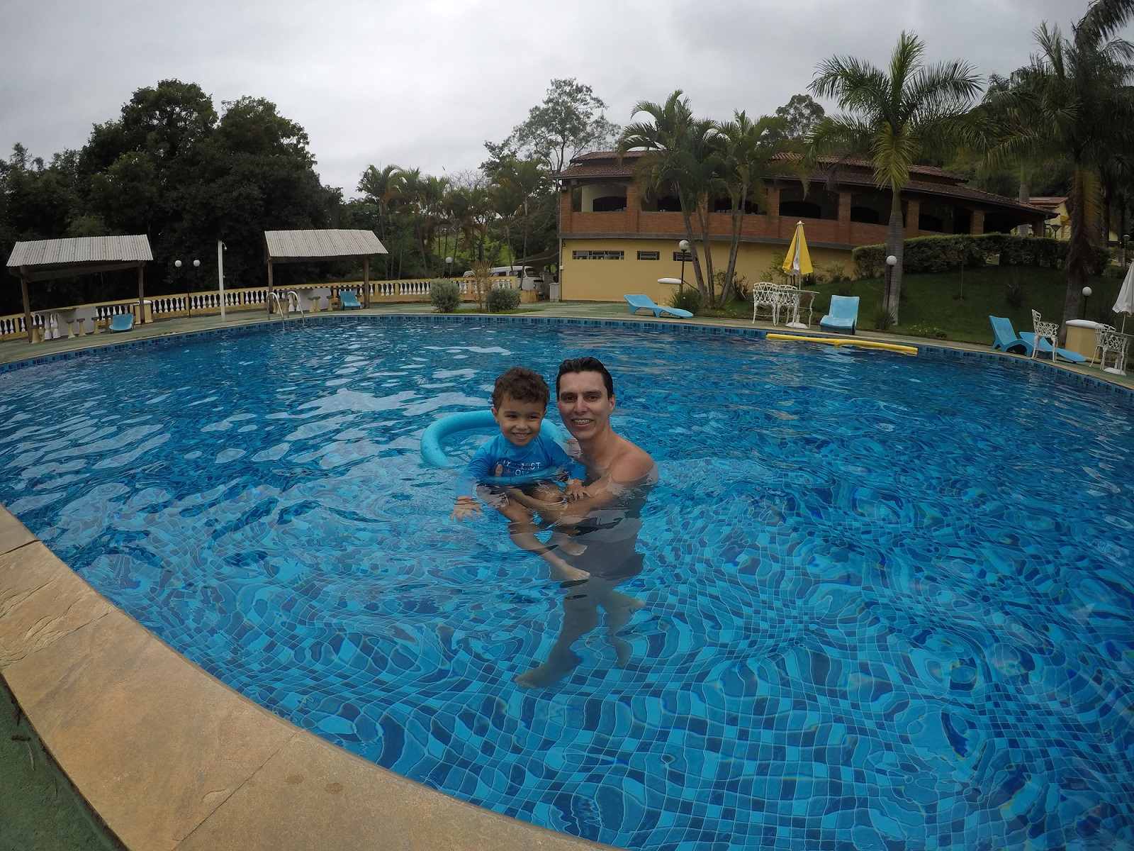 Há uma piscina de adulto e outra infantil na parte superior, próximo ao refeitório e salão de festa. Também há 2 tobogãs, um bem largo para descer escorregando e outro em caracol bem fino mas super rápido. Este super fino eu só tive coragem de ir 1x!