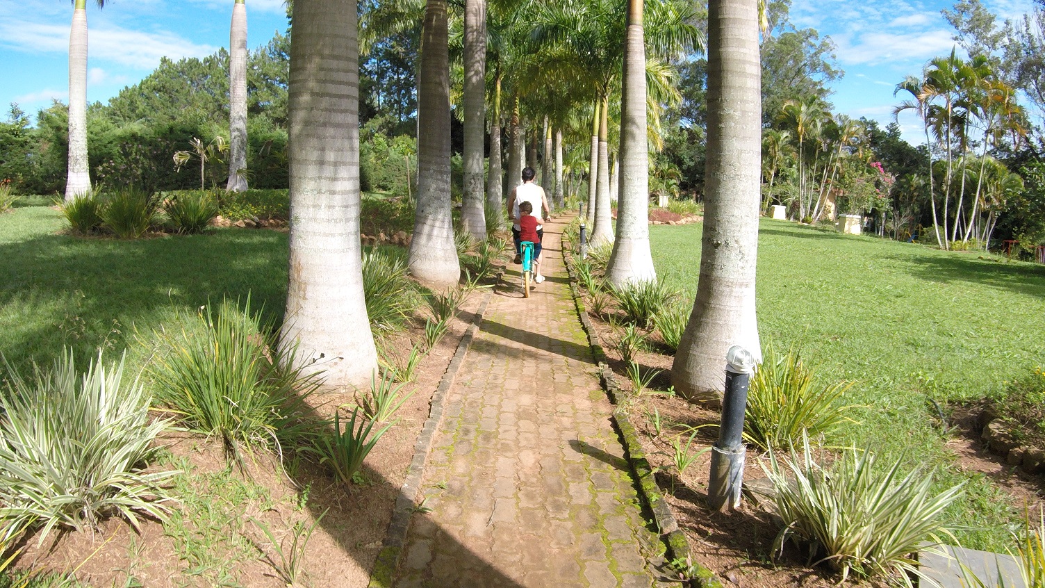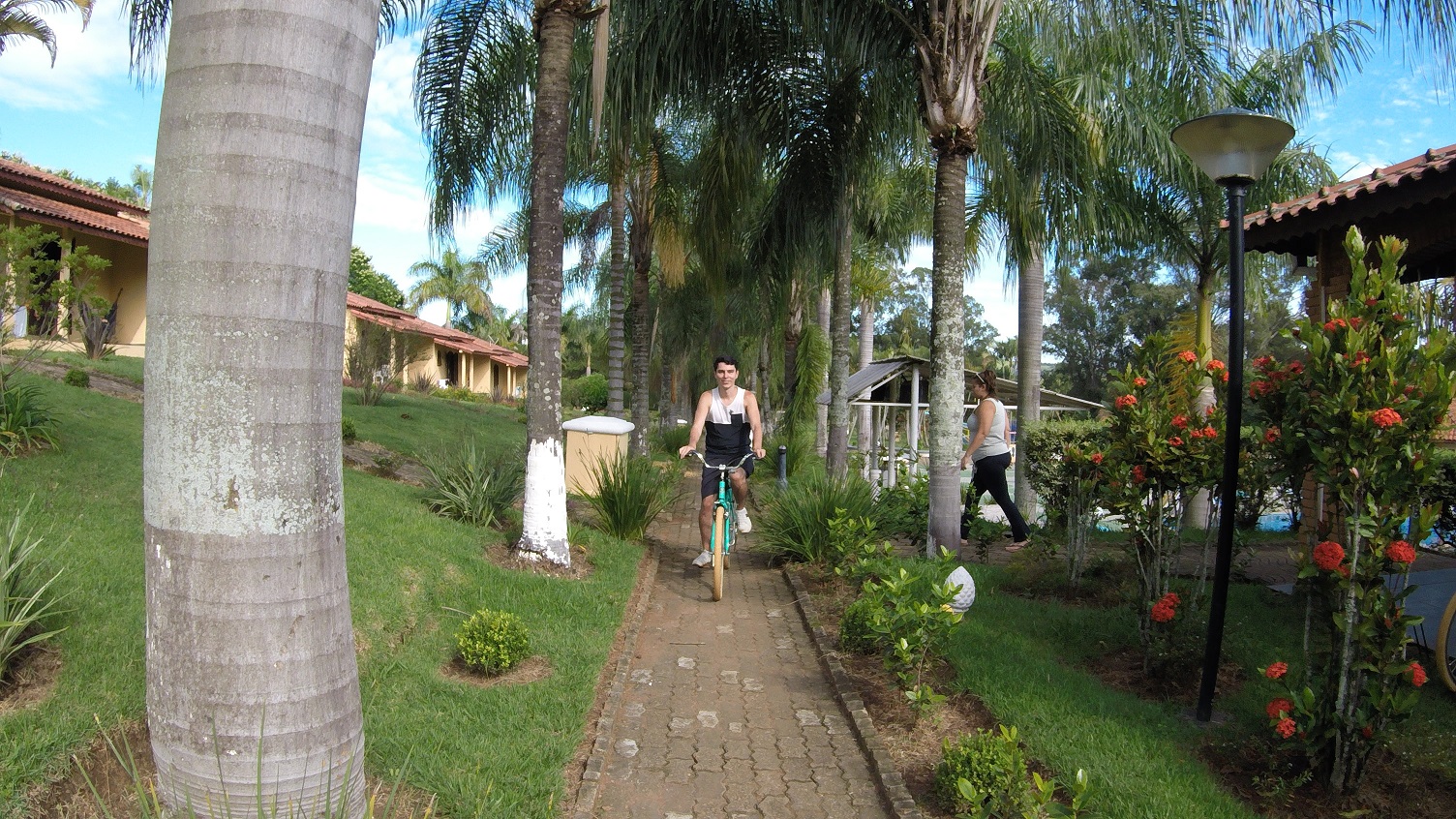 A vegetação do local é maravilhosa. Em um dia de Sol como pegamos, é muito lindo e gostoso andar de bike, ao som dos passarinhos e outros animais que ficam soltos.