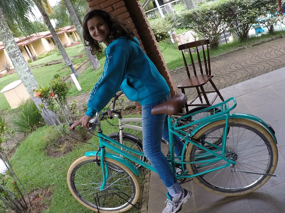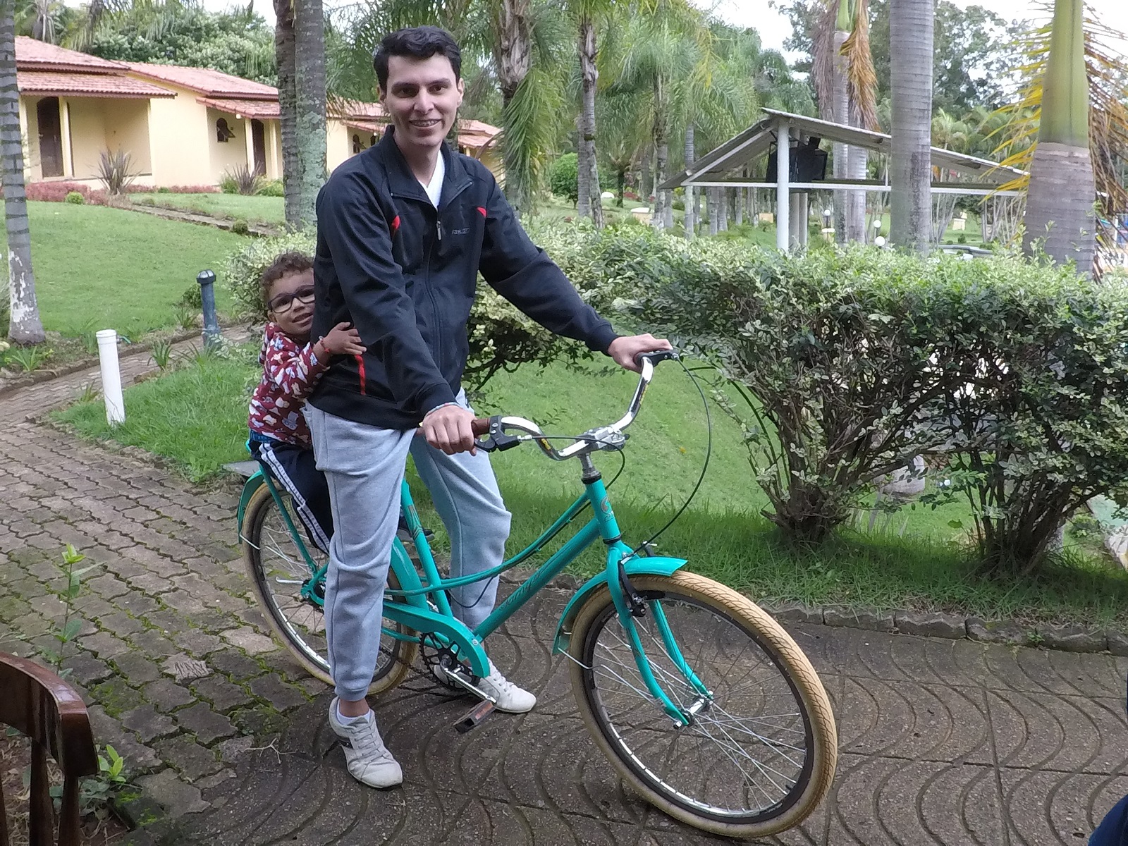 Algo muito legal que o hotel disponibiliza, são algumas bikes retrô para passear pelo hotel fazenda. As bikes já vem com as garupas fixas, sendo possível levar uma criança junto no passeio!