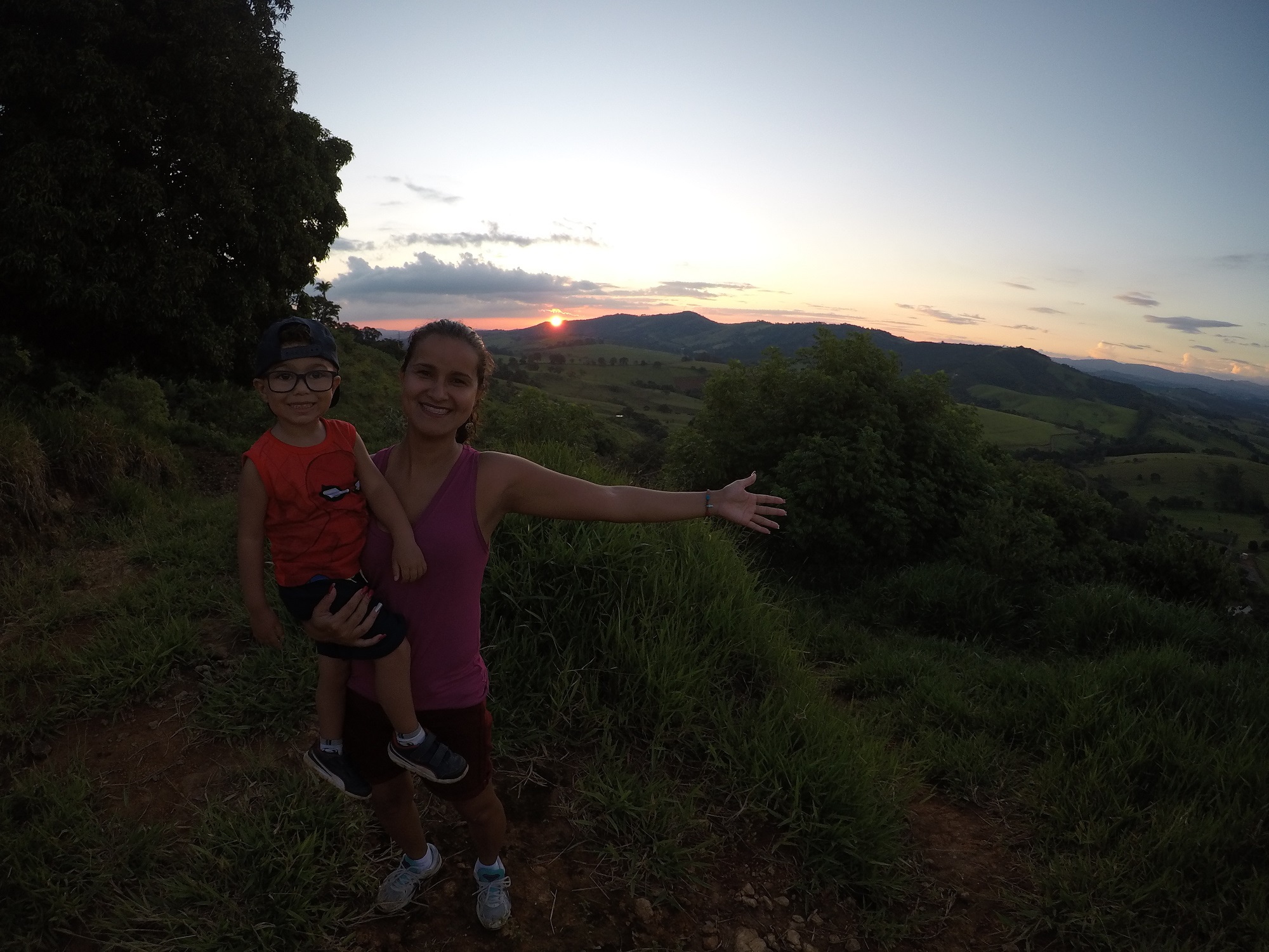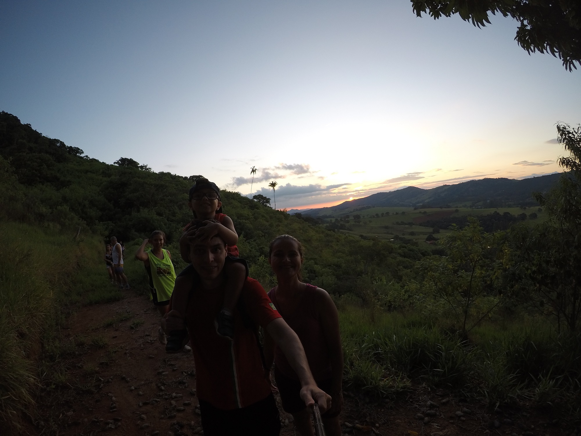O Arthur é um aventureiro! Nos acompanhou na caminhada toda sem nenhuma reclamação. A subida inteira ele fez andando. Obviamente como estávamos com uma criança o ritmo foi mais lento. Acabamos levando cerca de 1h para chegar no ponto mais alto para vermos o pôr do Sol.