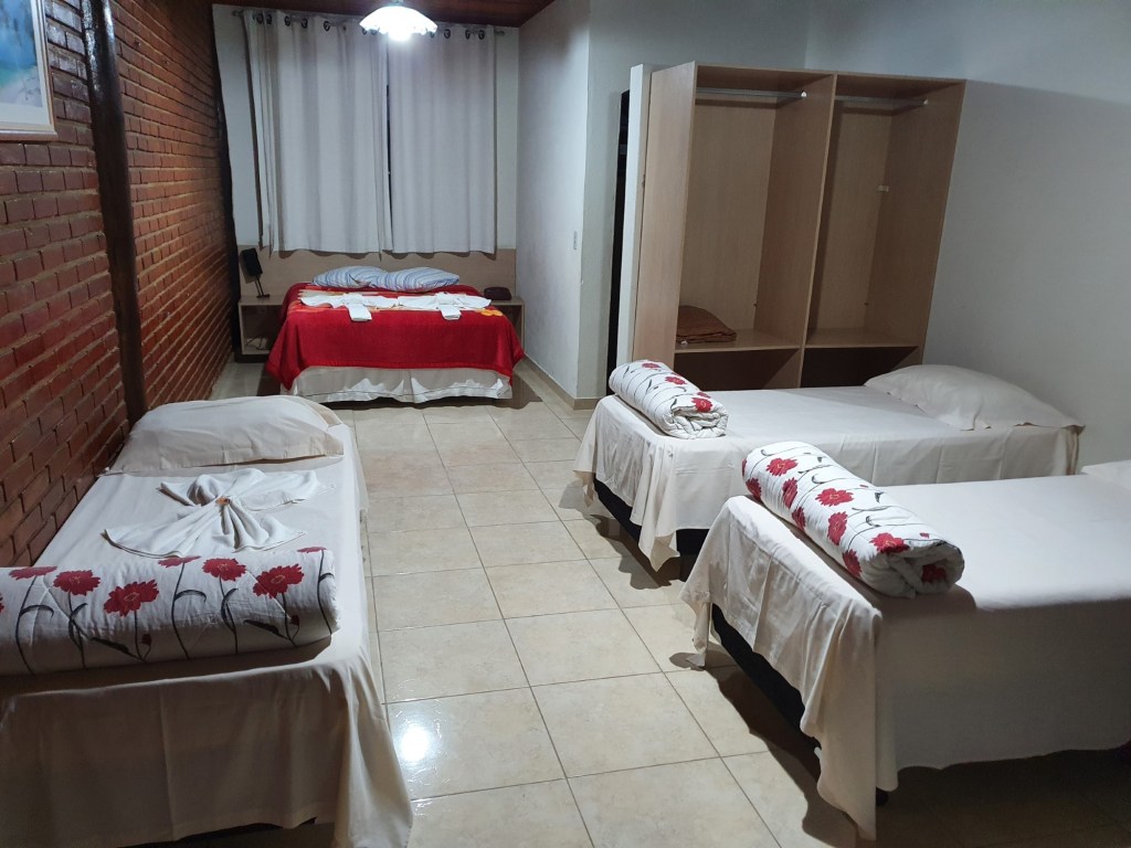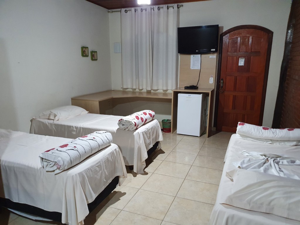 Tendo em vista este cenário, pedimos para nos trocar de quarto. Nos colocaram no Apartamento Standard, que era bem mais amplo e clean. Basicamente o que muda é o tamanho da TV, tem 1 cama a mais e no banheiro tem secador.