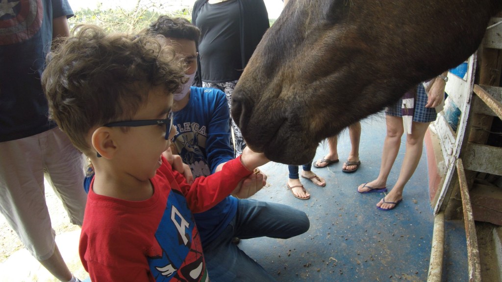 Há diversos animais onde é possível as crianças interagirem com os animais: