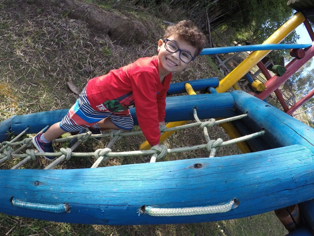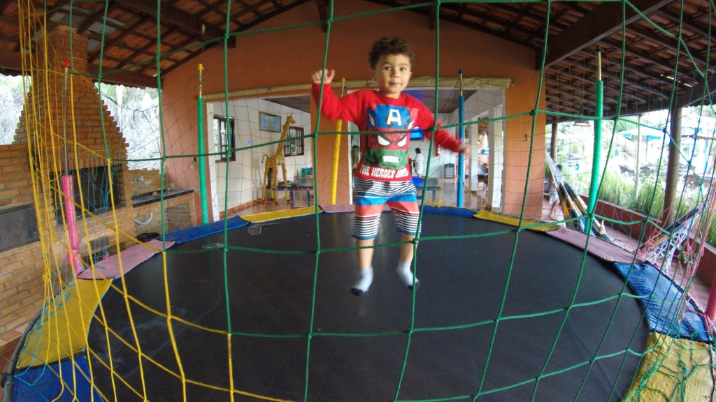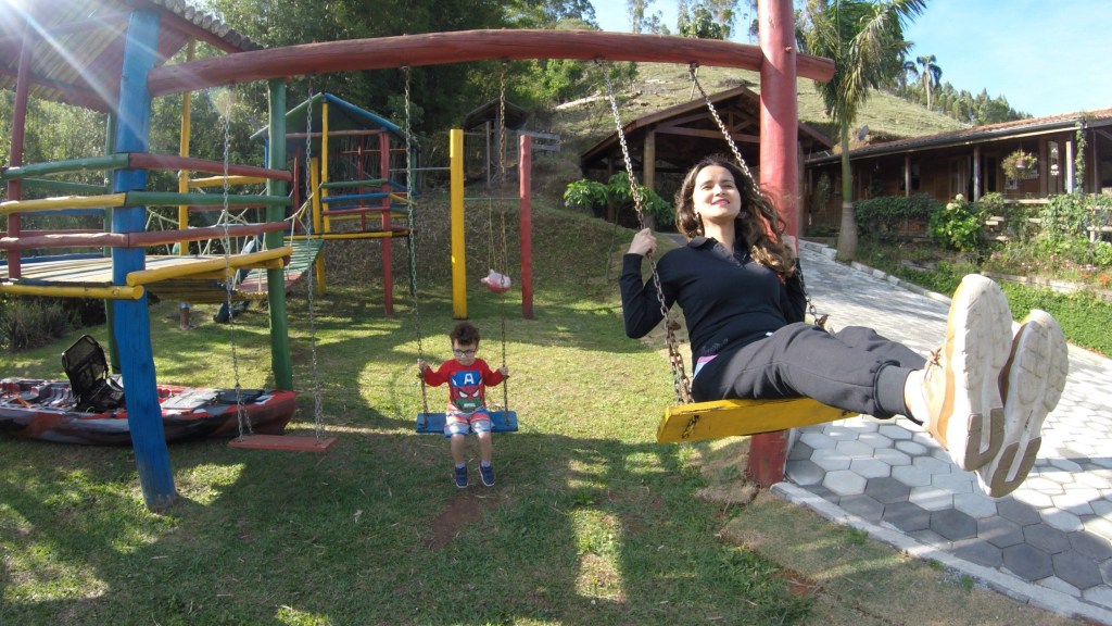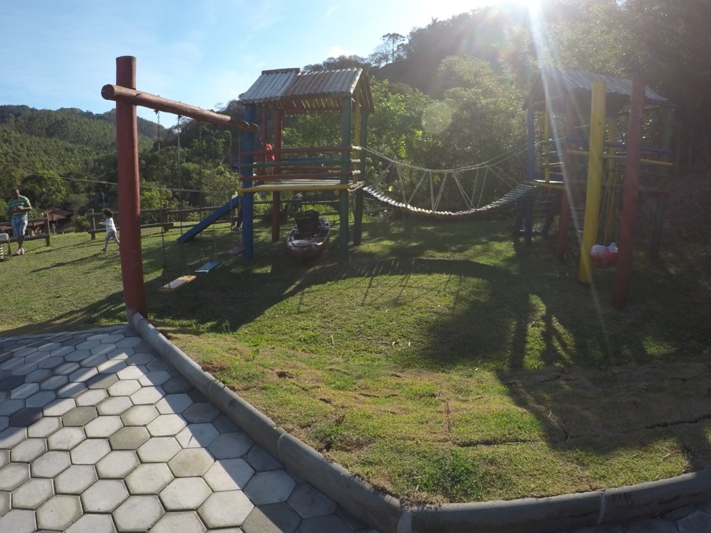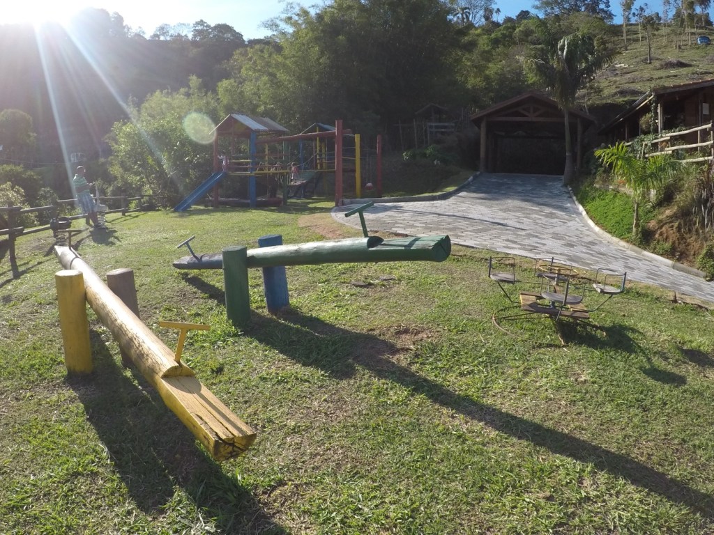 Ao lado dos quartos tinha uma mini tirolesa, que foi a diversão pelas manhãs das crianças.