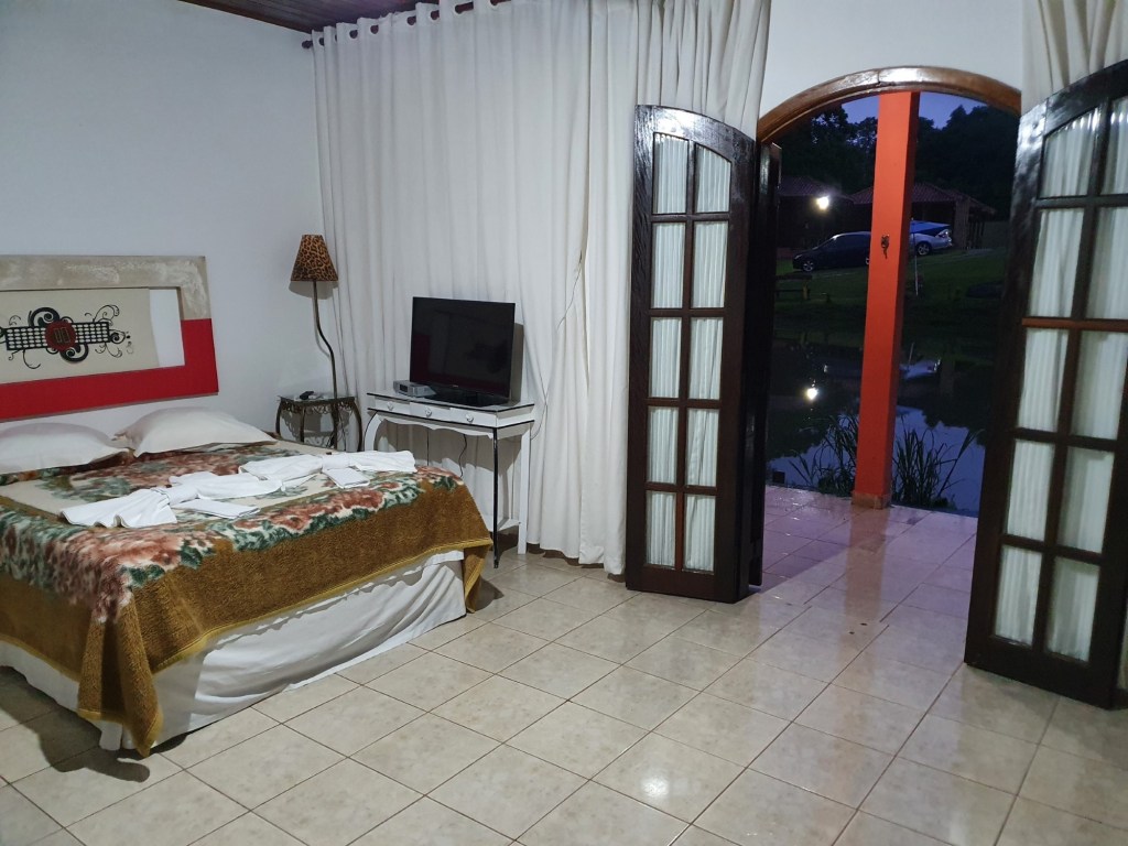 Nós havíamos fechado o Chalé Standard. Ao chegarmos no espaço, nos deparamos que o interfone não estava funcionando e por conta das chuvas que estavam caindo o dia inteiro, o chalé estava com vazamento no banheiro. Estava extremamente molhado. Pelo WhatsApp avisamos o hotel que prontamente veio tentar nos ajudar. O pessoal da manutenção tentou trocar o interfone, mas sem sucesso. A moça da limpeza também tentou secar o chão, mas sem sucesso, pois continuava caindo água do teto.