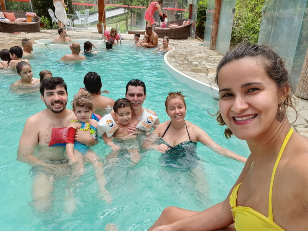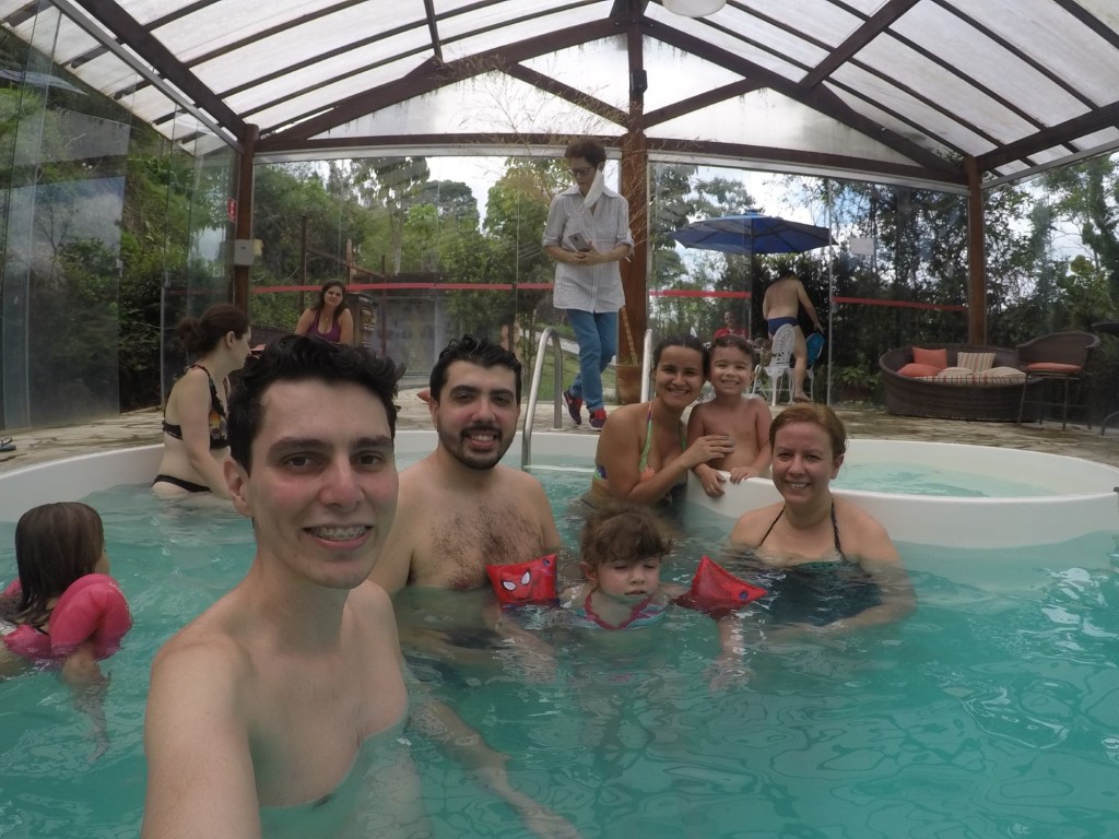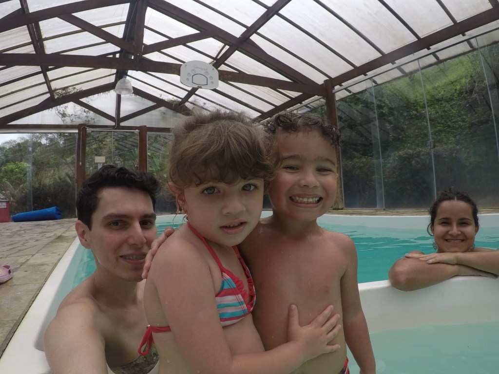 Esta piscina fica do lado de fora, no ambiente aberto. Como citei anteriormente, a climatização não estava funcionando, pois estava natural, ou seja, bem gelada.
