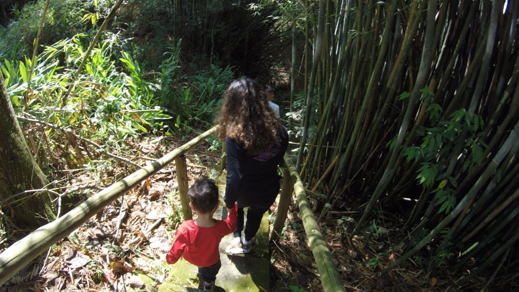 É uma trilha curta, mas bem legal a explicação que dão para as crianças! O ambiente é totalmente arborizado, com escadas e corrimão.